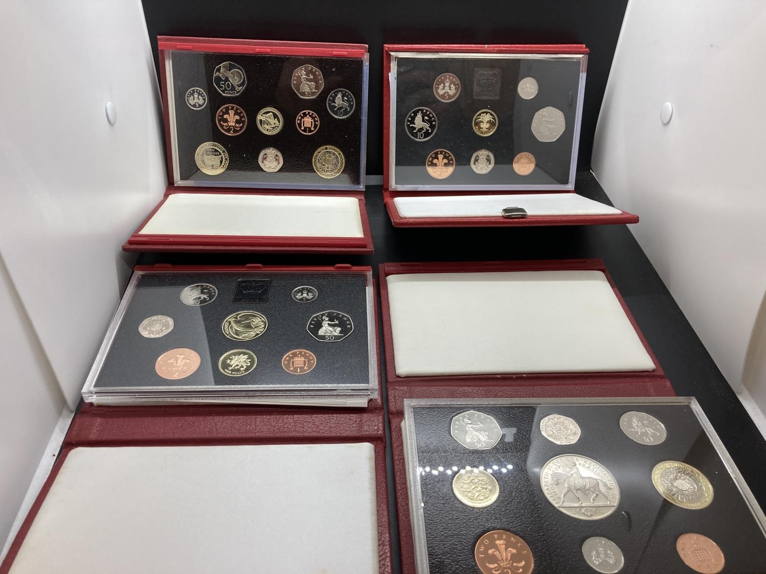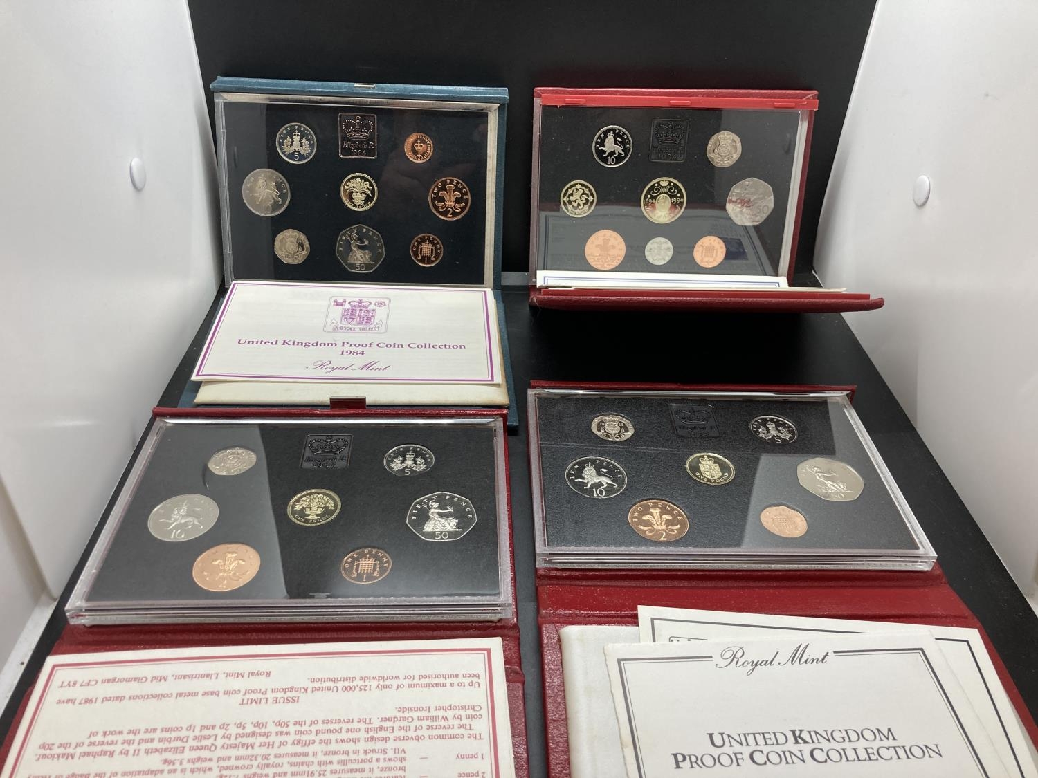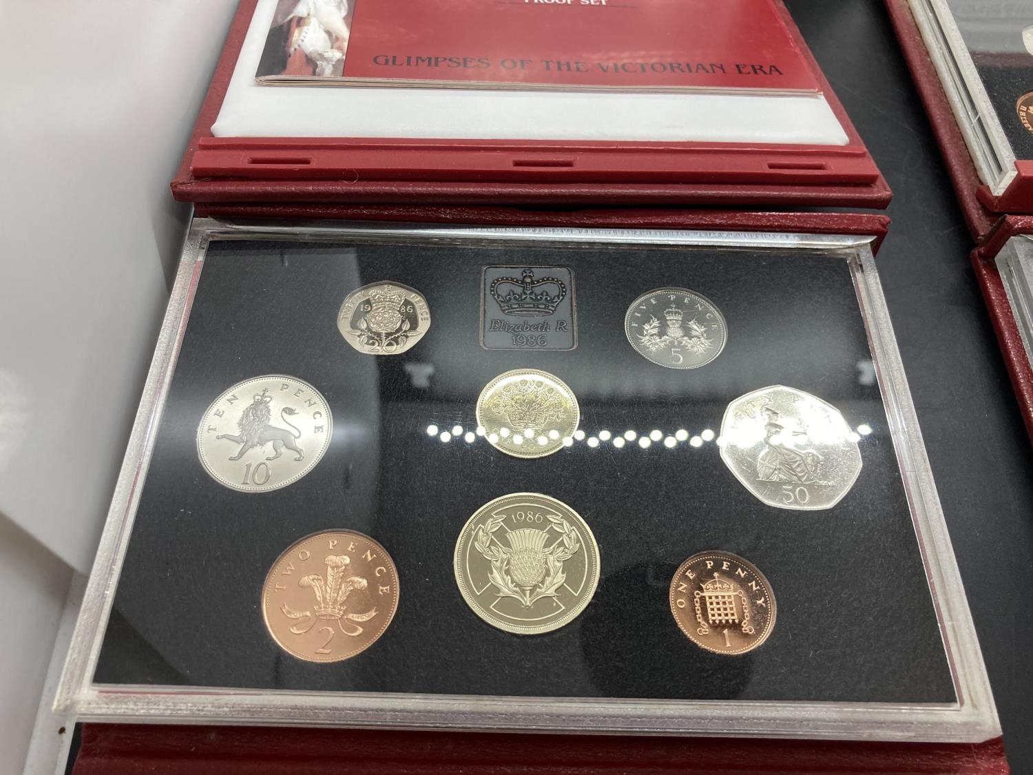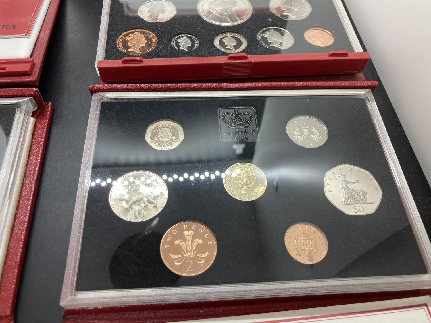 Thirteen cased Royal Mint United Kingdom Proof Coin Collections for years 1984, 1985, 1986, 1987, 1988, 1990, 1991, 1994, 1995, 1997, 2001, 2002 and 2004