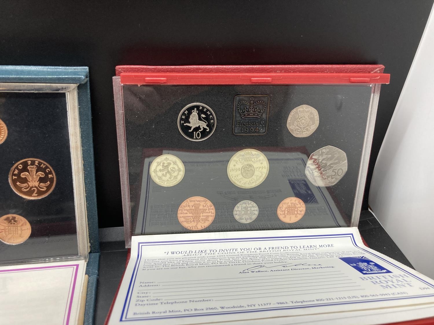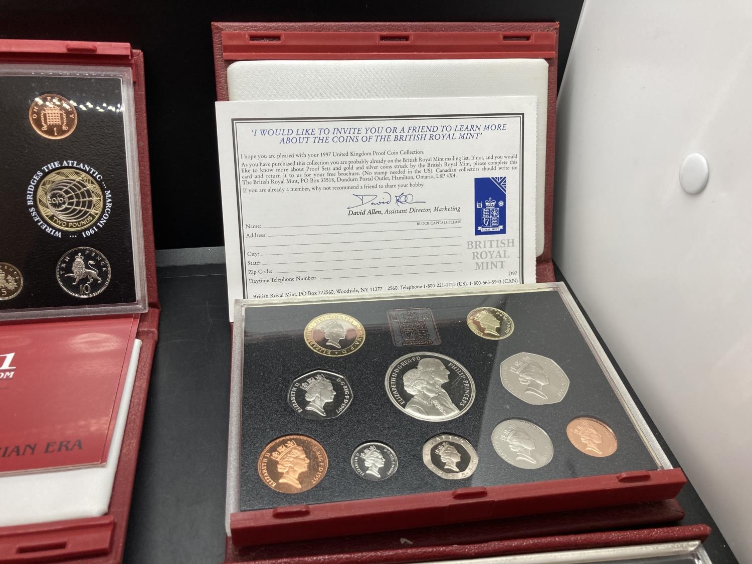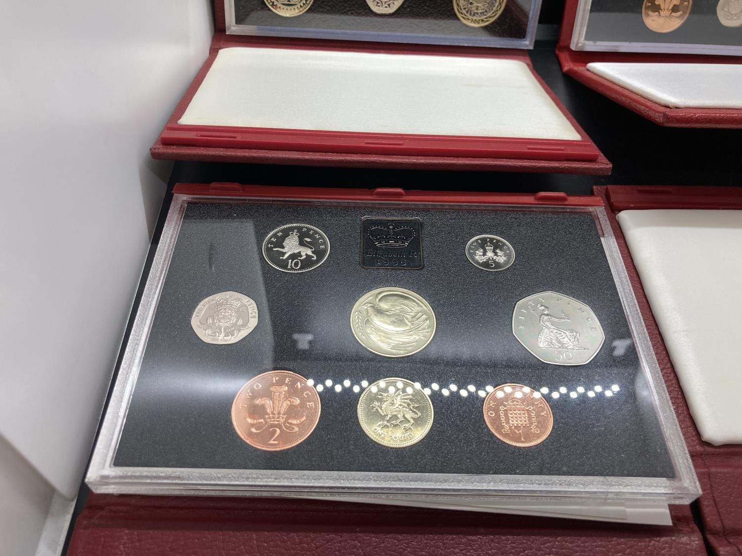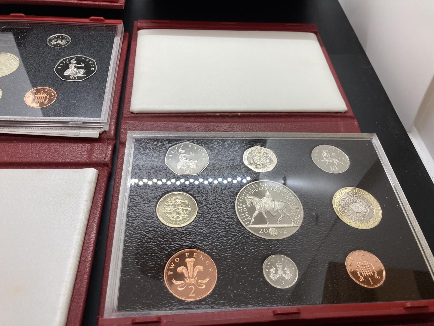 Thirteen cased Royal Mint United Kingdom Proof Coin Collections for years 1984, 1985, 1986, 1987, 1988, 1990, 1991, 1994, 1995, 1997, 2001, 2002 and 2004