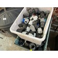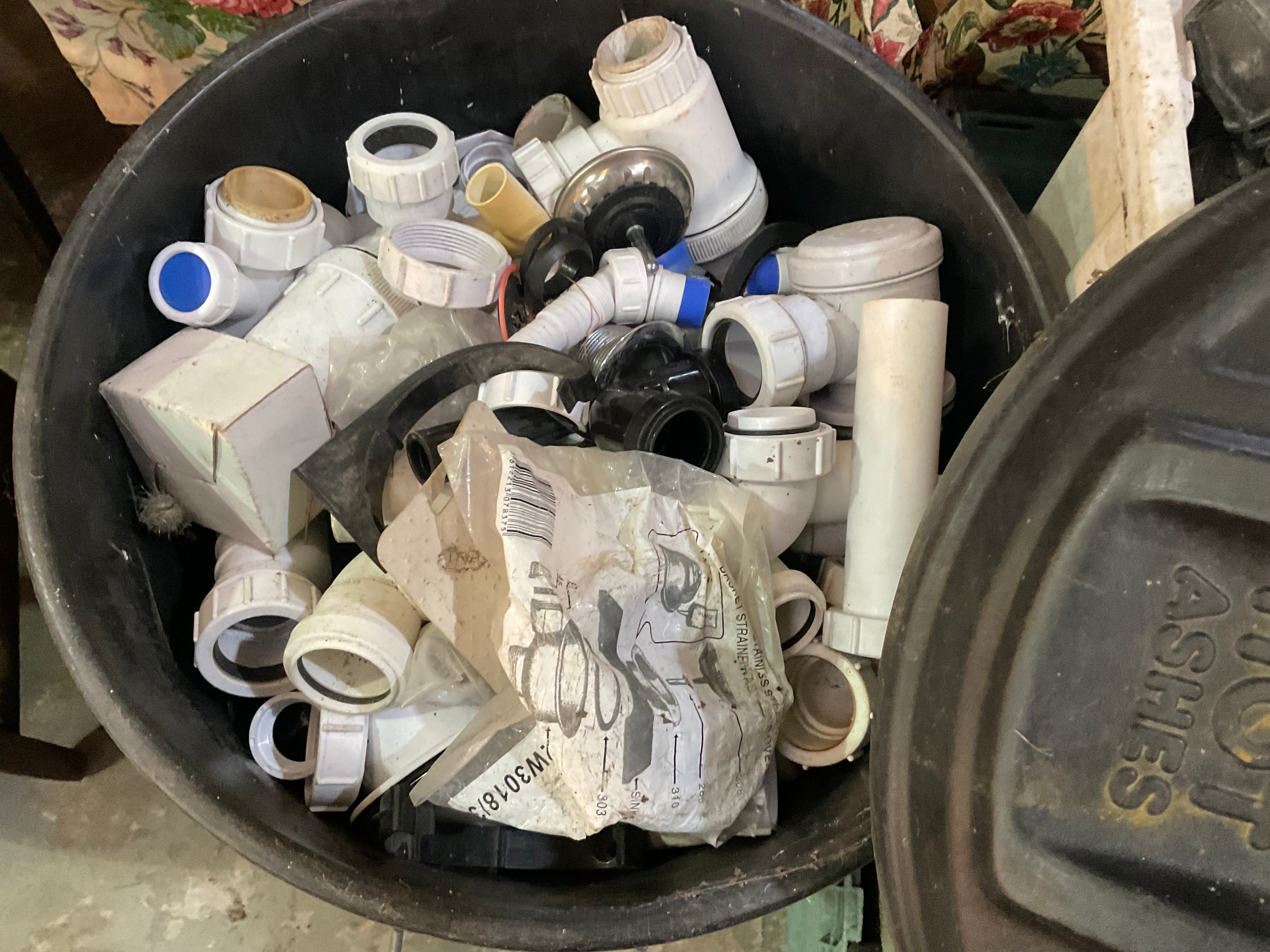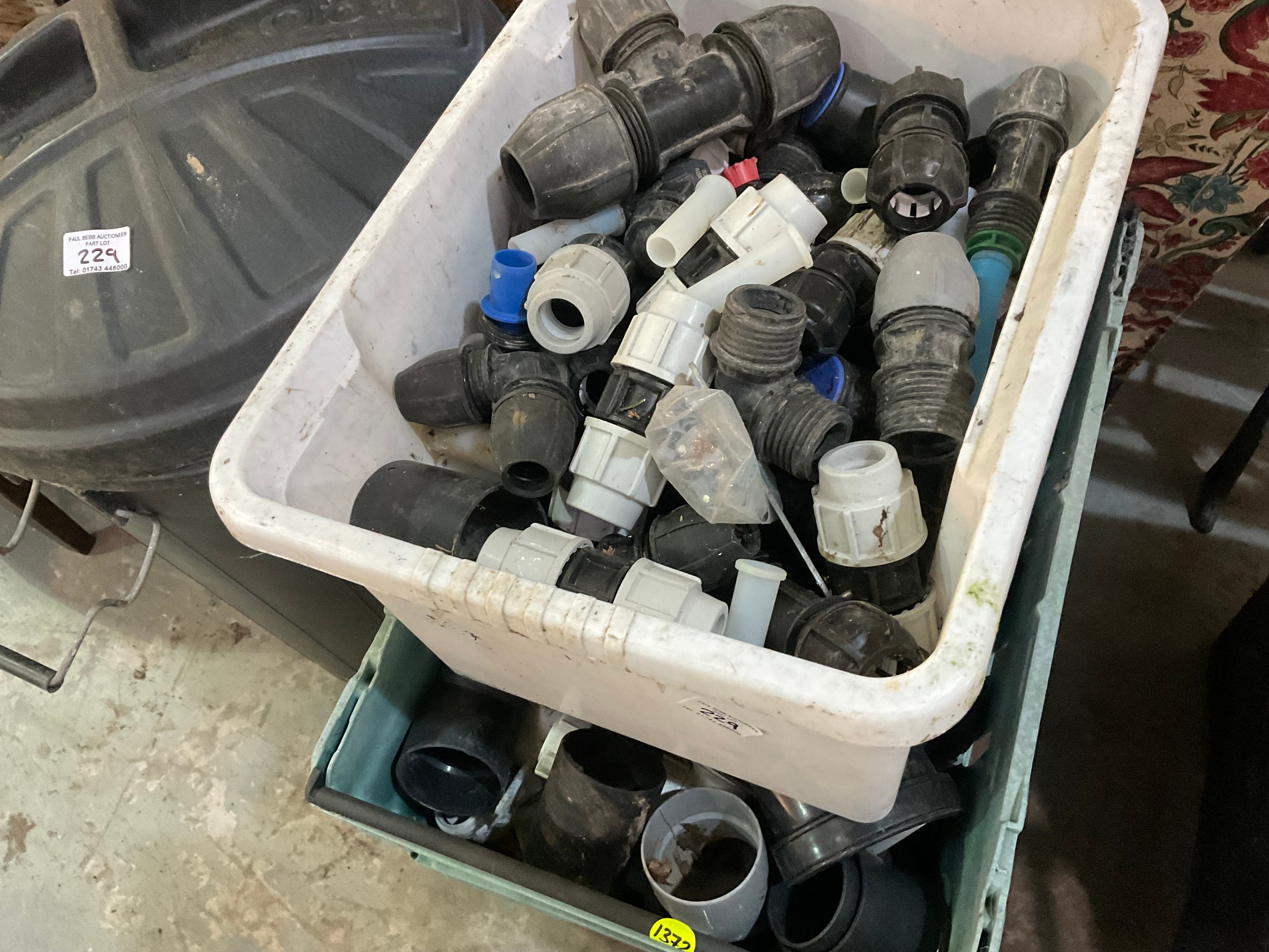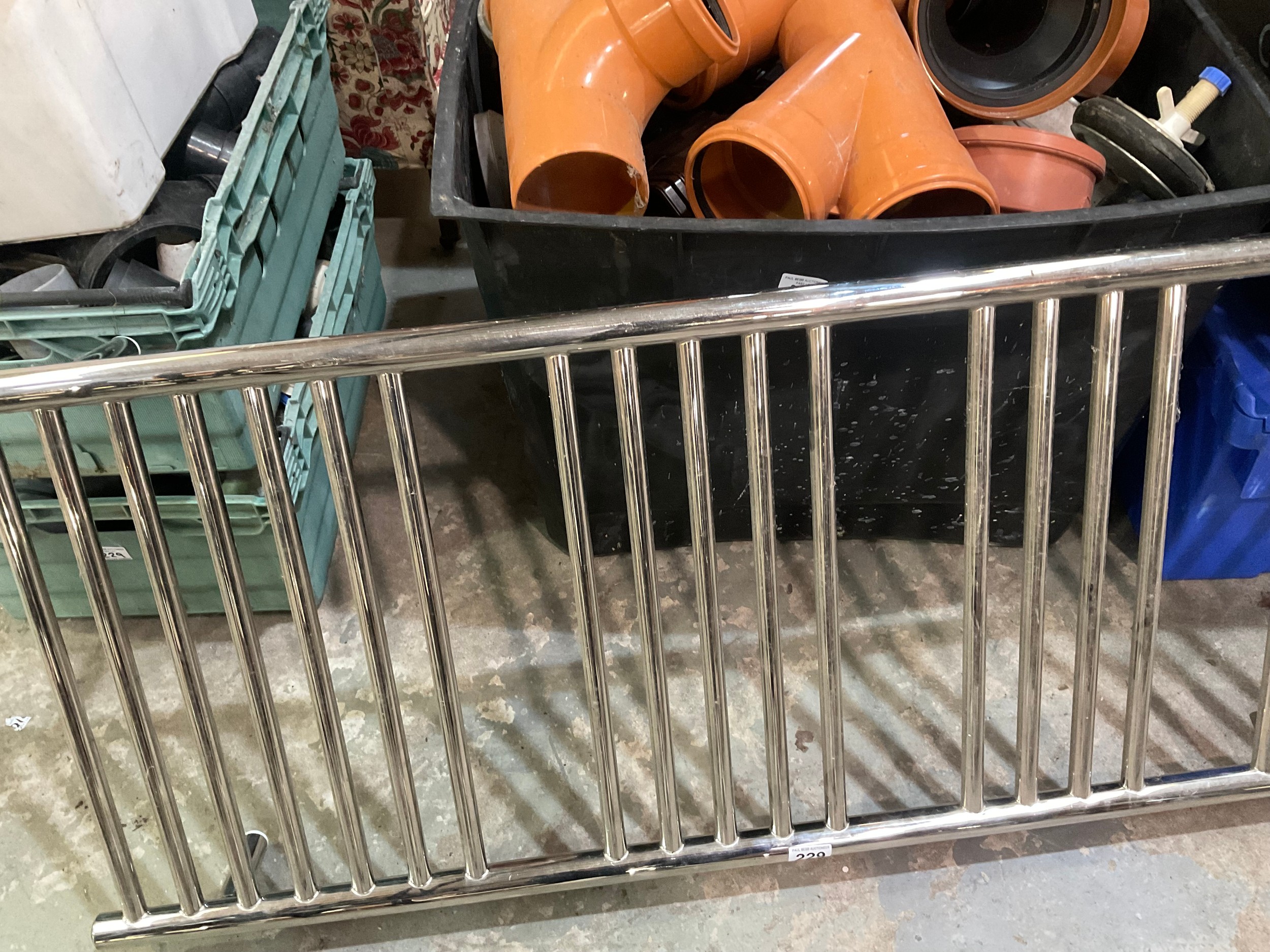 LARGE QTY OF PLASTIC DRAINAGE CONNECTING FITMENTS AND METAL RADIATOR