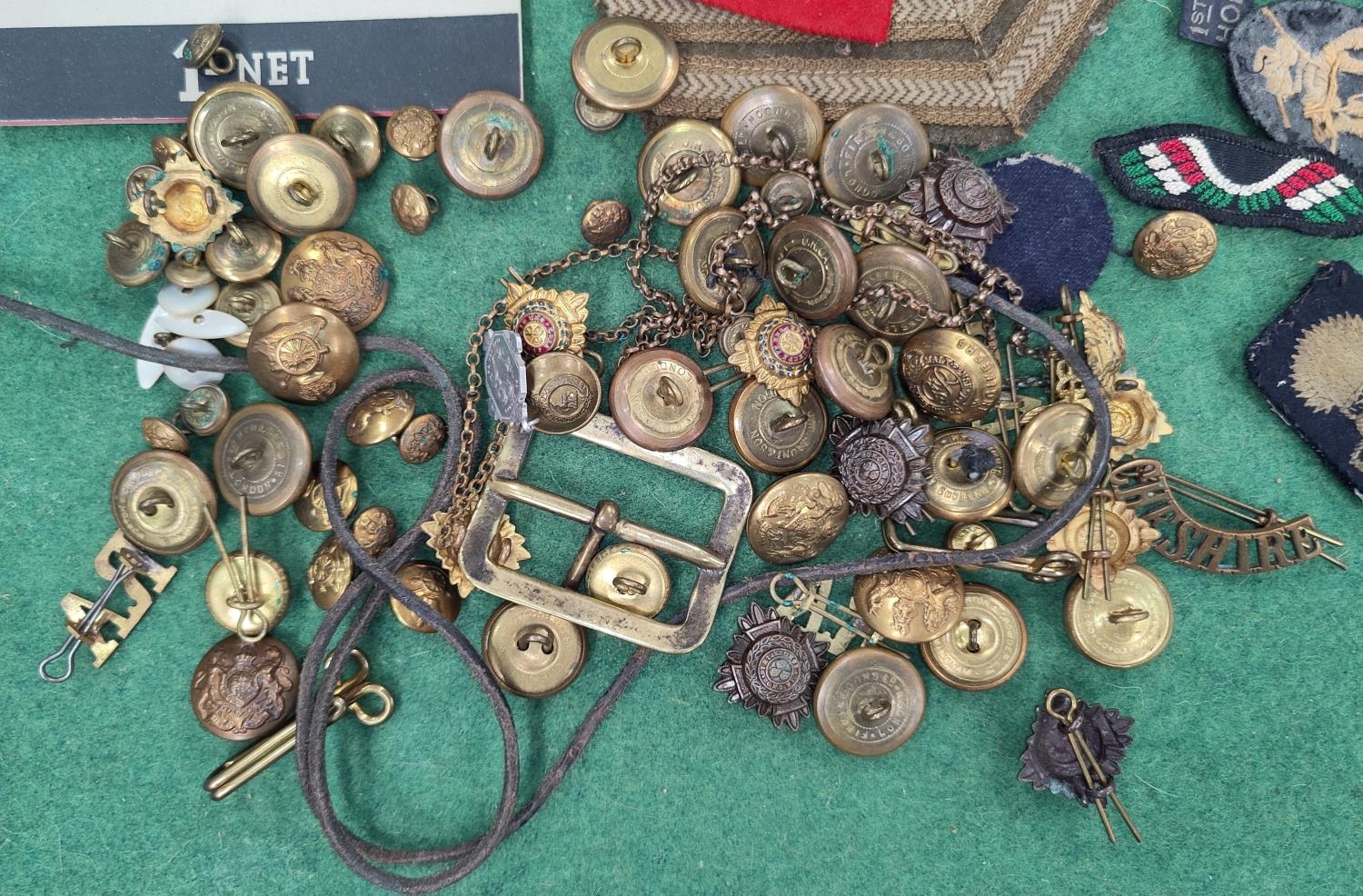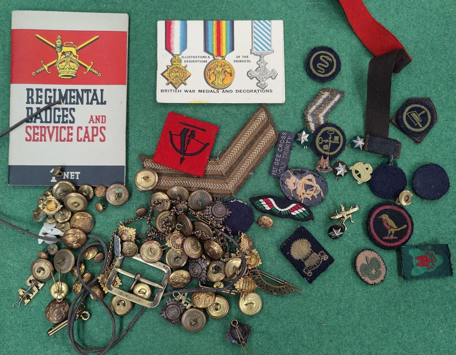 A quantity of British Army buttons and badges, Boy Scout items etc