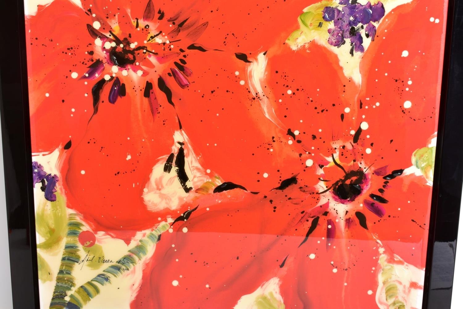 DANIELLE O'CONNOR AKIYAMA (CANADIAN 1957) 'JOURNEY II', a limited edition print of blossoms 6/195, signed lower left, no certificate, framed, approximate sizes: image 76cm x 76cm, frame 87cm x 87cm (condition: light surface scratching to the print, small dents to frame)