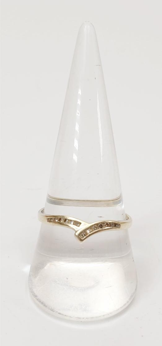 A hallmarked 9ct white gold and diamond ring, gross weight 1.3g, size T. UK shipping £14.