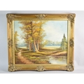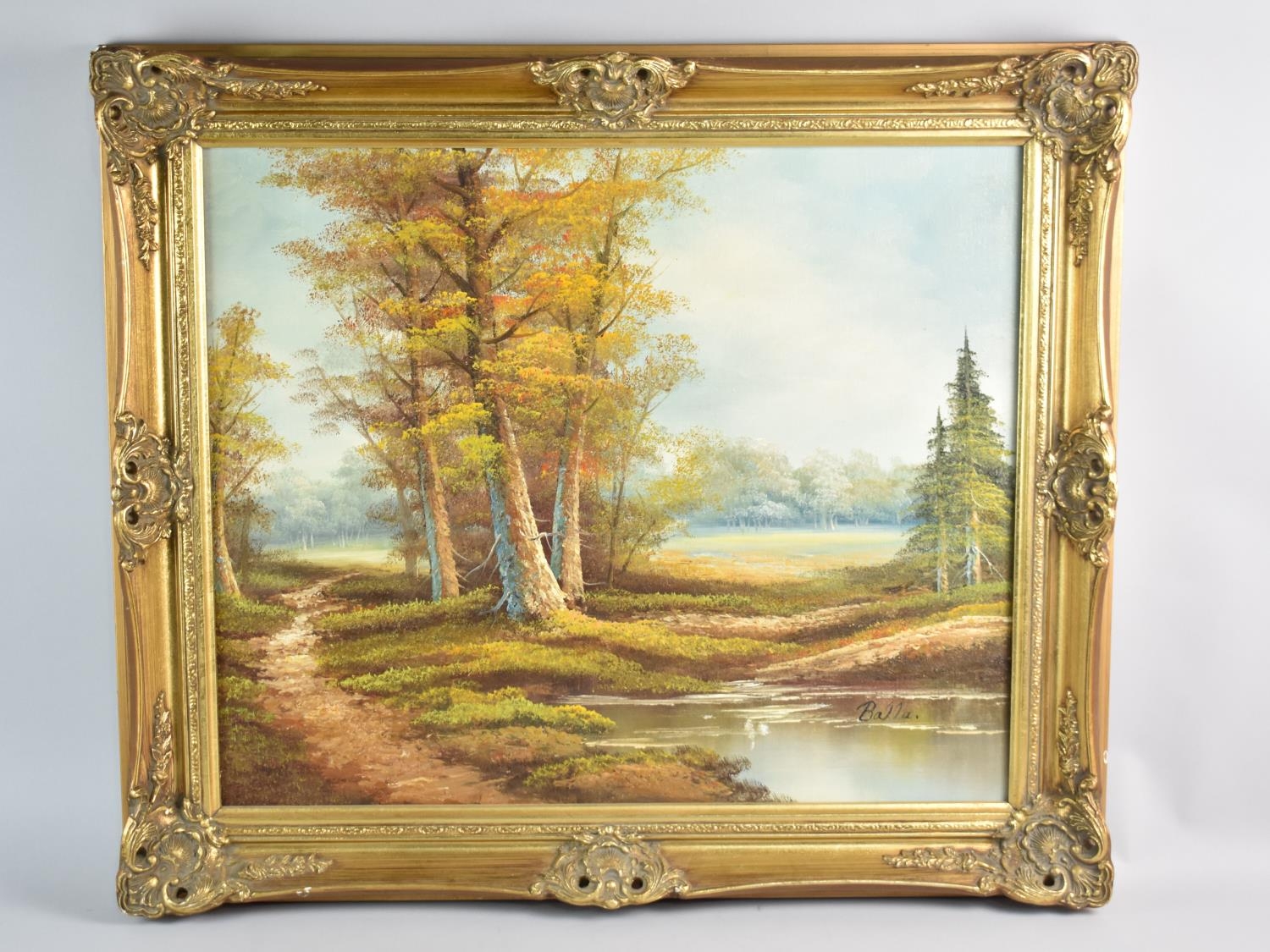 A Large Gilt Framed Oil on Board, Autumn Park Scene, Signed Balla, 60x49cms