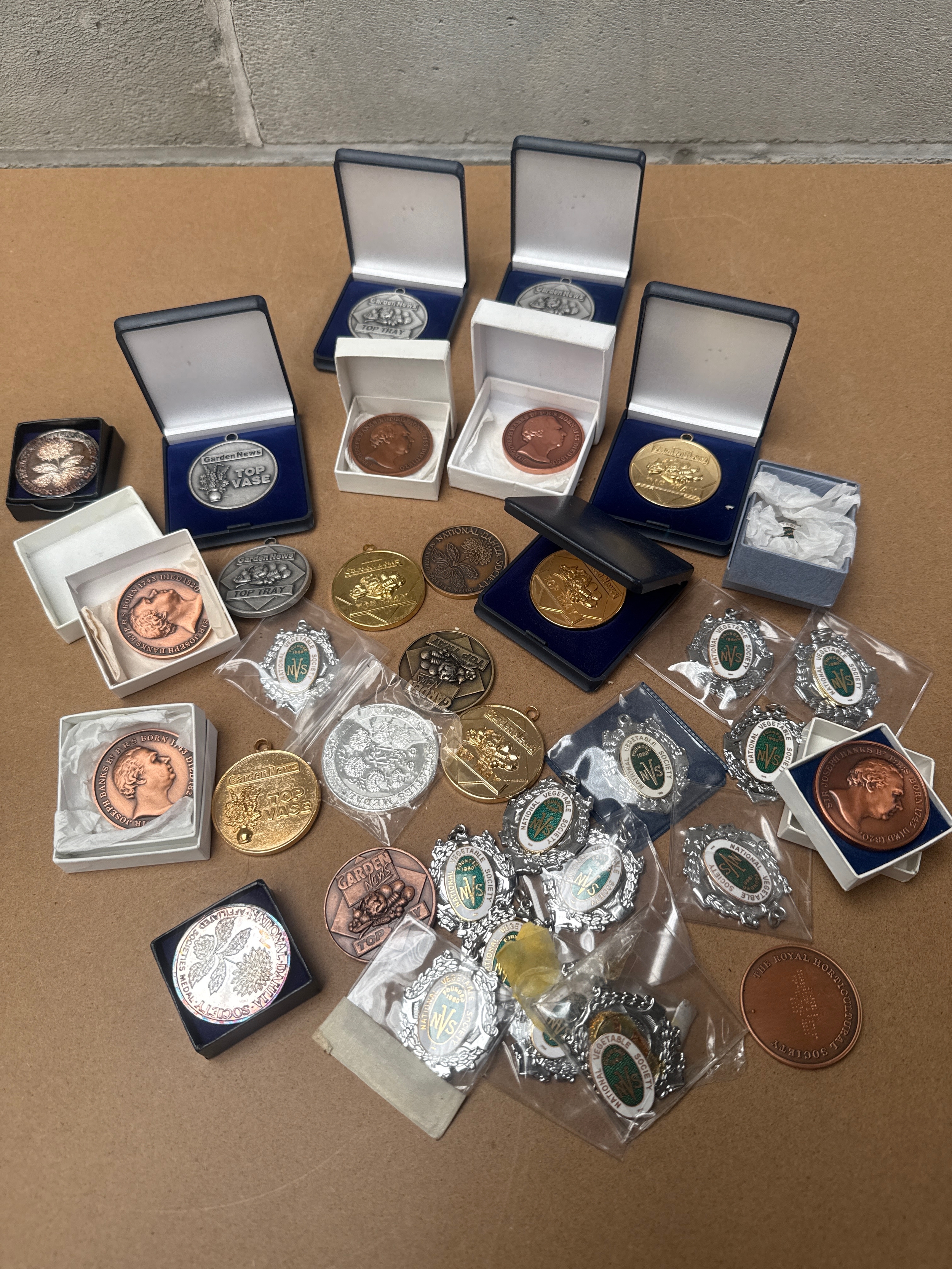 The Royal Horticultural Society Presentation Coins Plus National Vegetable Society Pendants, Garden News Top Tray Pendants