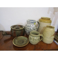 ANTIQUE GLASS, 4 cranberry glass table bells, 3 with ribbed glass handles and opaque glass rims, 32cm max height and 2 others