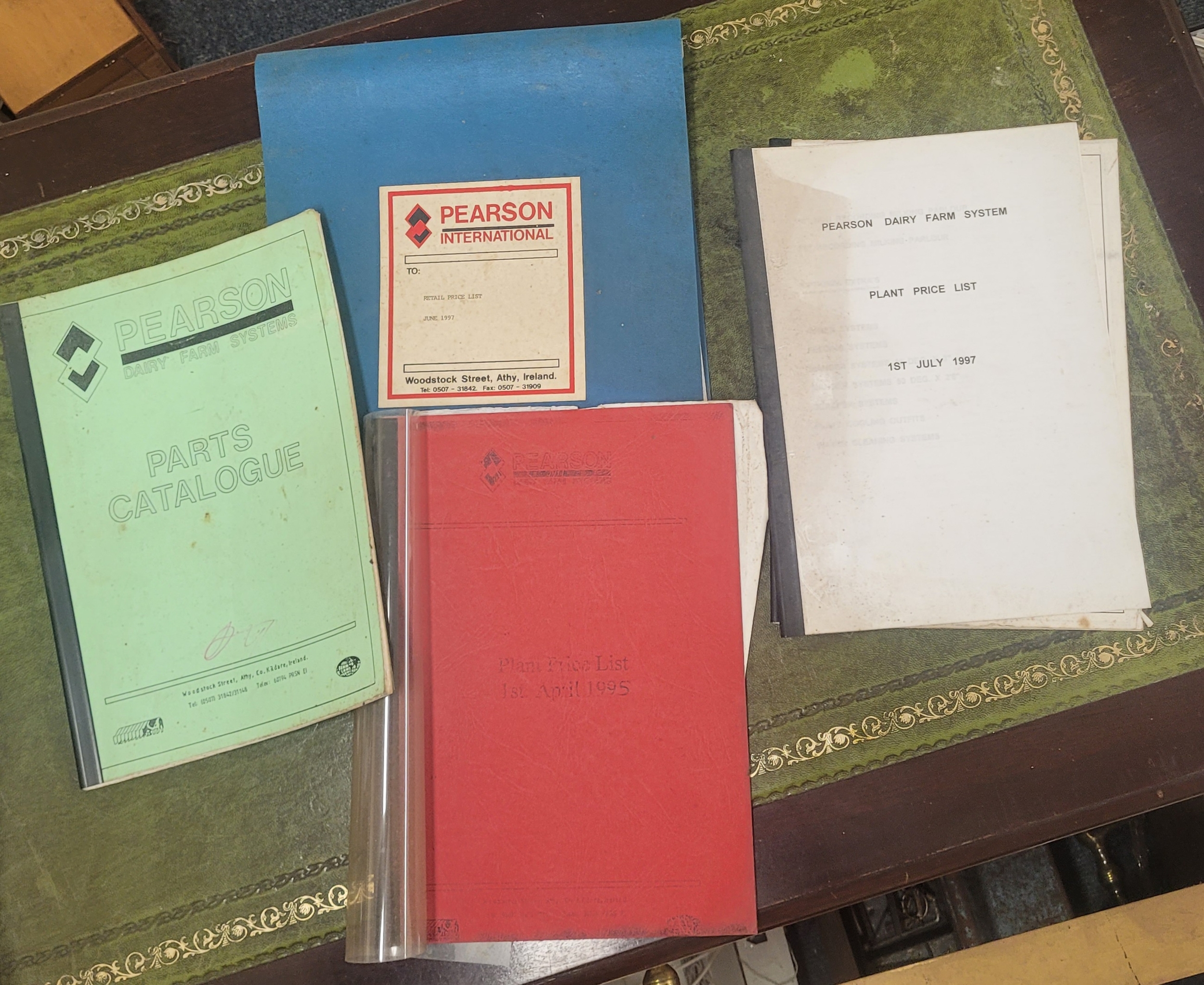 a collection on manuals from Pearson International - Parts Catalogue and price list