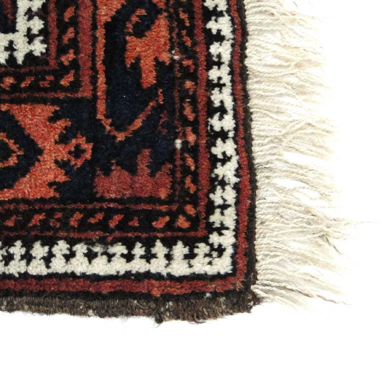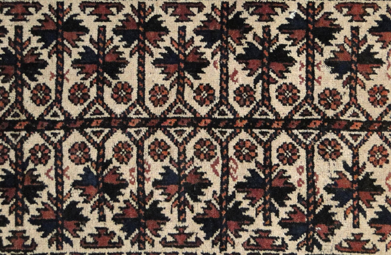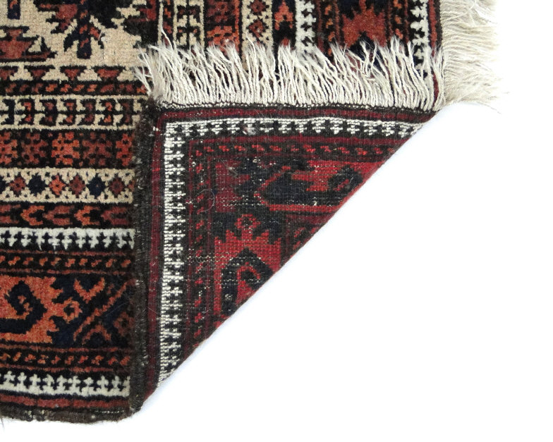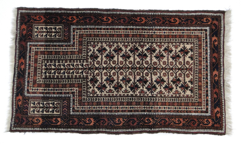 Rectangular Middle Eastern rug, decorated with a central field of flowers onto a red ground, 160cm x 97cm