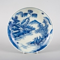 A CHINESE PORCELAIN BLUE AND WHITE LANDSCAPE DISH possibly ...