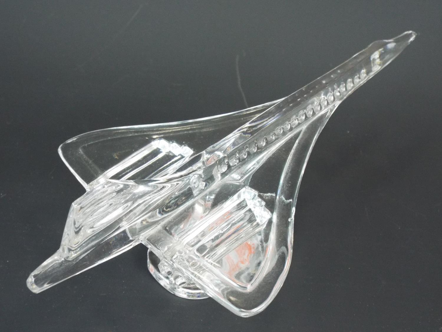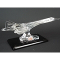 Solitaire Lead Crystal model of Concorde standing on ebonised base. 9 inches long