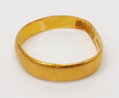 A hallmarked 22ct gold wedding band, A/F, weight 3g. UK shipping £14.