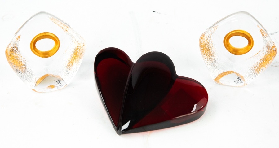 MODERN BACCARAT MOULDED RED HEART SHAPED GLASS PAPERWEIGHT, ...