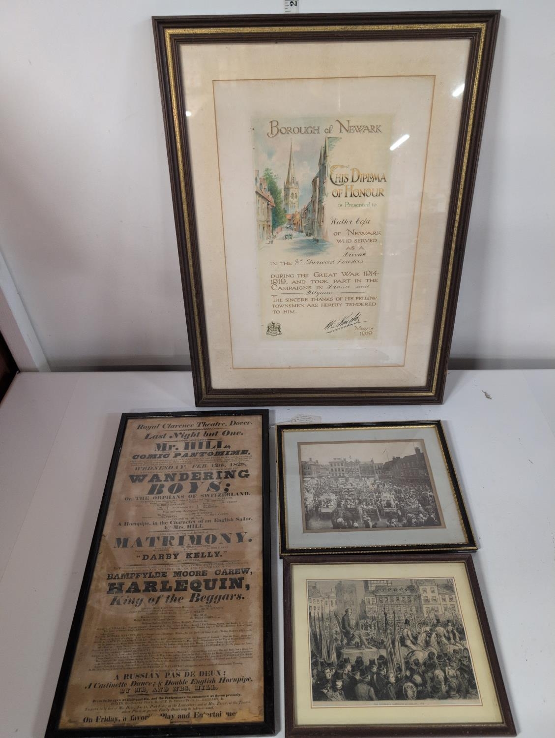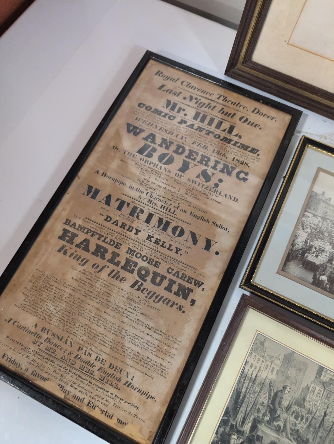 A Collection of Historical Ephemera, Including a Victorian Royal Clarence Theatre Dover Playbill, Largest 62 x 47 CM Shipping Unavailable