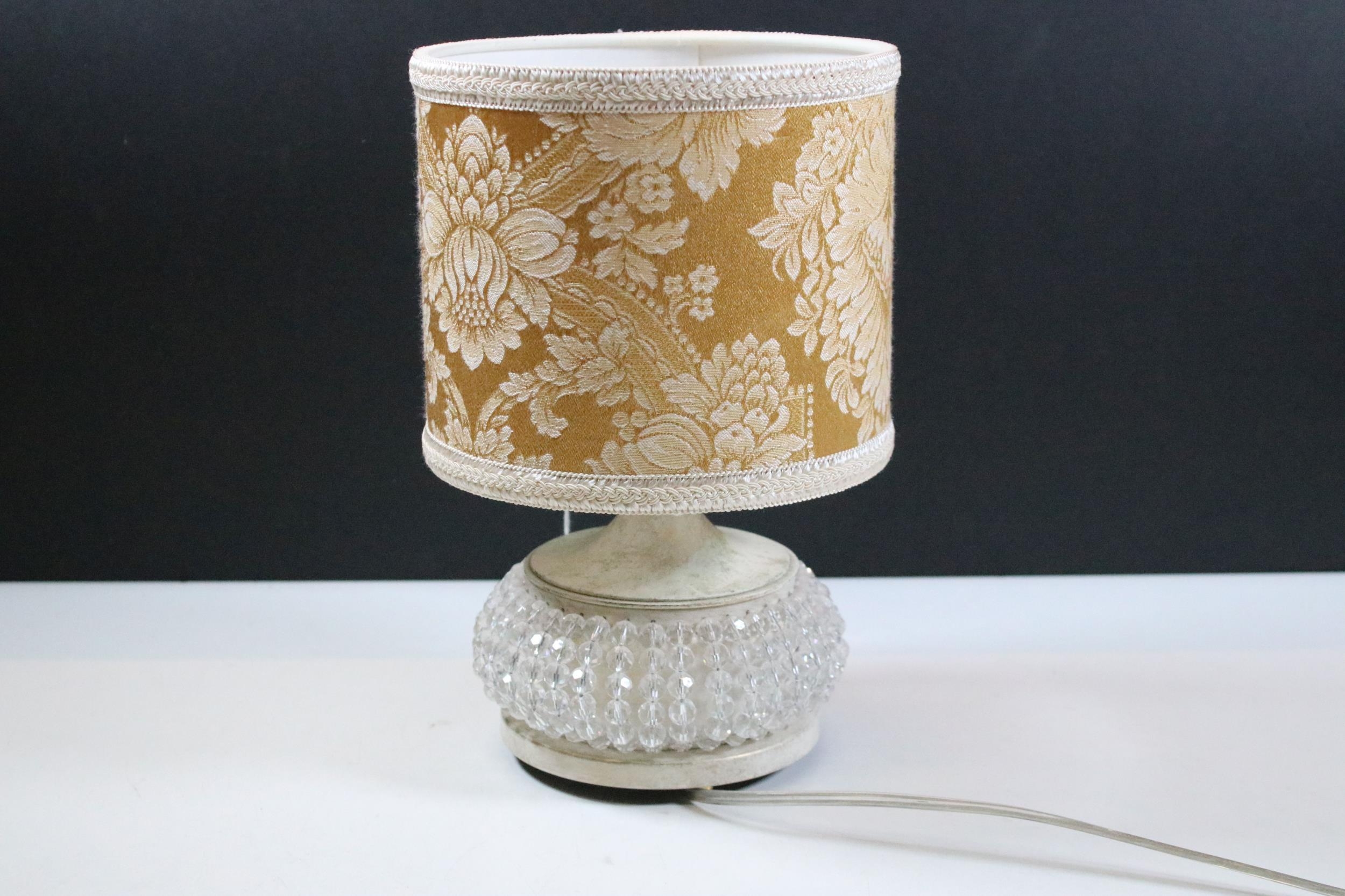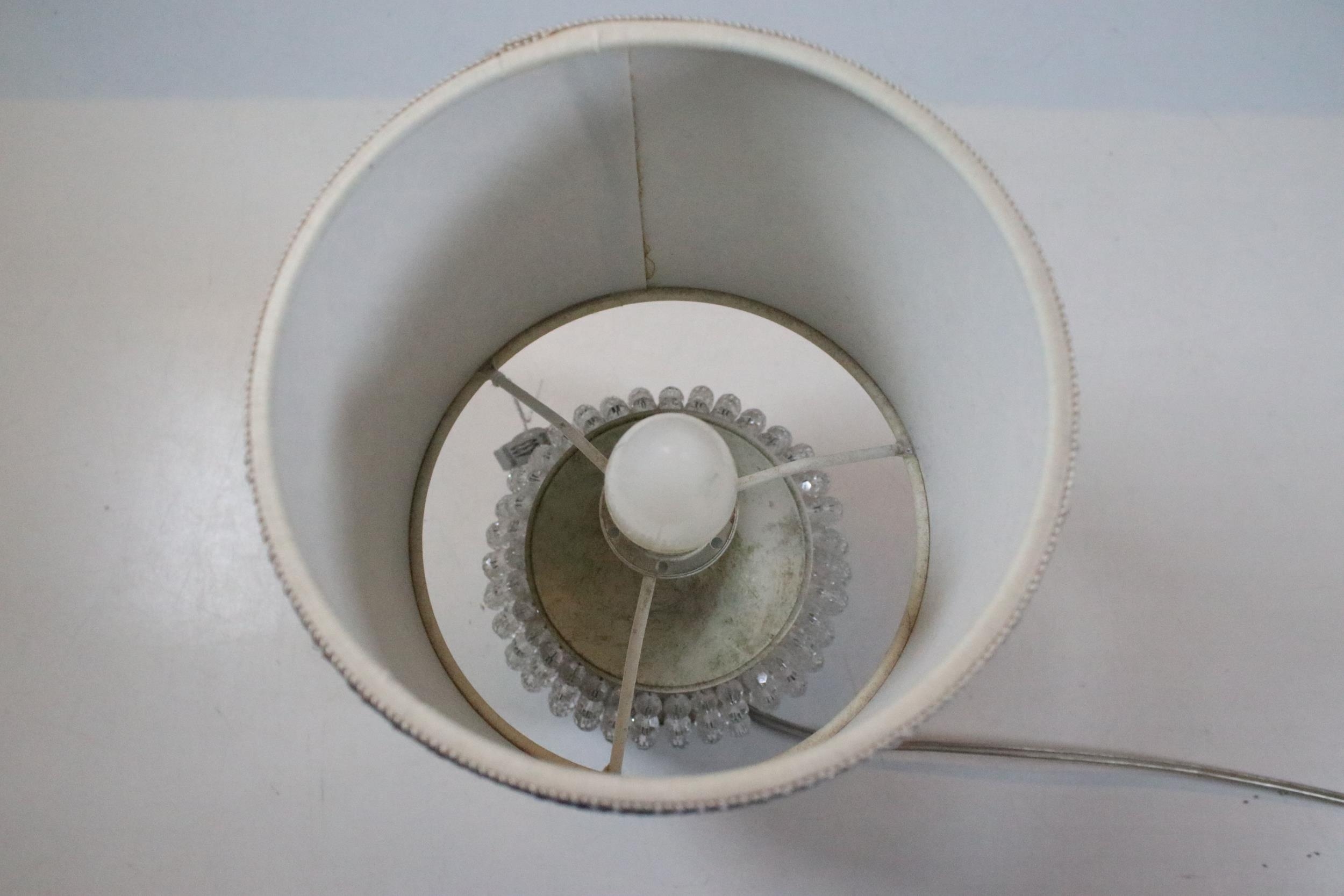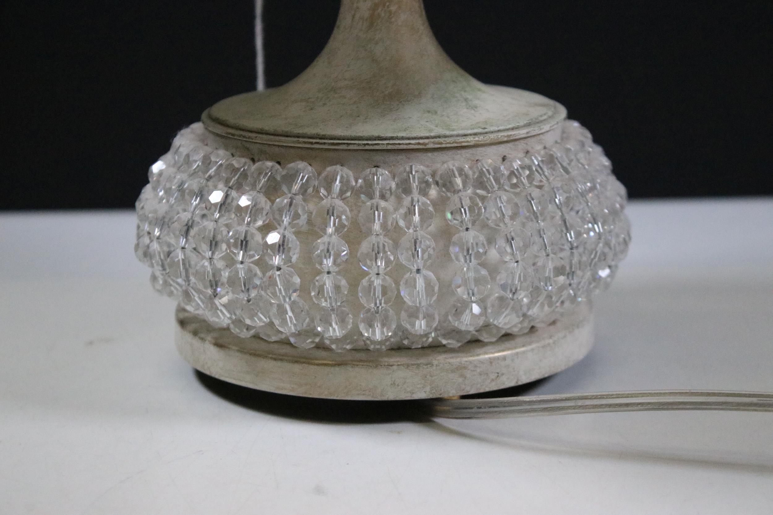 Masiero Italian table lamp having a crystal threaded base with white painted body and shade to top. Measures 27cm tall.