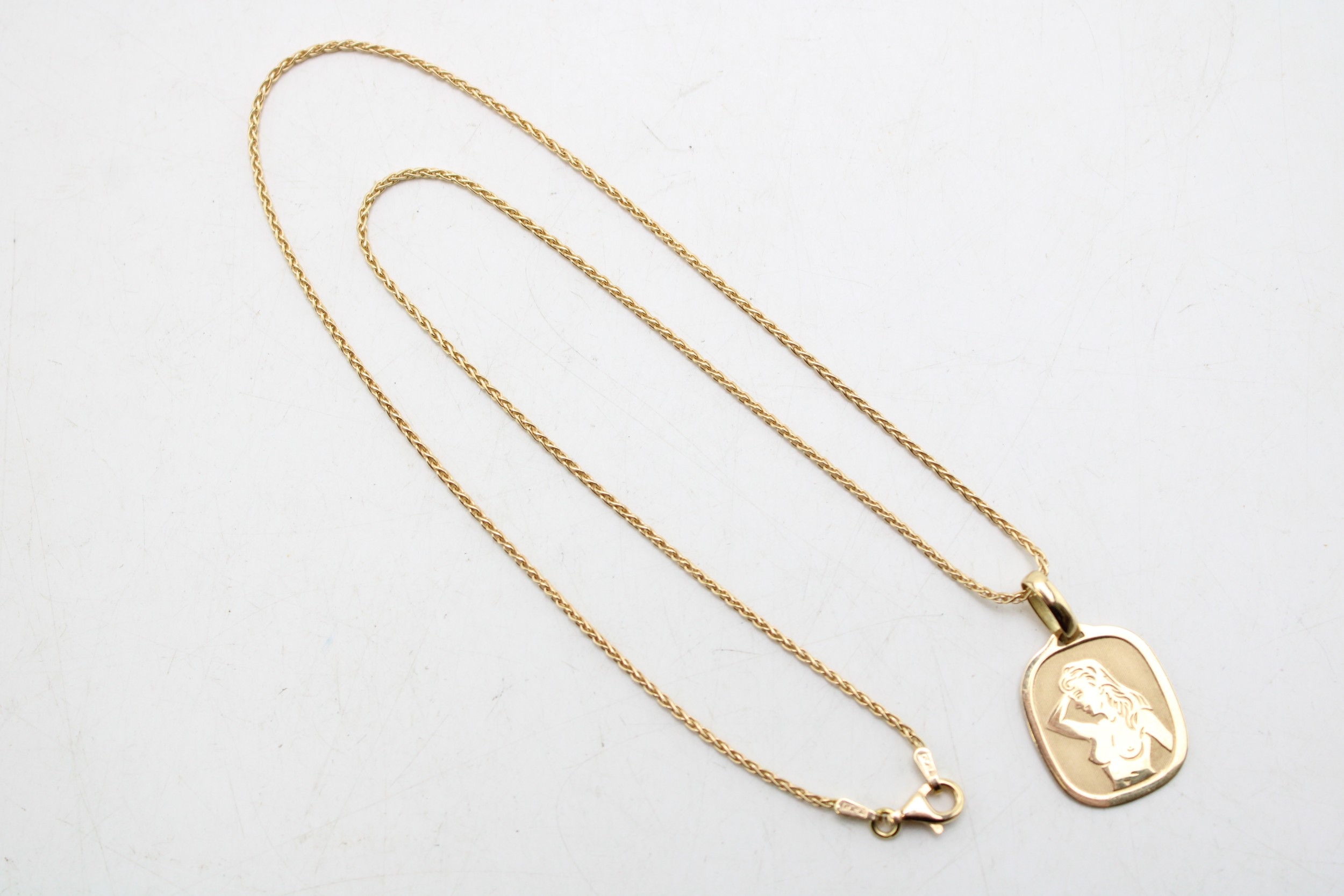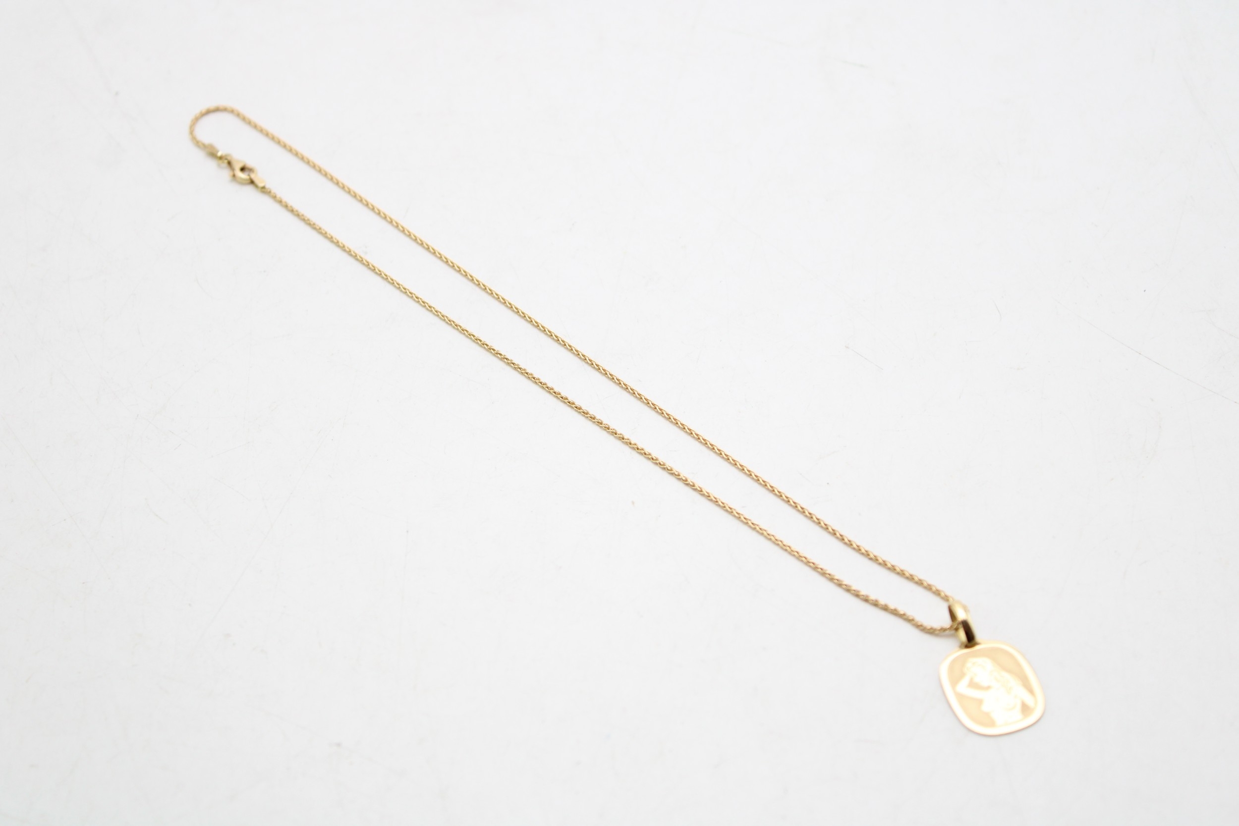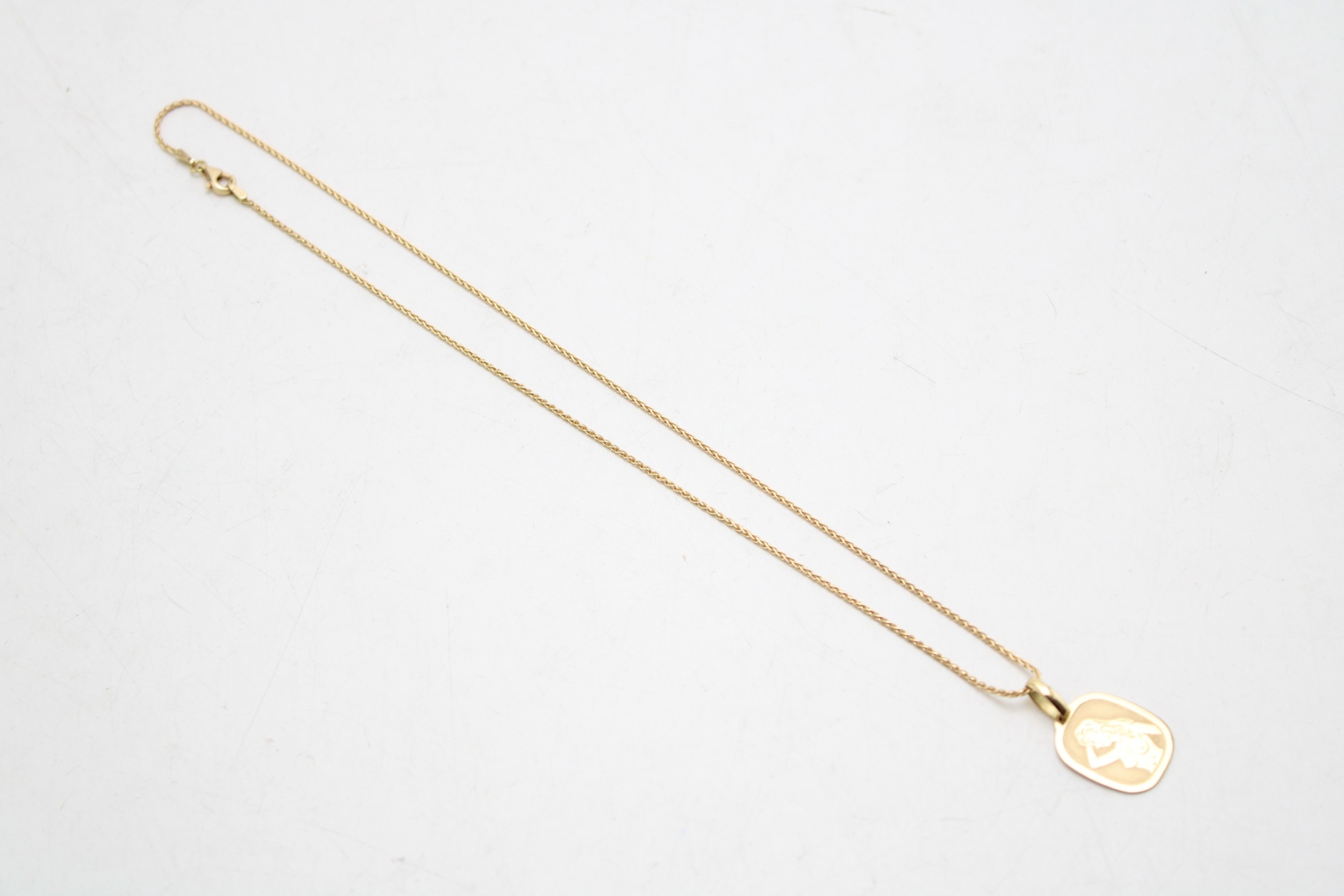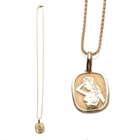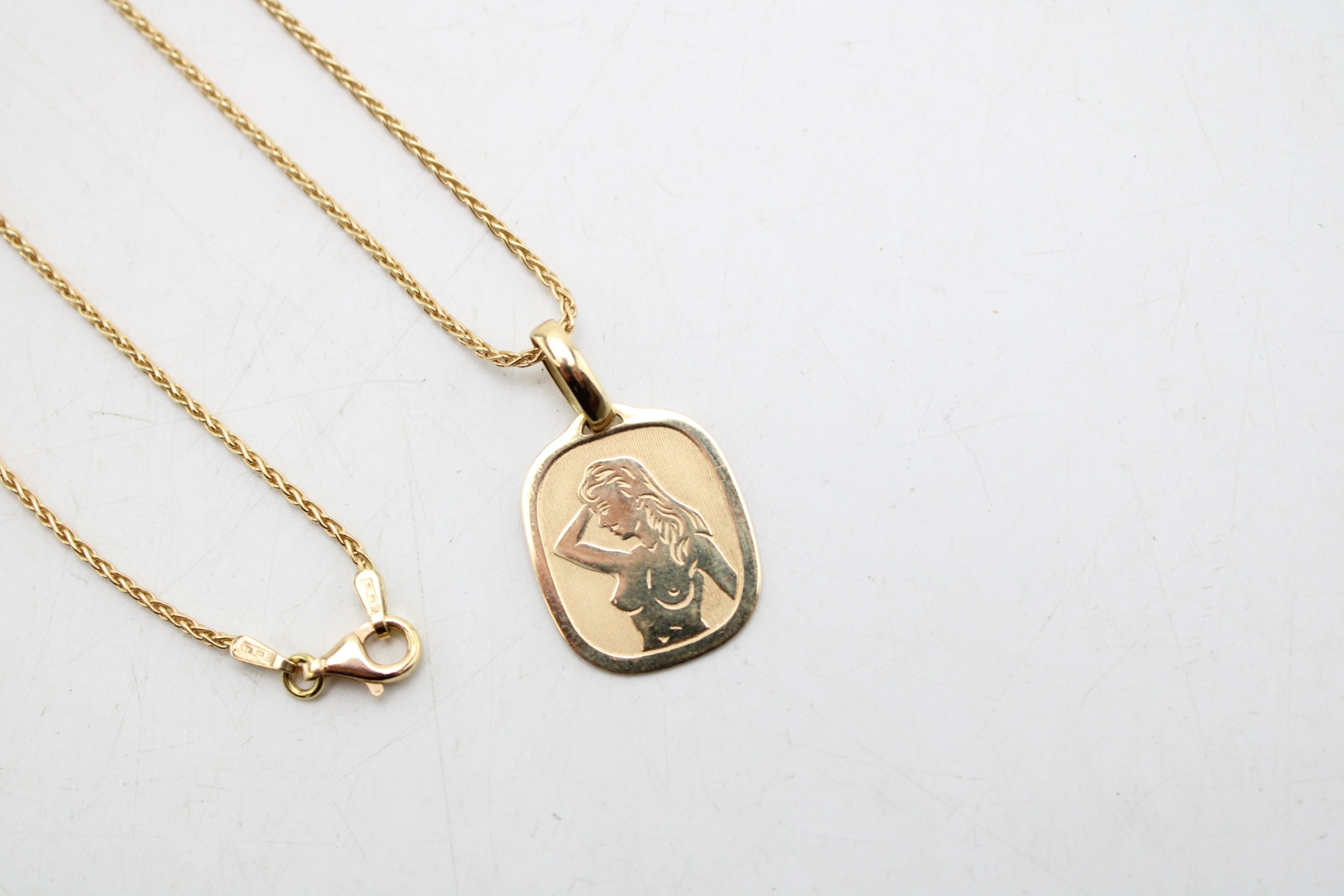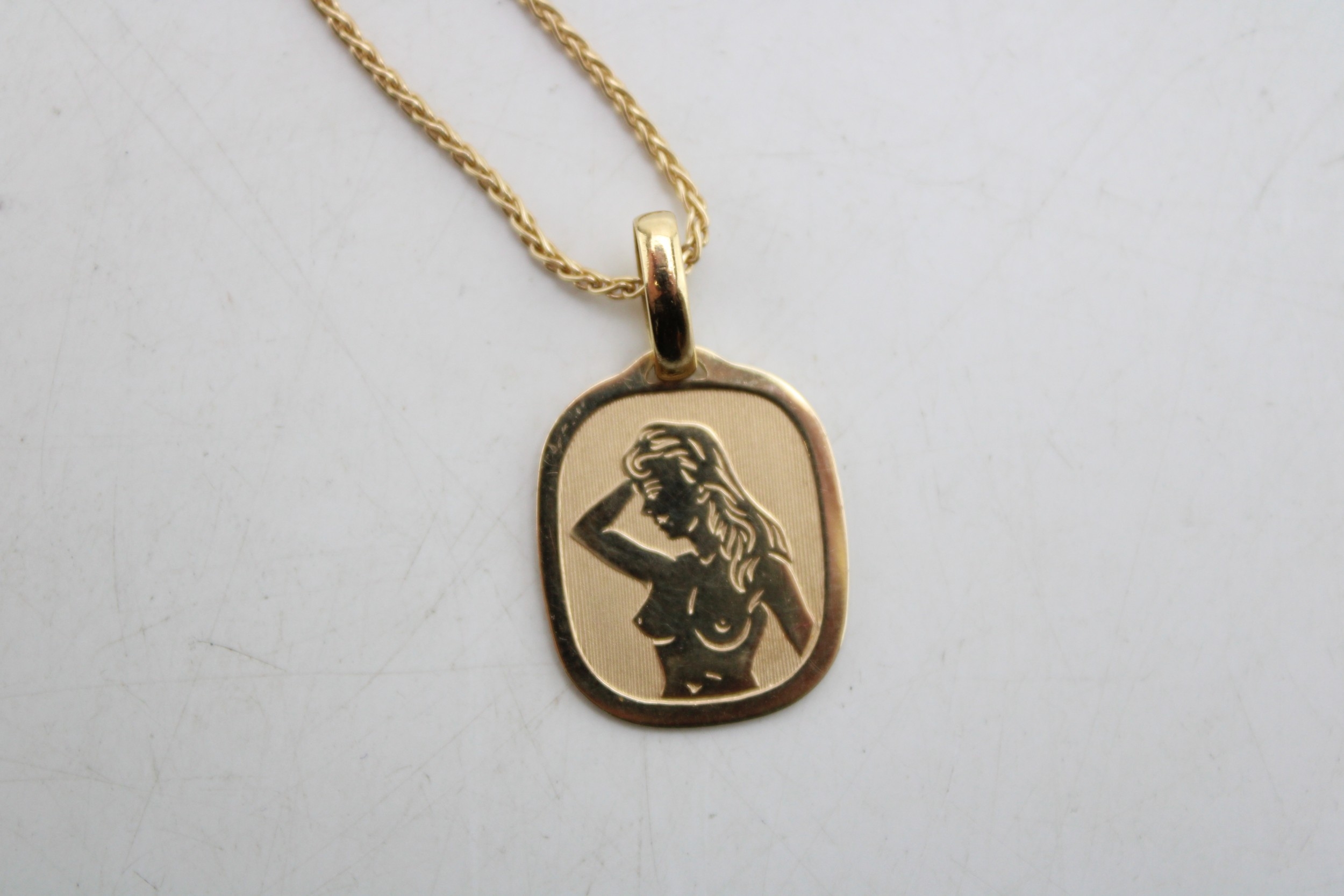 An 18ct gold chain with an 18ct gold erotic pendant, 8.1g, chain 46cm long.
