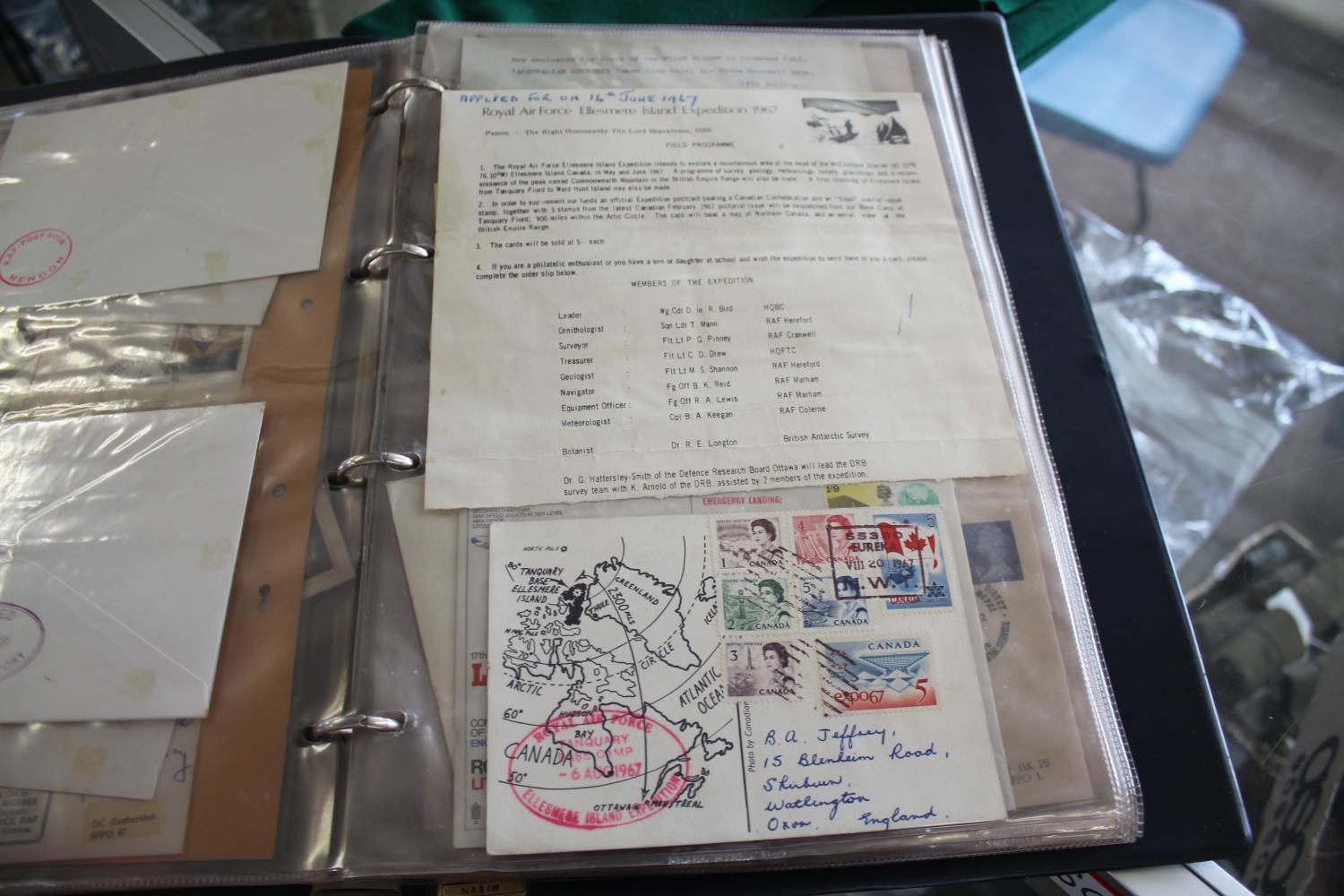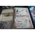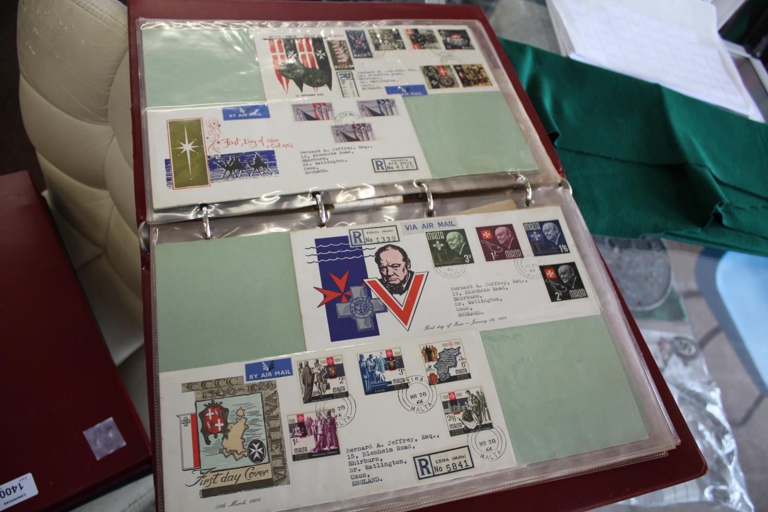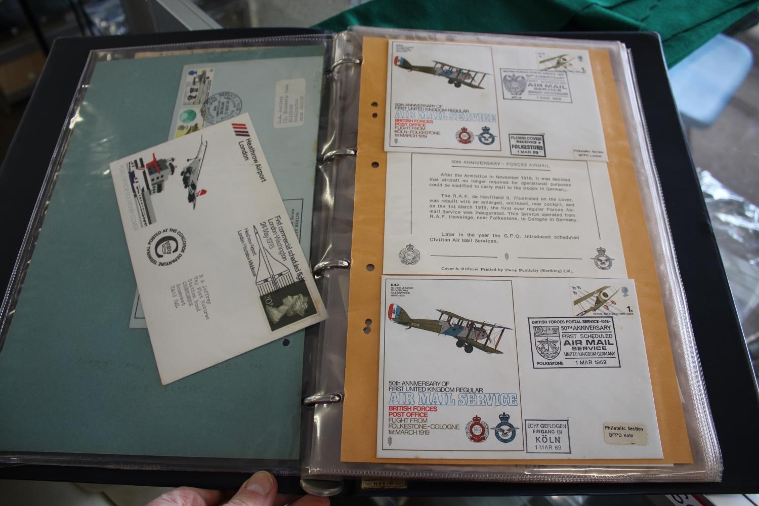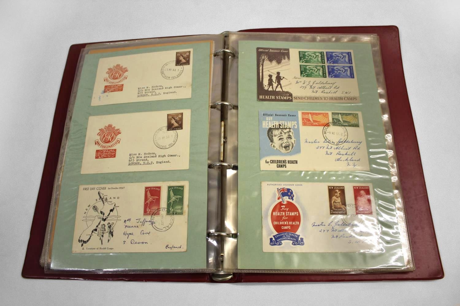STAMP ALBUMS - EARLY FIRST DAY COVERS, AIR MAIL & POSTAL HISTORY 3 interesting albums, 1st album including Imperial Airways First Air Mail England Africa, Nelson's Dockyard Antigua 1961, Red Cross Centenary 1963, Malta Air Mail 1963 (and other Malta covers), Royal Visit Tonga 1954, Miss World 1963, New Zealand (1953 Coronation, Health Stamps etc), Australia (Scout Jamboree 1952, Discovery of Gold 1951 etc), Indian Everest Expedition 1965 etc. 2nd album, Aviation (1960's and 1970's, some signed including Air Mail Service, International Air Day, Royal Air Force, P & O Himalaya 1949, postcards etc), 19thc covers etc. 3rd album, Channel Islands Liberation 1945, International Stamp Exhibition 1950, Festival of Britain 1951, National Maritime Museum 1960, United Nations 1965, Stampex 1964, Westminster Abbey 1966, World Cup 1966, Silver Jubilee, and many more. (3)