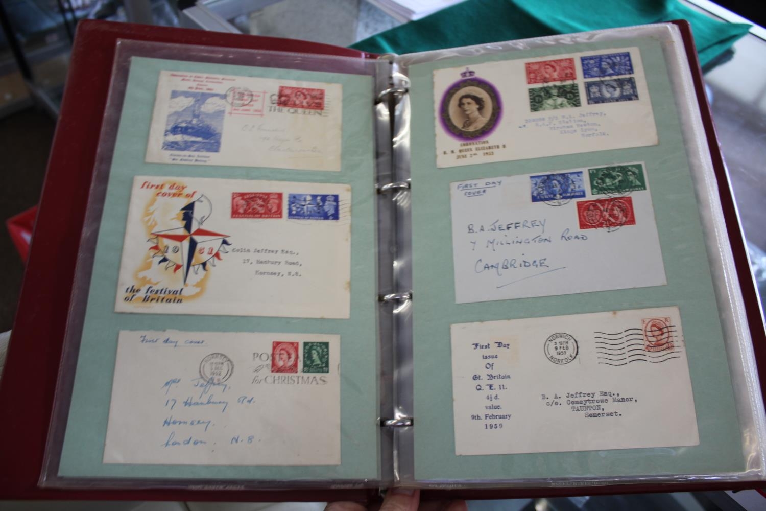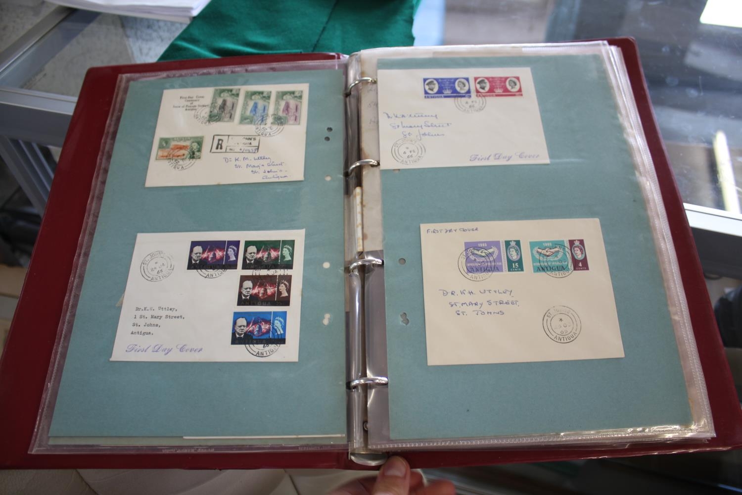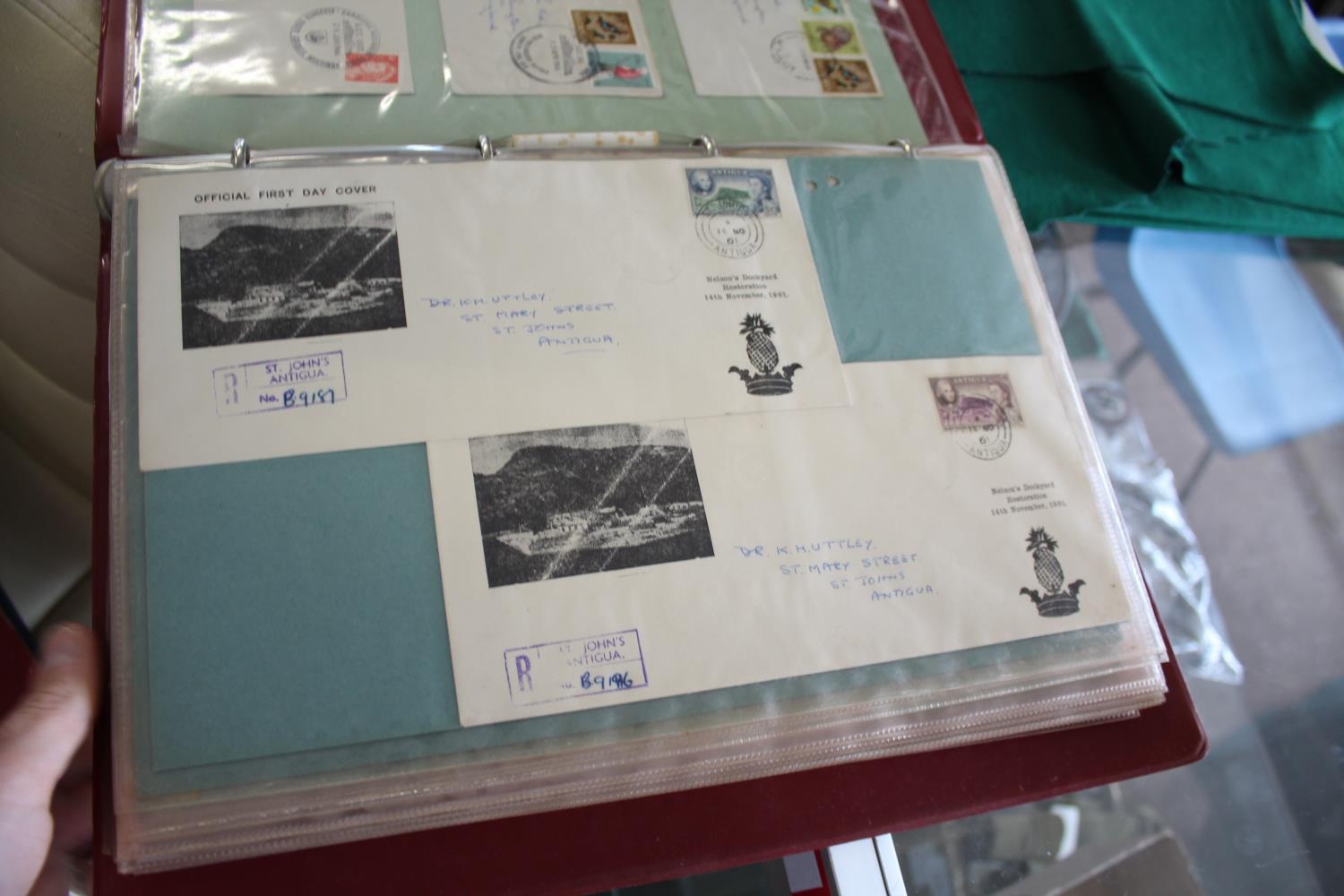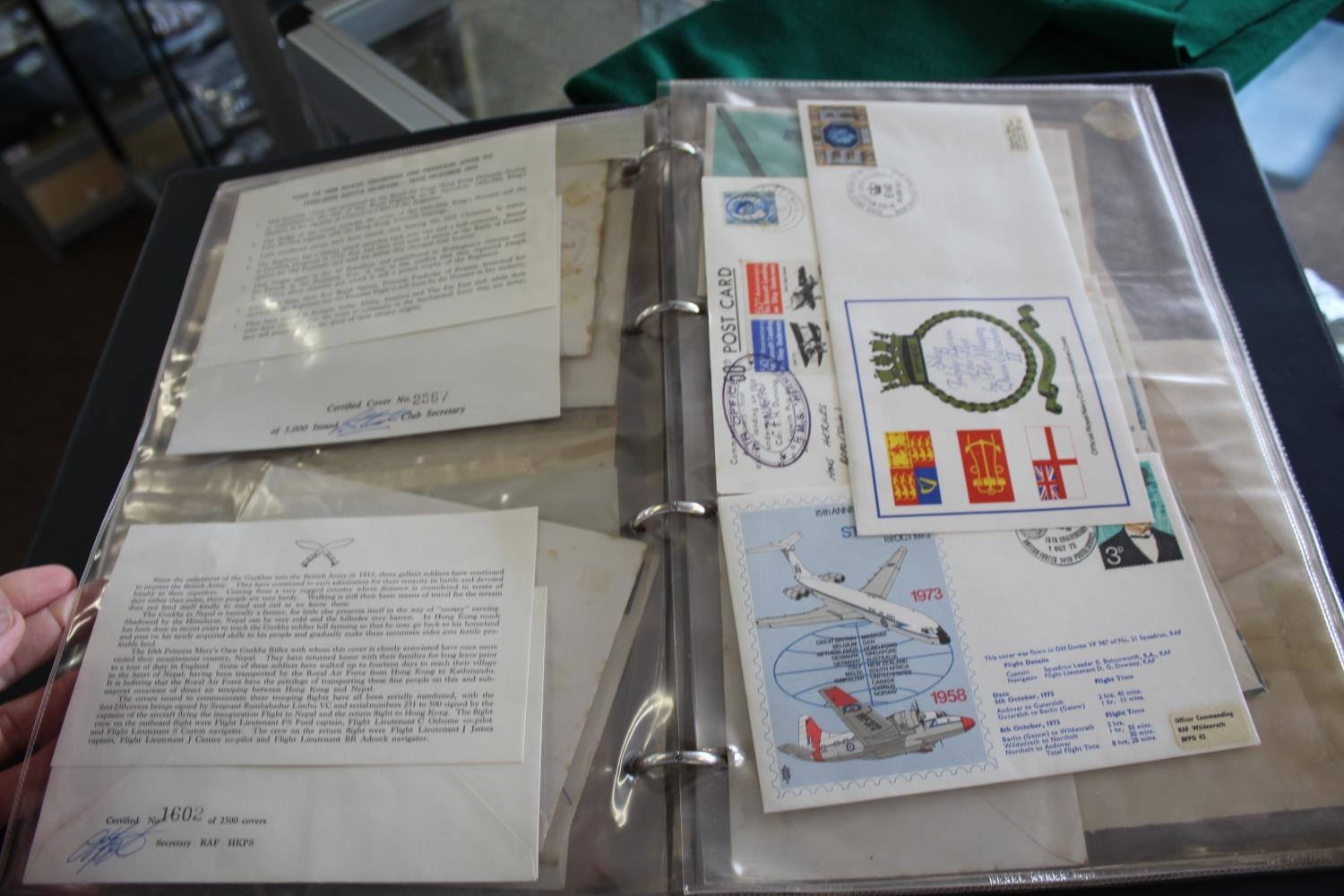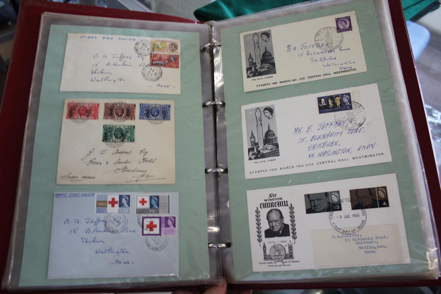 STAMP ALBUMS - EARLY FIRST DAY COVERS, AIR MAIL & POSTAL HISTORY 3 interesting albums, 1st album including Imperial Airways First Air Mail England Africa, Nelson's Dockyard Antigua 1961, Red Cross Centenary 1963, Malta Air Mail 1963 (and other Malta covers), Royal Visit Tonga 1954, Miss World 1963, New Zealand (1953 Coronation, Health Stamps etc), Australia (Scout Jamboree 1952, Discovery of Gold 1951 etc), Indian Everest Expedition 1965 etc. 2nd album, Aviation (1960's and 1970's, some signed including Air Mail Service, International Air Day, Royal Air Force, P & O Himalaya 1949, postcards etc), 19thc covers etc. 3rd album, Channel Islands Liberation 1945, International Stamp Exhibition 1950, Festival of Britain 1951, National Maritime Museum 1960, United Nations 1965, Stampex 1964, Westminster Abbey 1966, World Cup 1966, Silver Jubilee, and many more. (3)