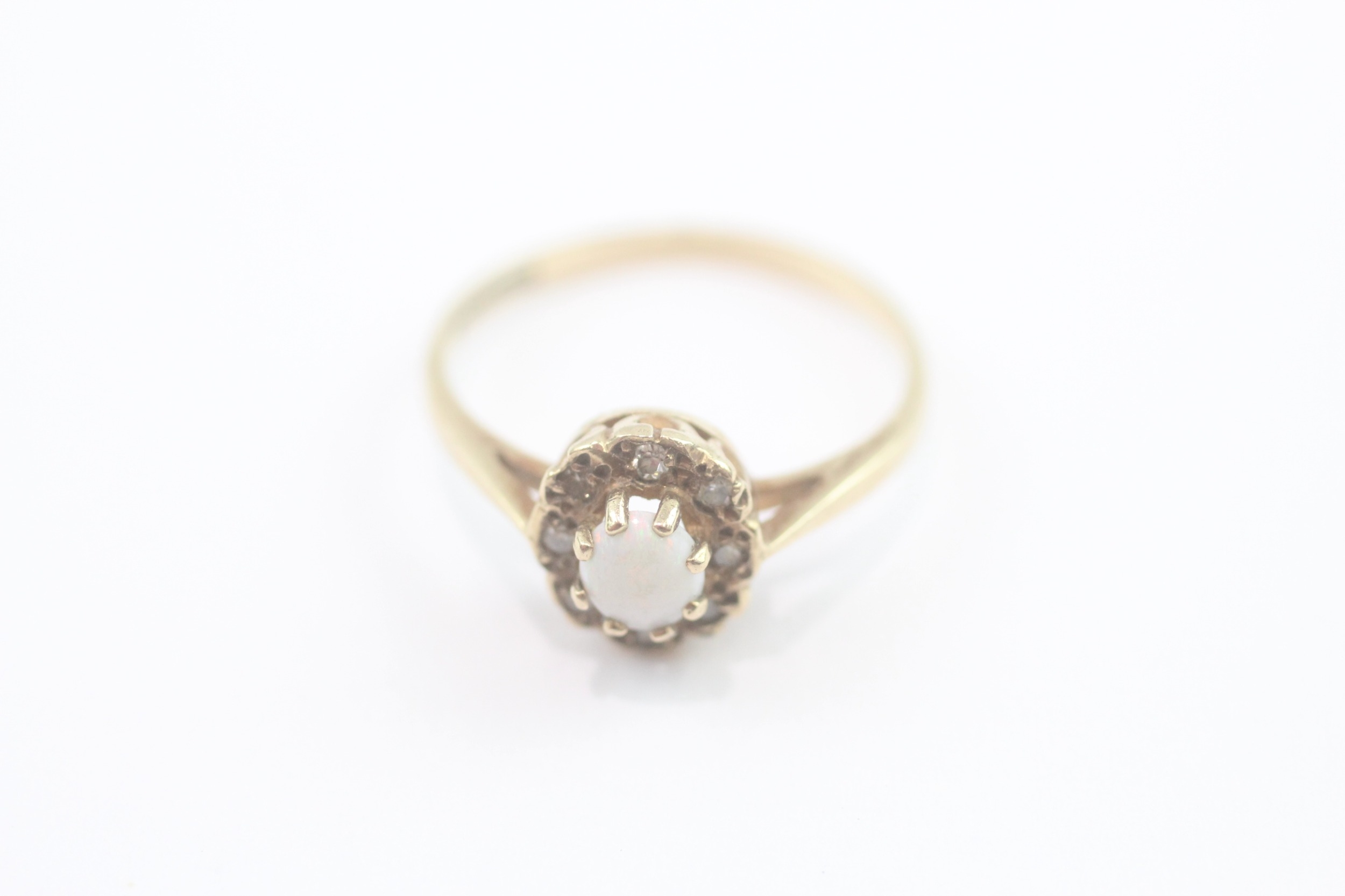 9ct gold opal and diamond cluster ring (1.5g) Size L
