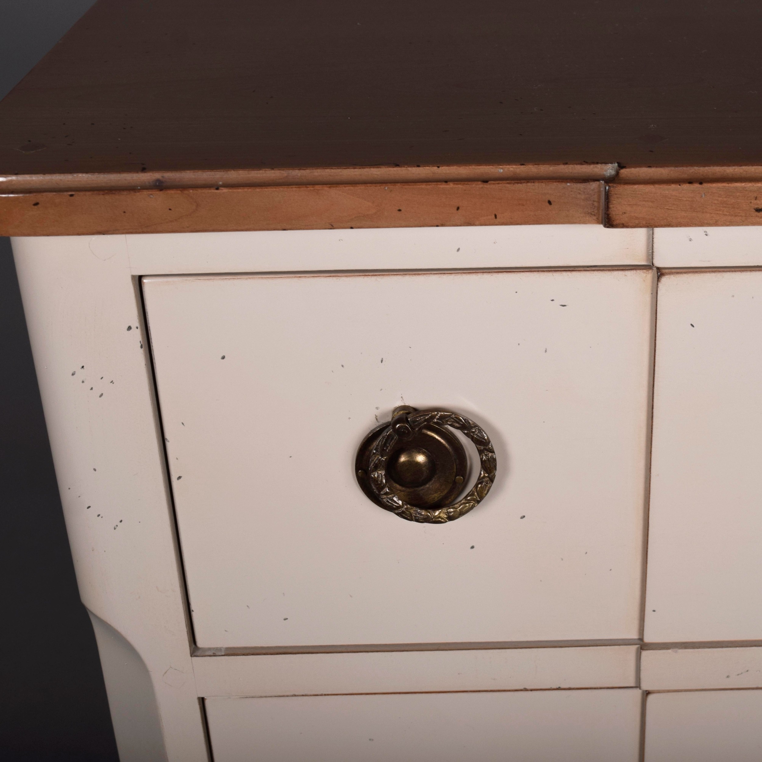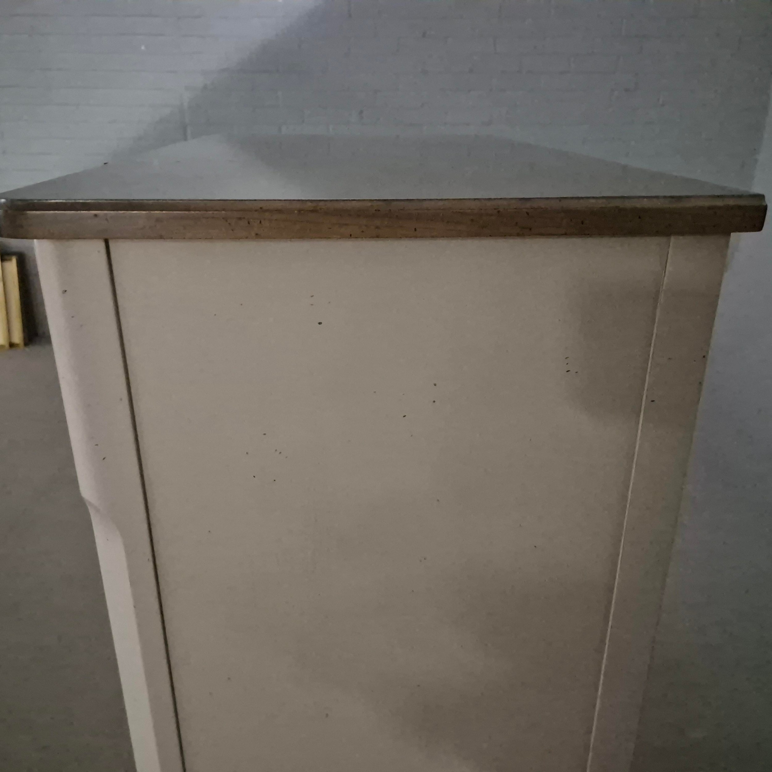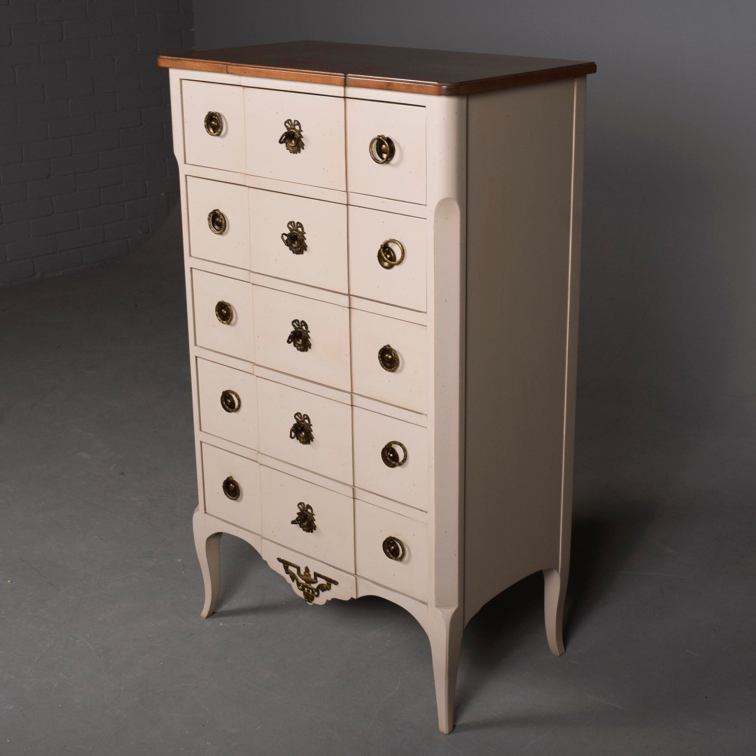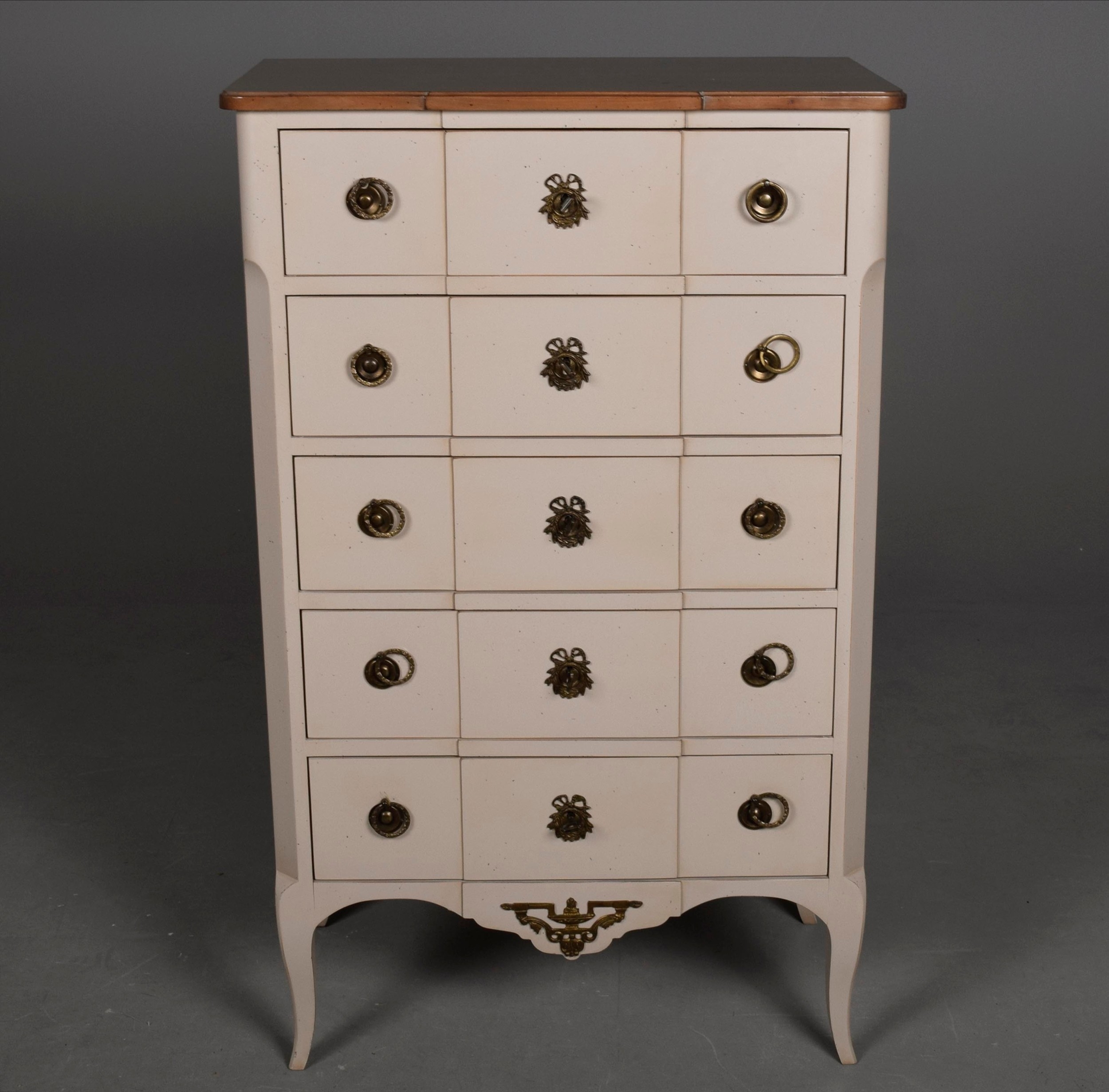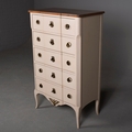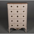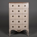 ROCHE BOBOIS FIVE DRAWER CHEST. painted antiqued finish 115cm t x 70 cm w x 40 cm d.