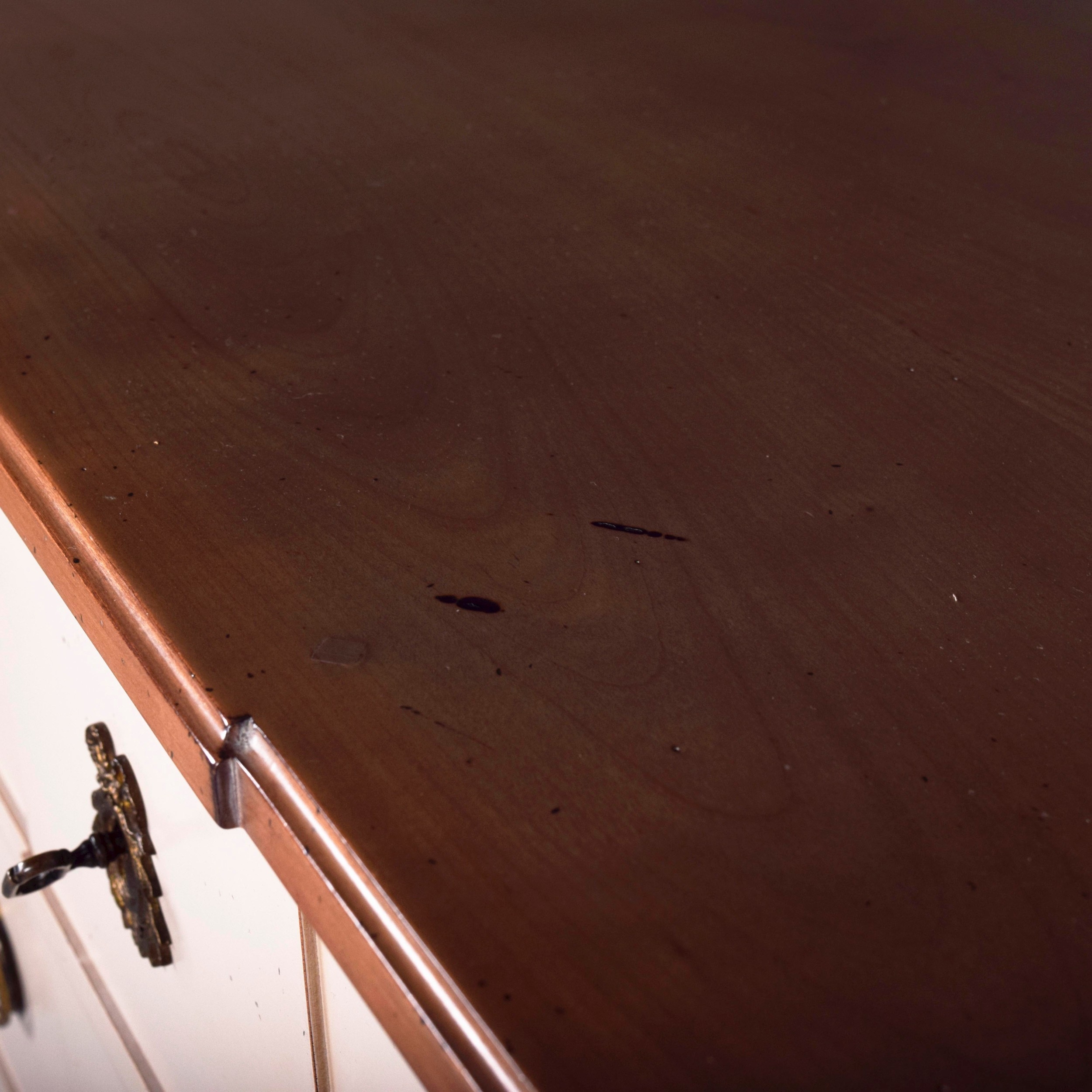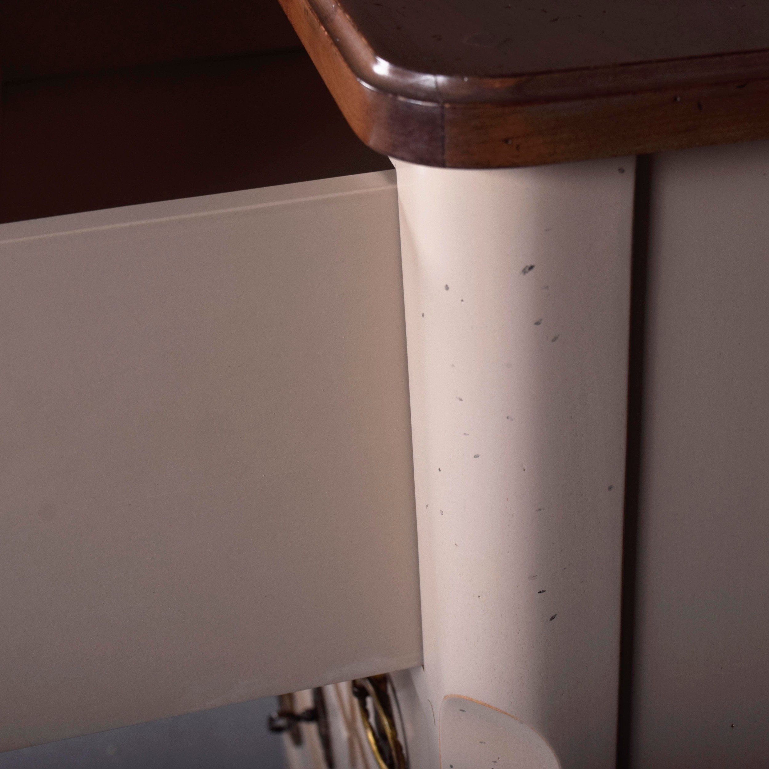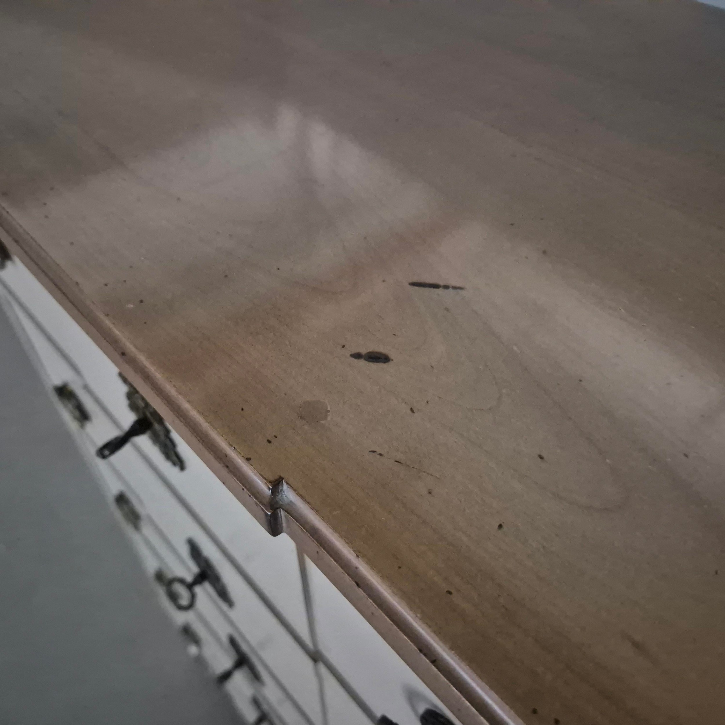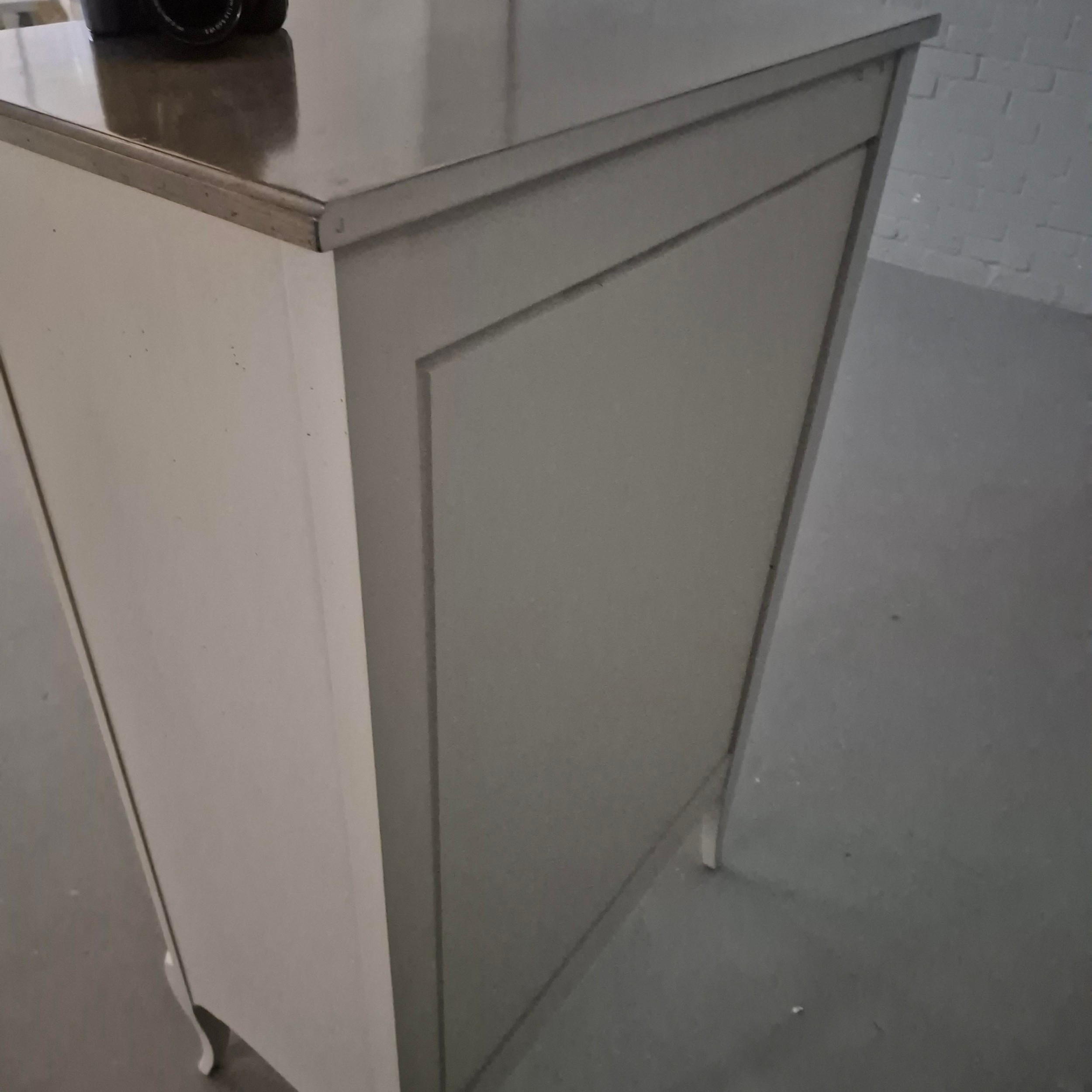 ROCHE BOBOIS FIVE DRAWER CHEST. painted antiqued finish 115cm t x 70 cm w x 40 cm d.