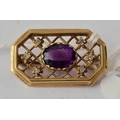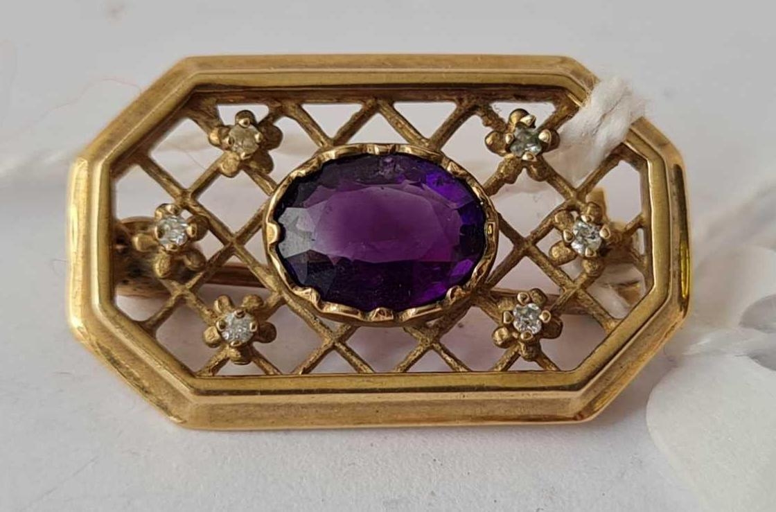A vintage amethyst and diamond brooch 9ct - 3.5 gms