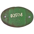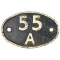Shed plate cast iron, 55A HOLBECK (Leeds). Front repainted black over green. D2074 endorsed on rear, which was an 03 class shunter, 7 1/4 x 4 11/16 inches. Shipping band - B.