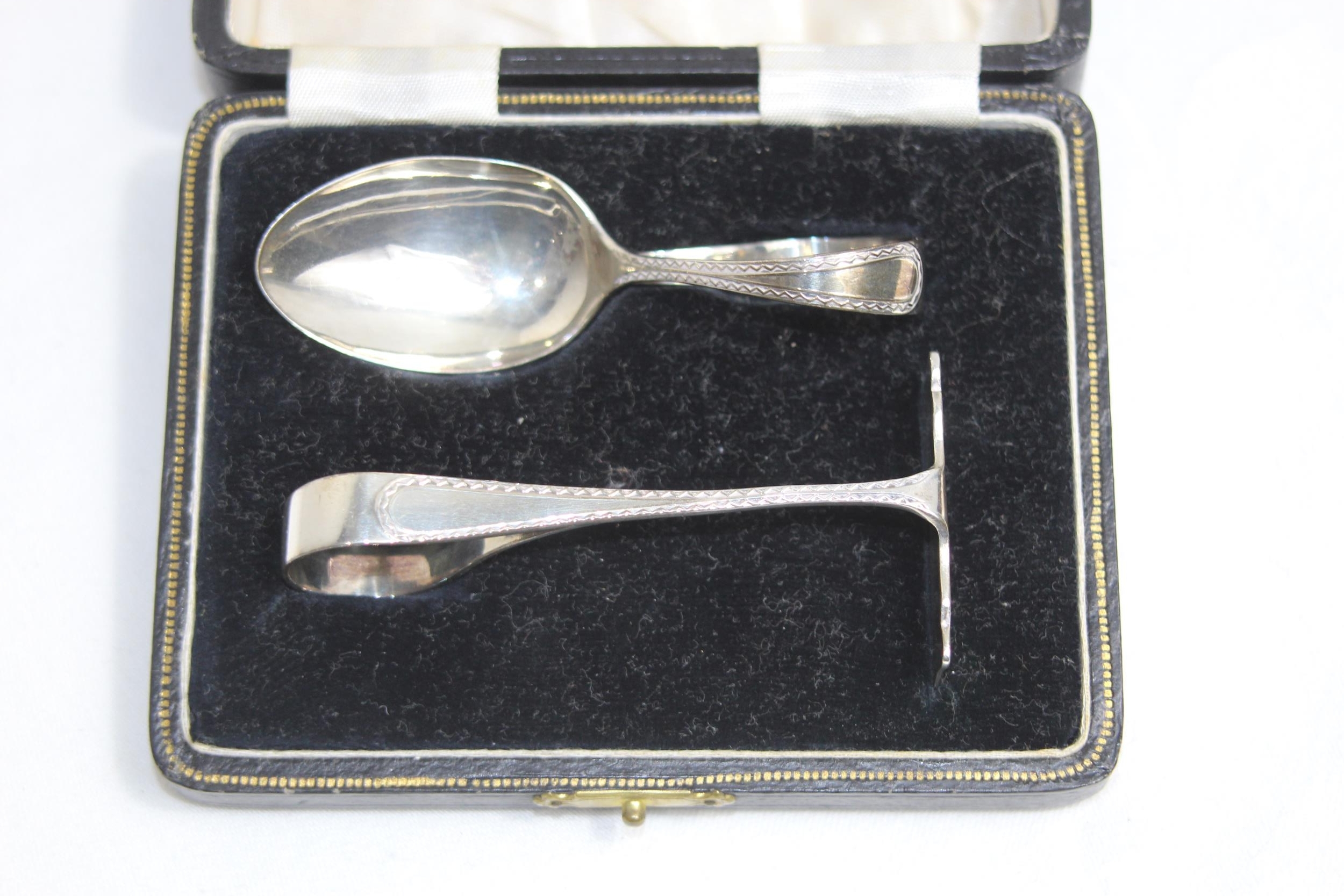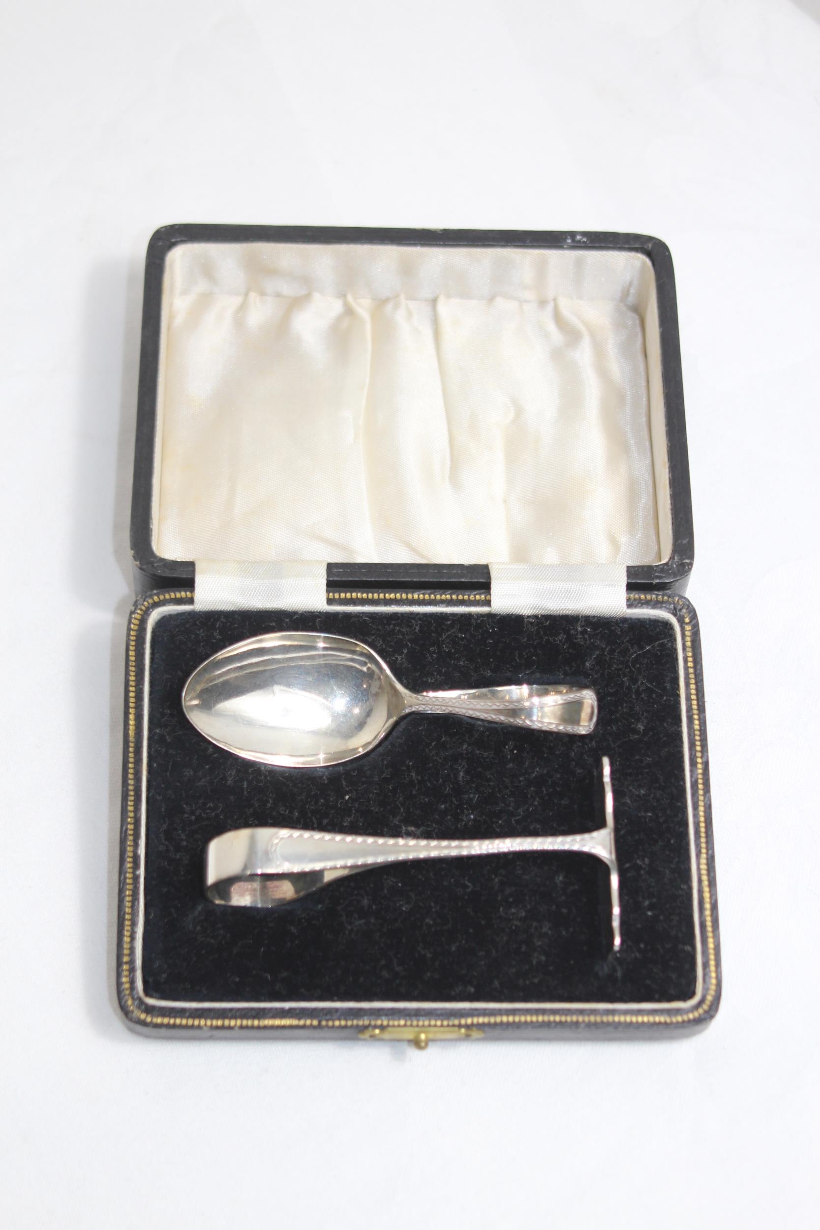 CASED SILVER CHRISTENING SET, SILVER 33.92 GRAMS