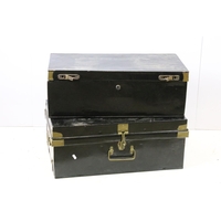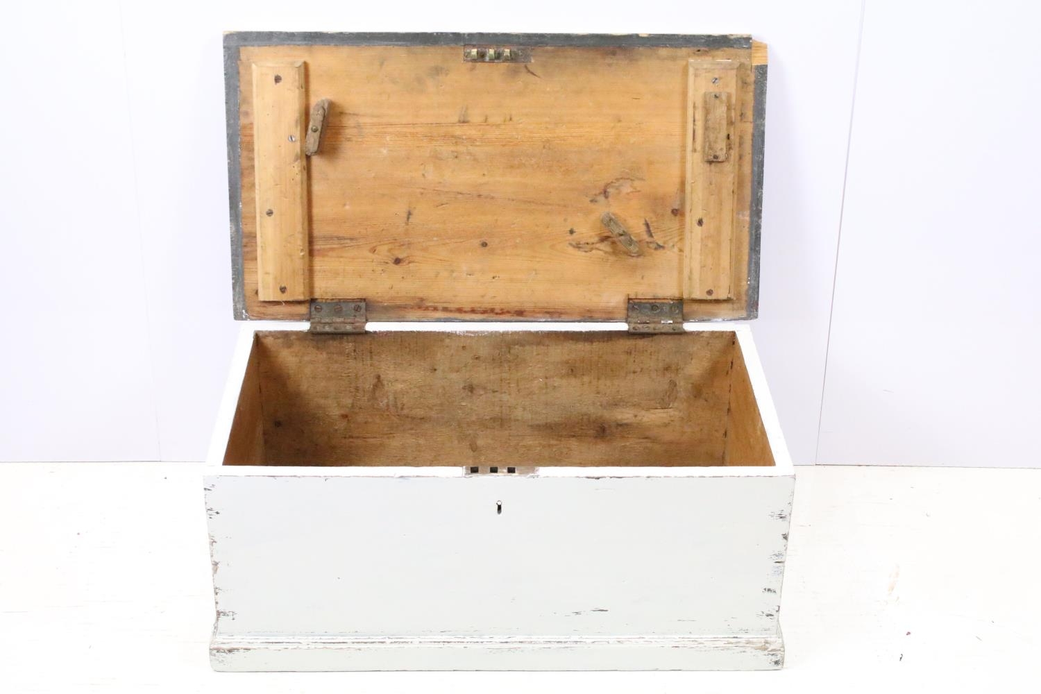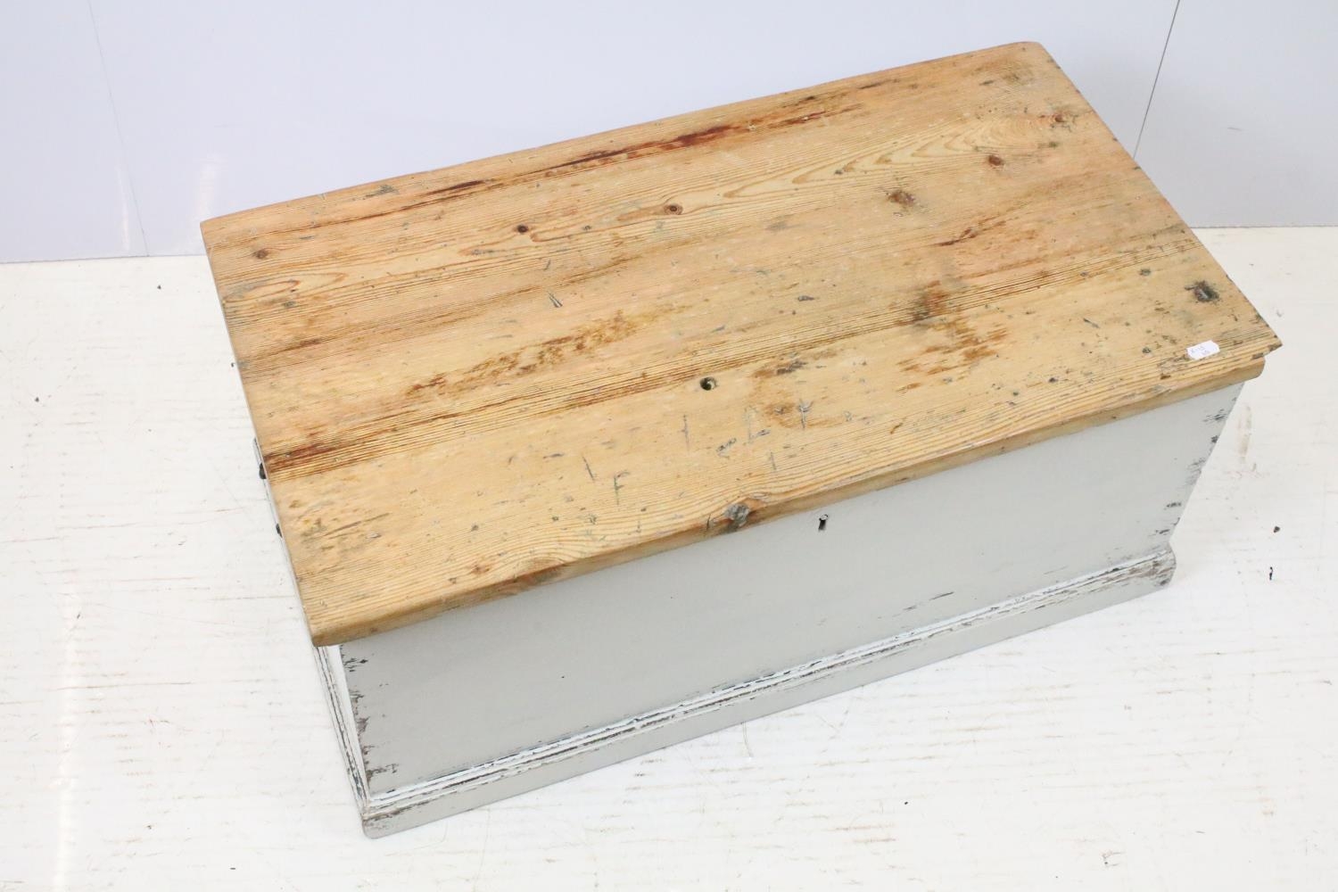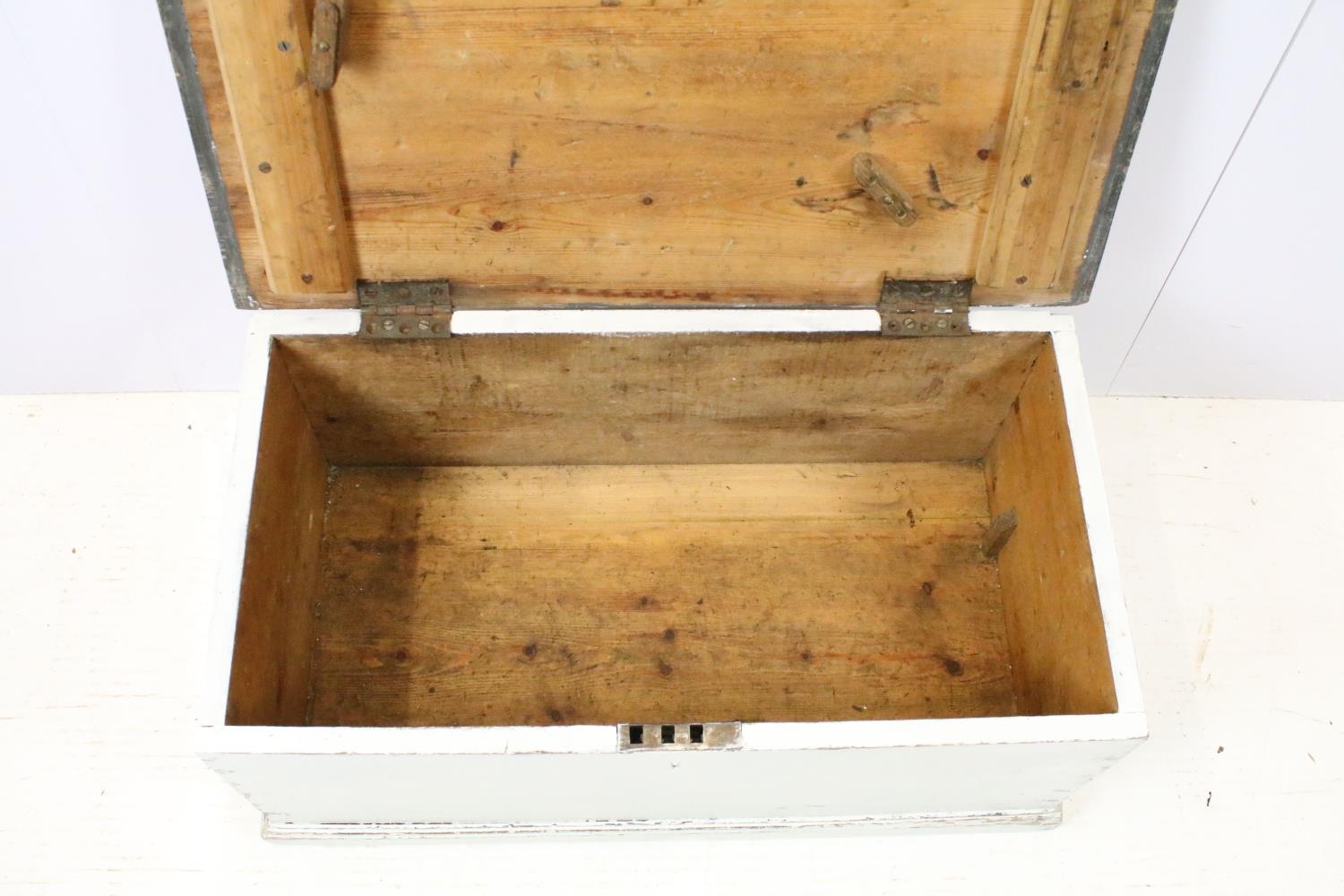 19th century pine part painted blanket box, 74cm wide x 39cm deep x 33cm high