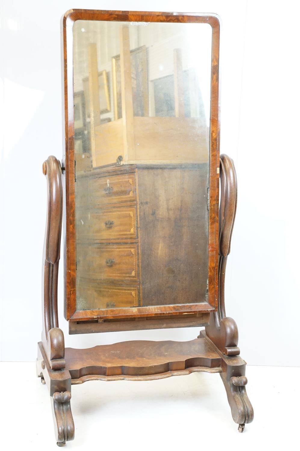 Victorian mahogany swing frame mirror of substantial proportions, 153cm high x 77cm wide x 63cm deep