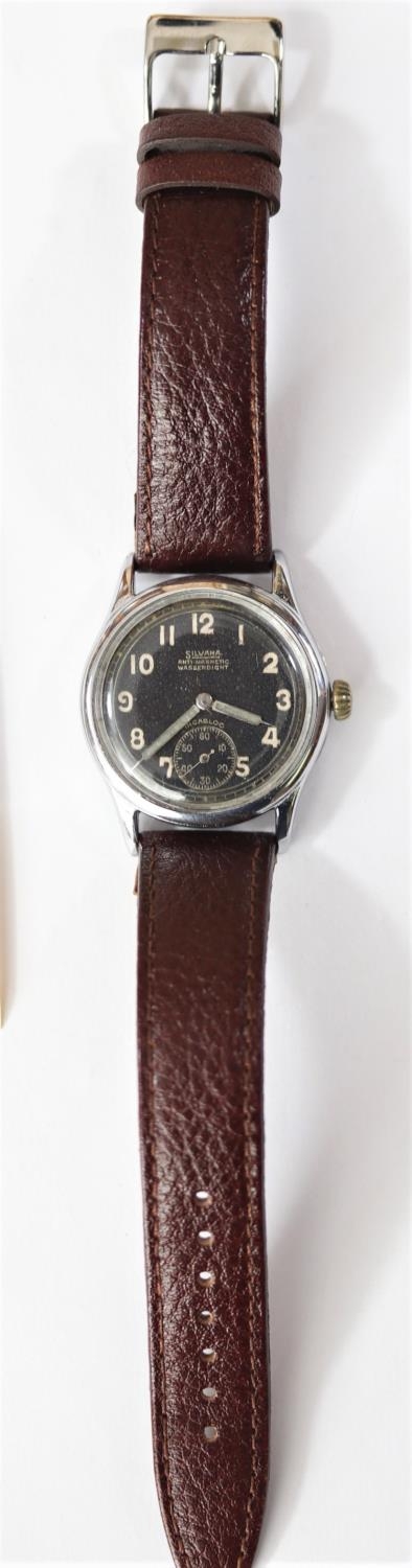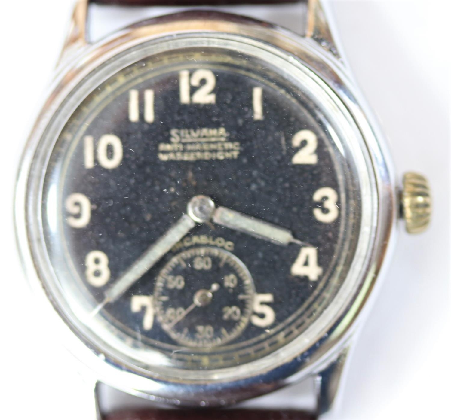 DH marked Silvana wristwatch. Serial D260723H. Plated case, refinished, 34mm without crown. Fixed bars. Screw caseback, marked stahlboden. Dial in good condition, light spotting, no luminous material remains on dial, hands appear refinished. Unsigned AS 1130 movement, shock protected balance, running condition. Movement retaining ring present. VGC