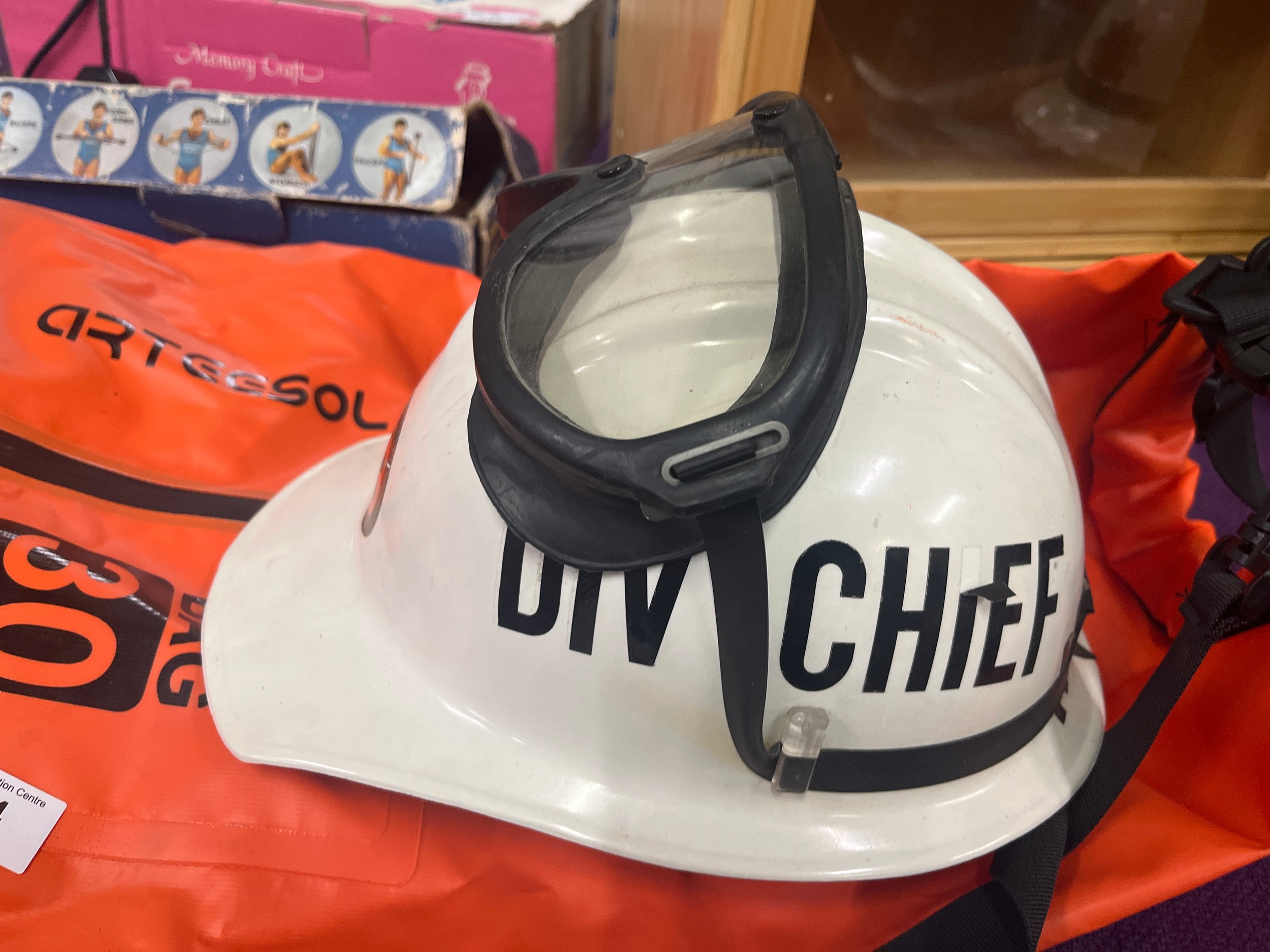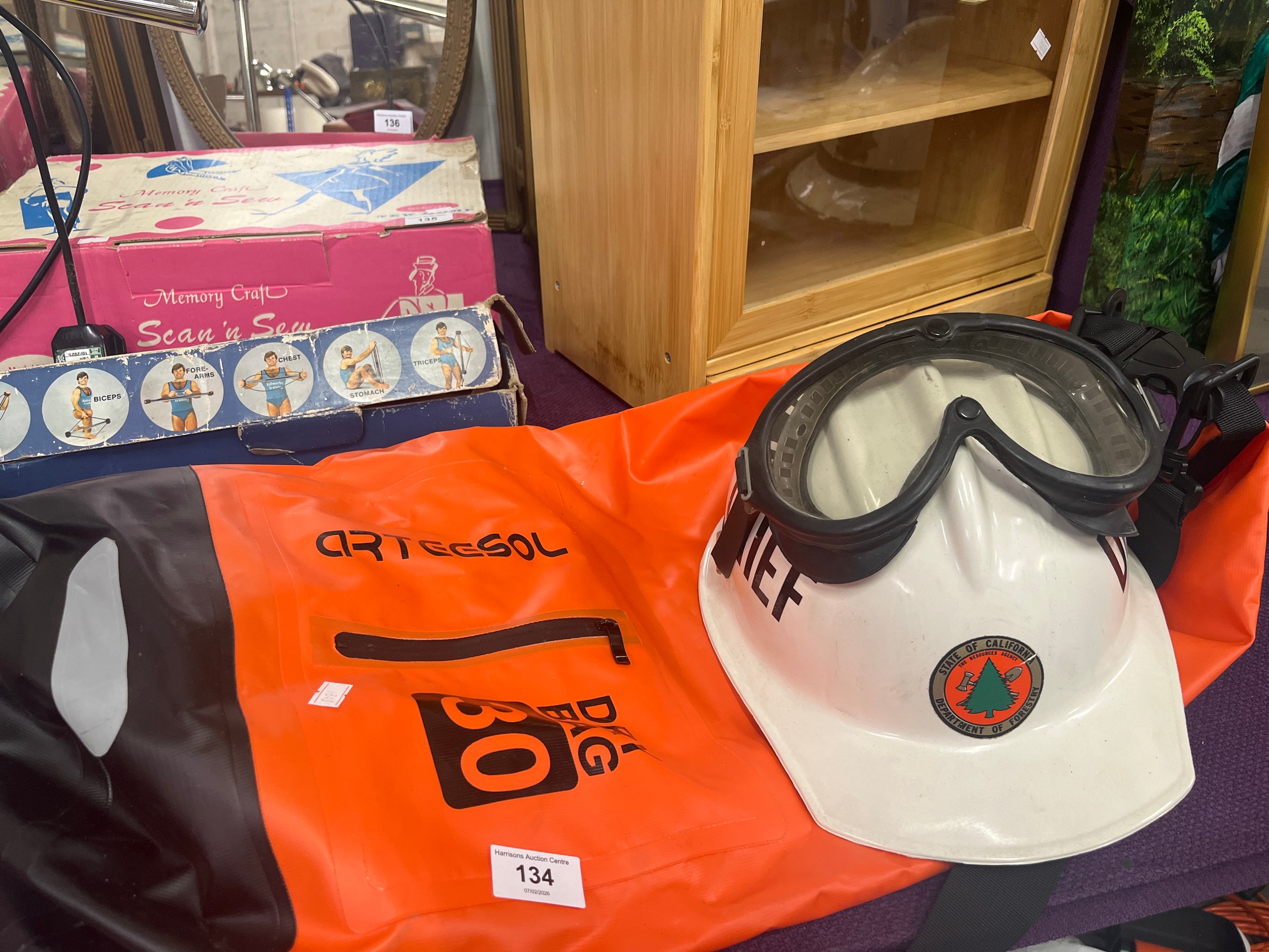 Bullard hardhat ‘dept of forestry plus goggles and a hi viz Dry bag