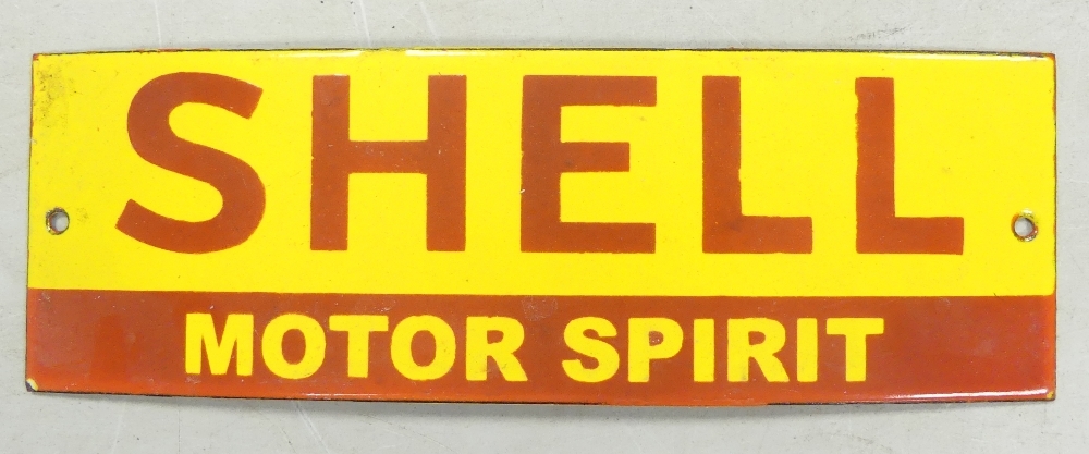 Enamel 'Shell' advertising sign. (H: 10cm x L: 30.5cm)