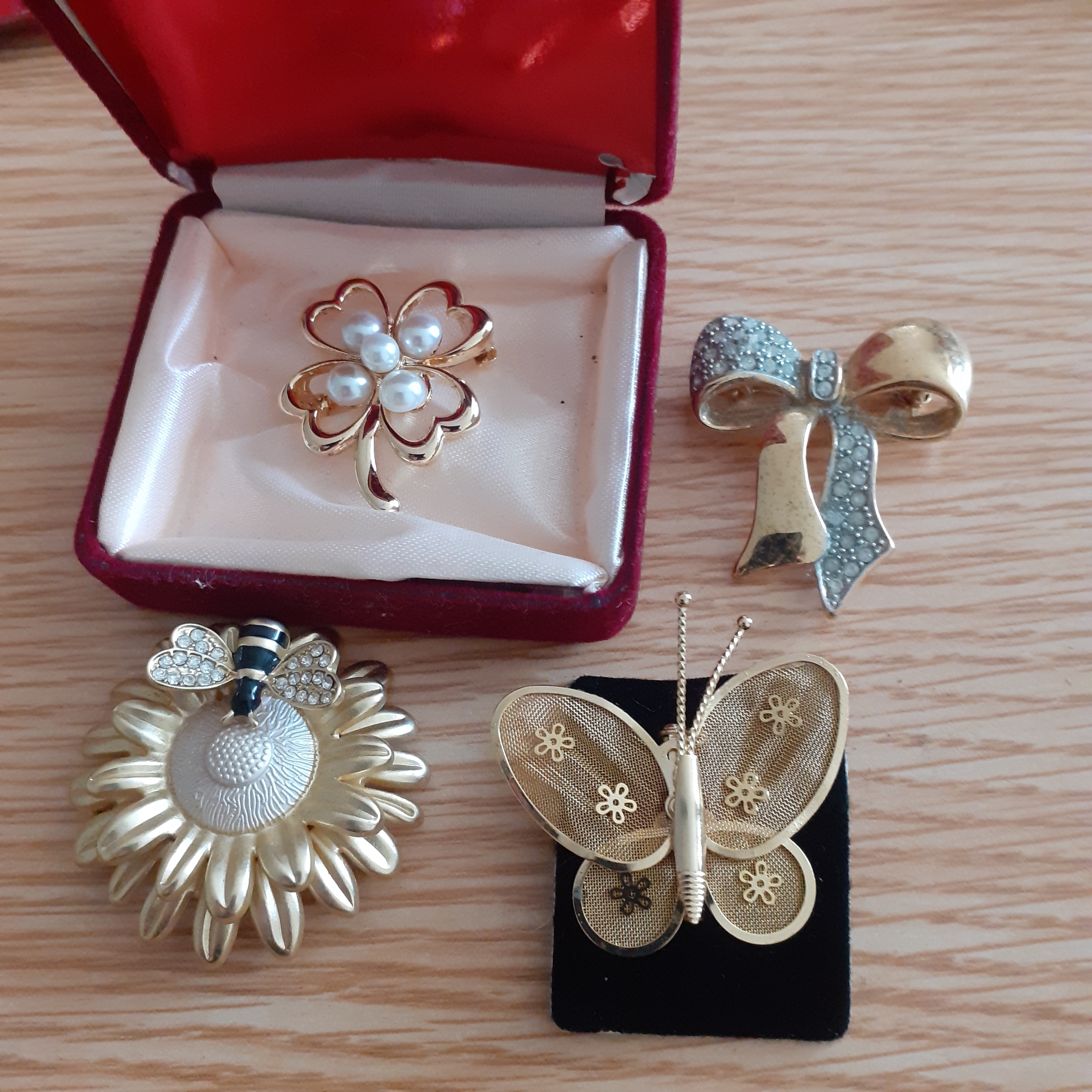 A selection of ladies brooches. Gold tones, good quality with no damage.