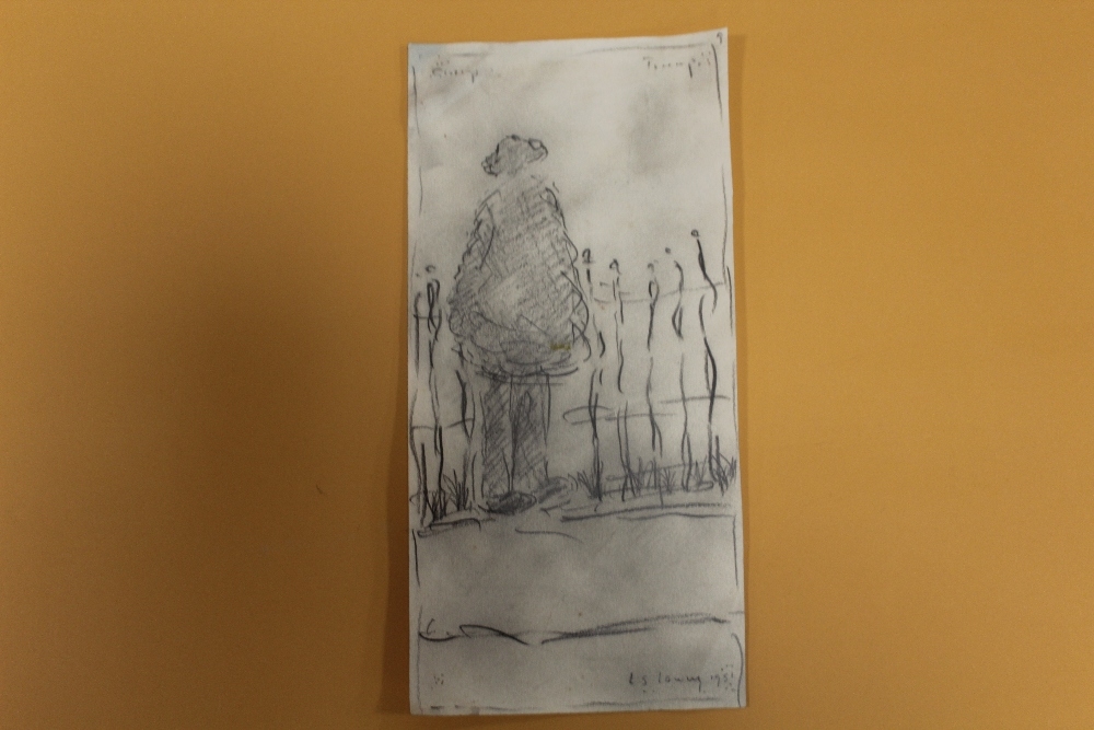 CIRCLE OF LAURENCE STEPHEN LOWRY (1887-1976) STUDY OF A MAN BY RAILINGS, BEARS SIGNATURE AND DATE 1951 LOWER RIGHT