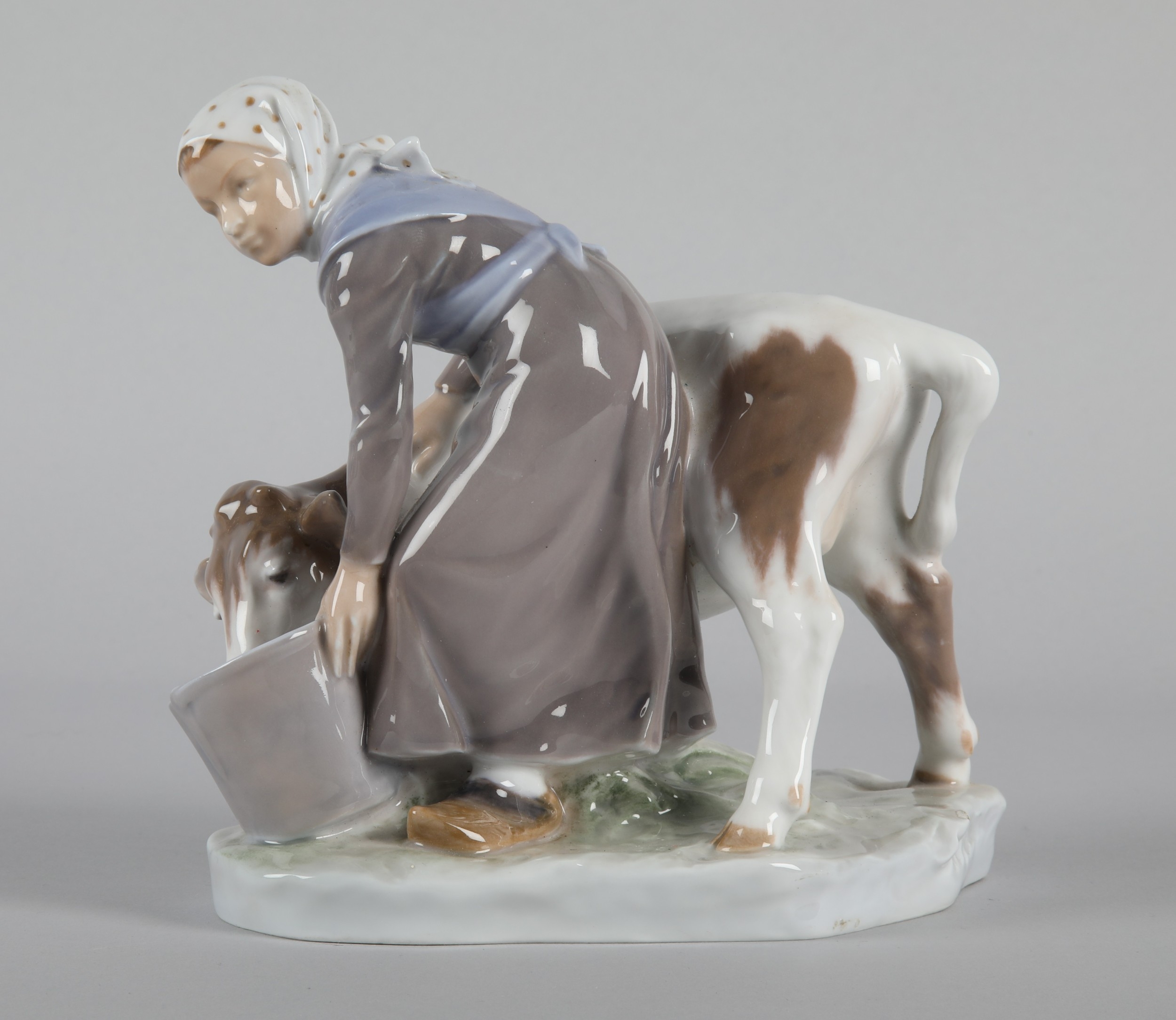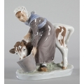 Royal Copenhagen ‘Girl with Calf’ figure, model 779, 16cm h.
