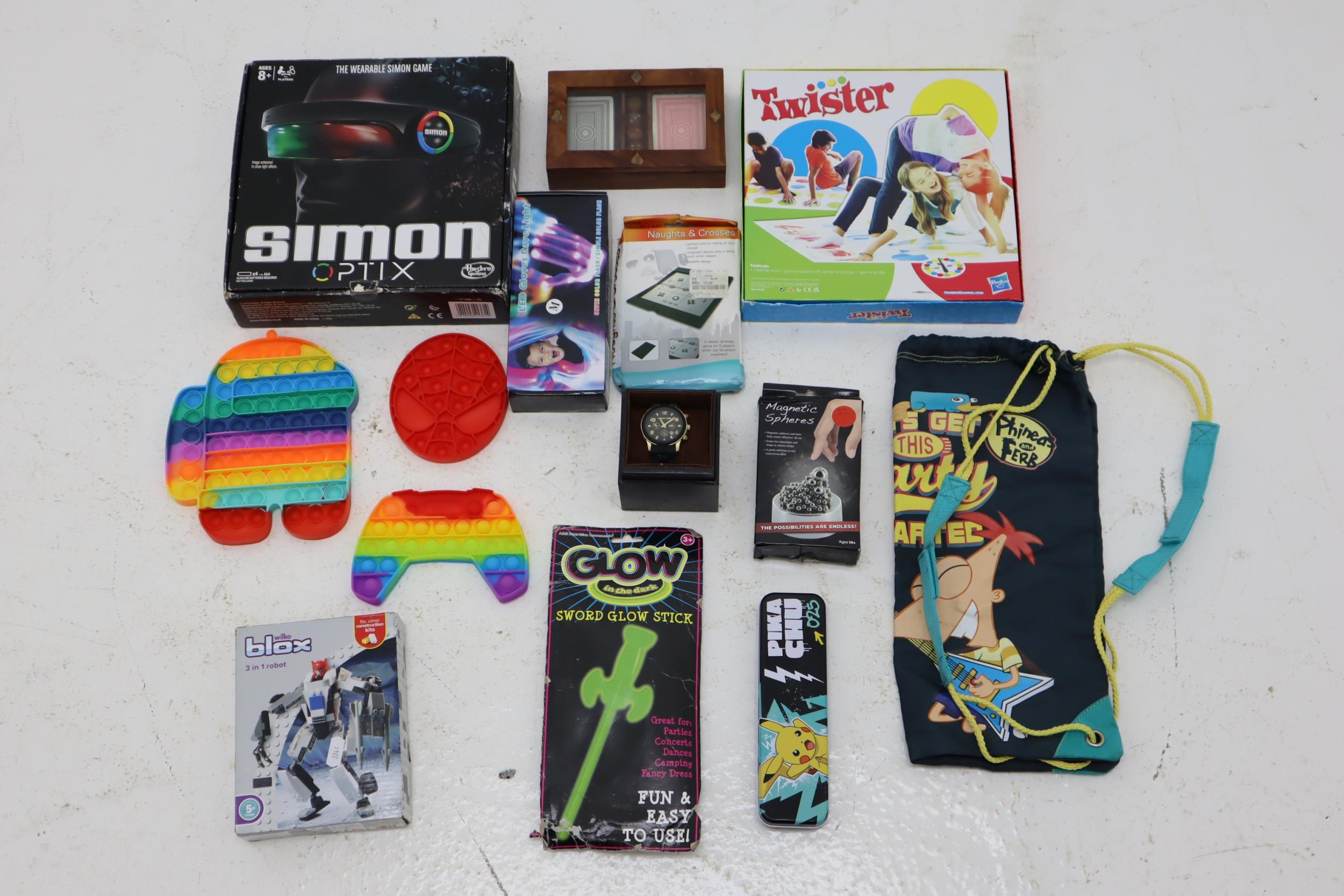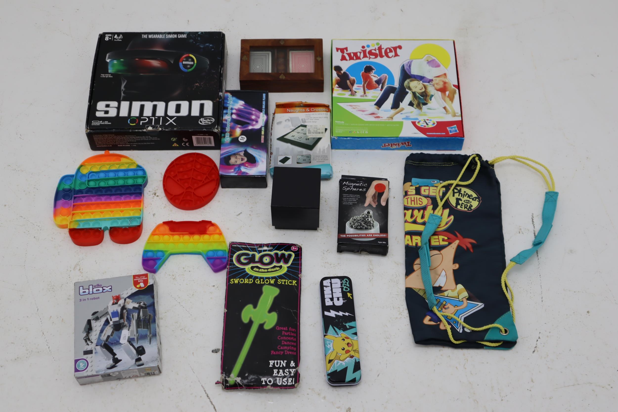 A Selection of Children's Toys and Accessories To Include Among Us, Phineas and Ferb, Twister and More.