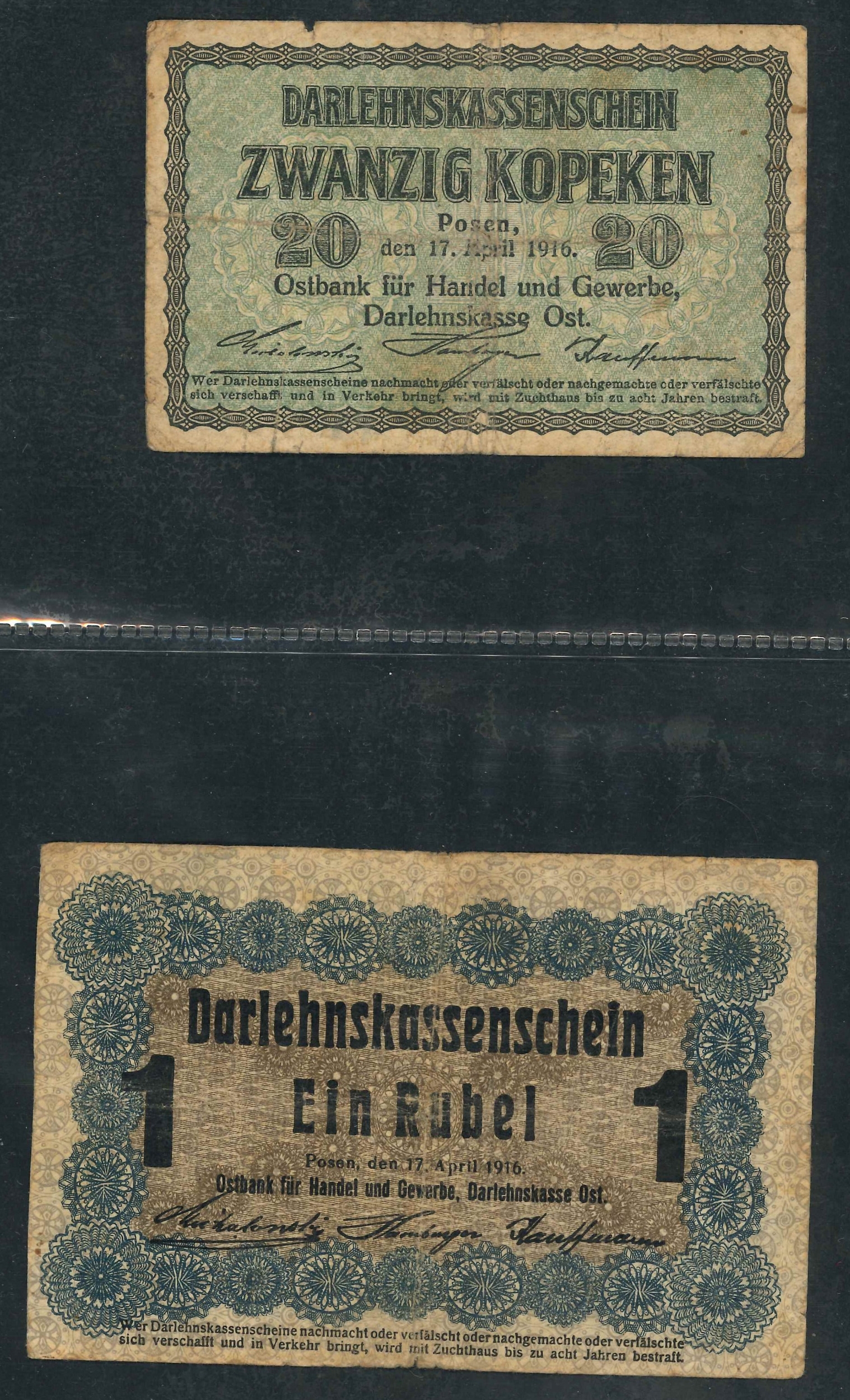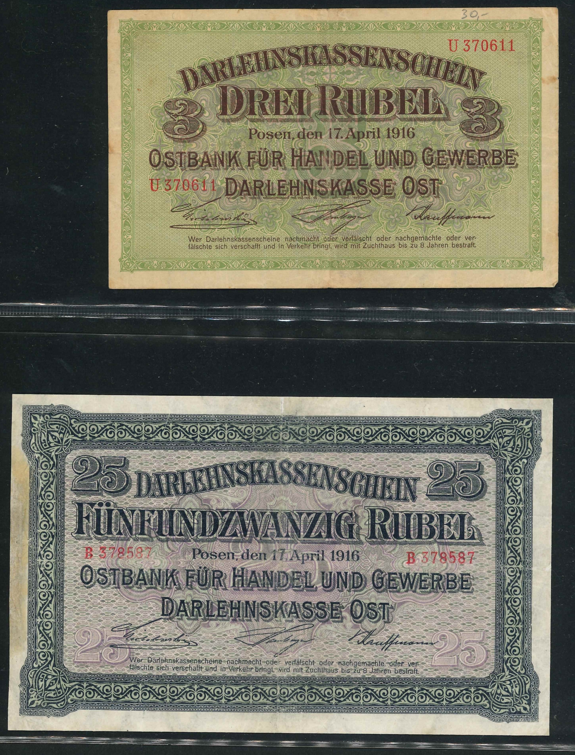Banknotes; Poland; German Occupation of Lithuania; 1916 Posen 20k VG, 1r VG, 3r F+, 25r approx. F.