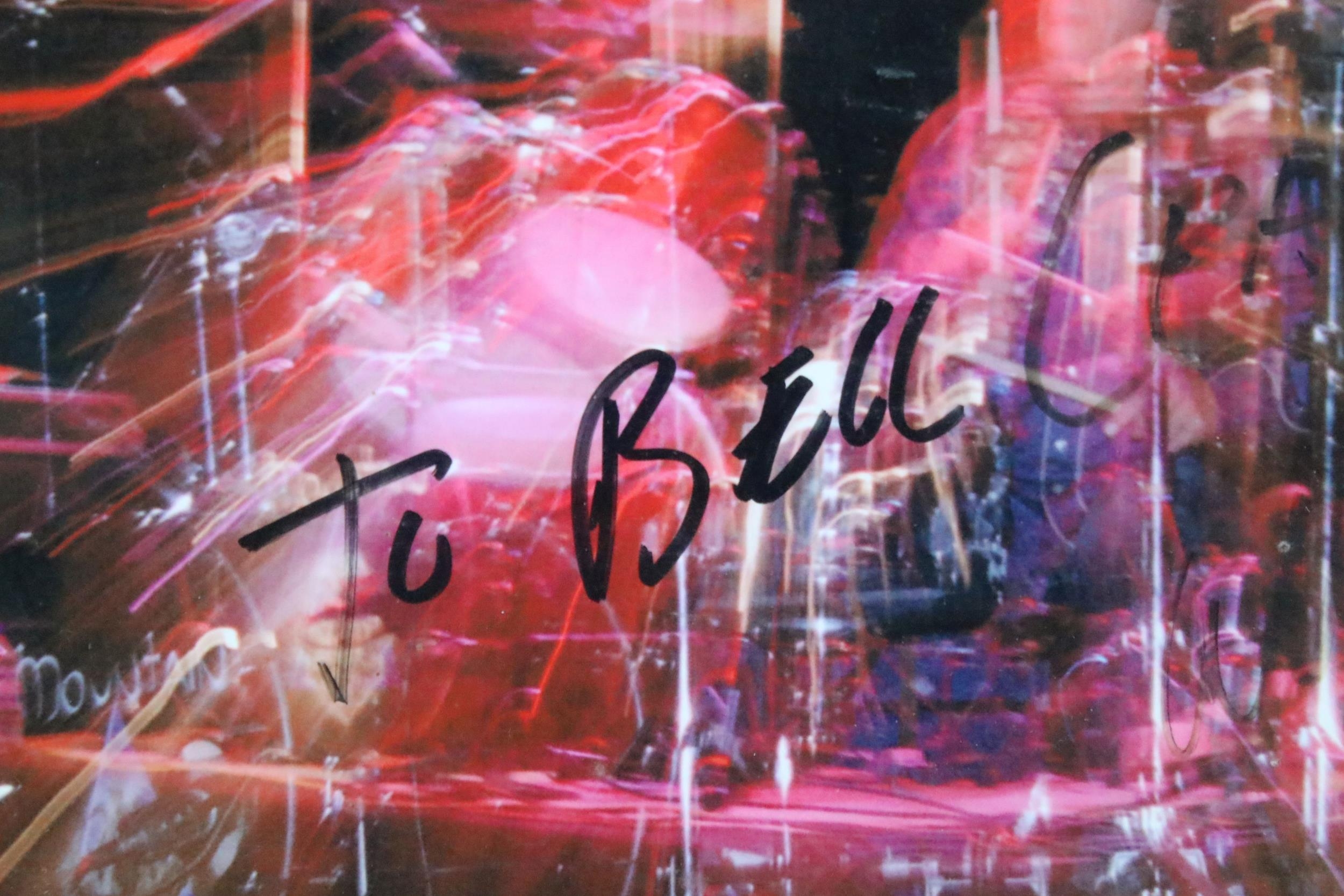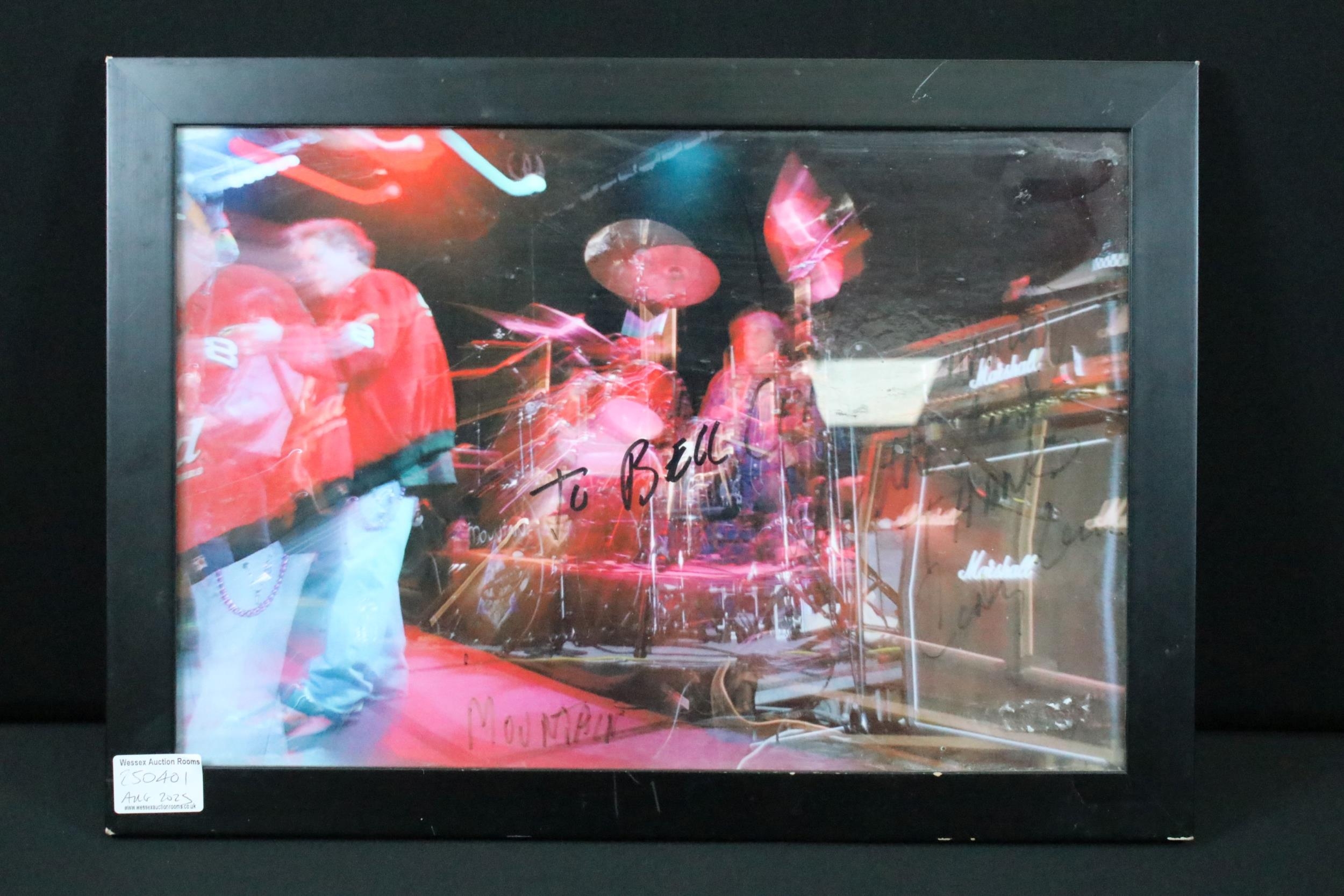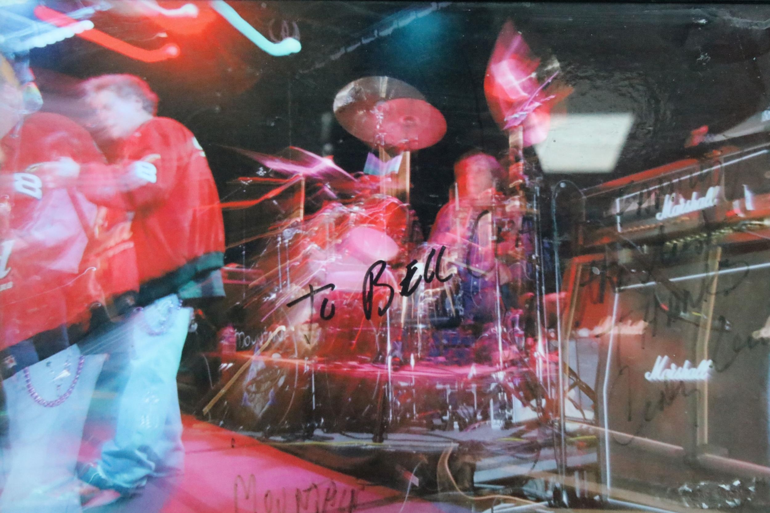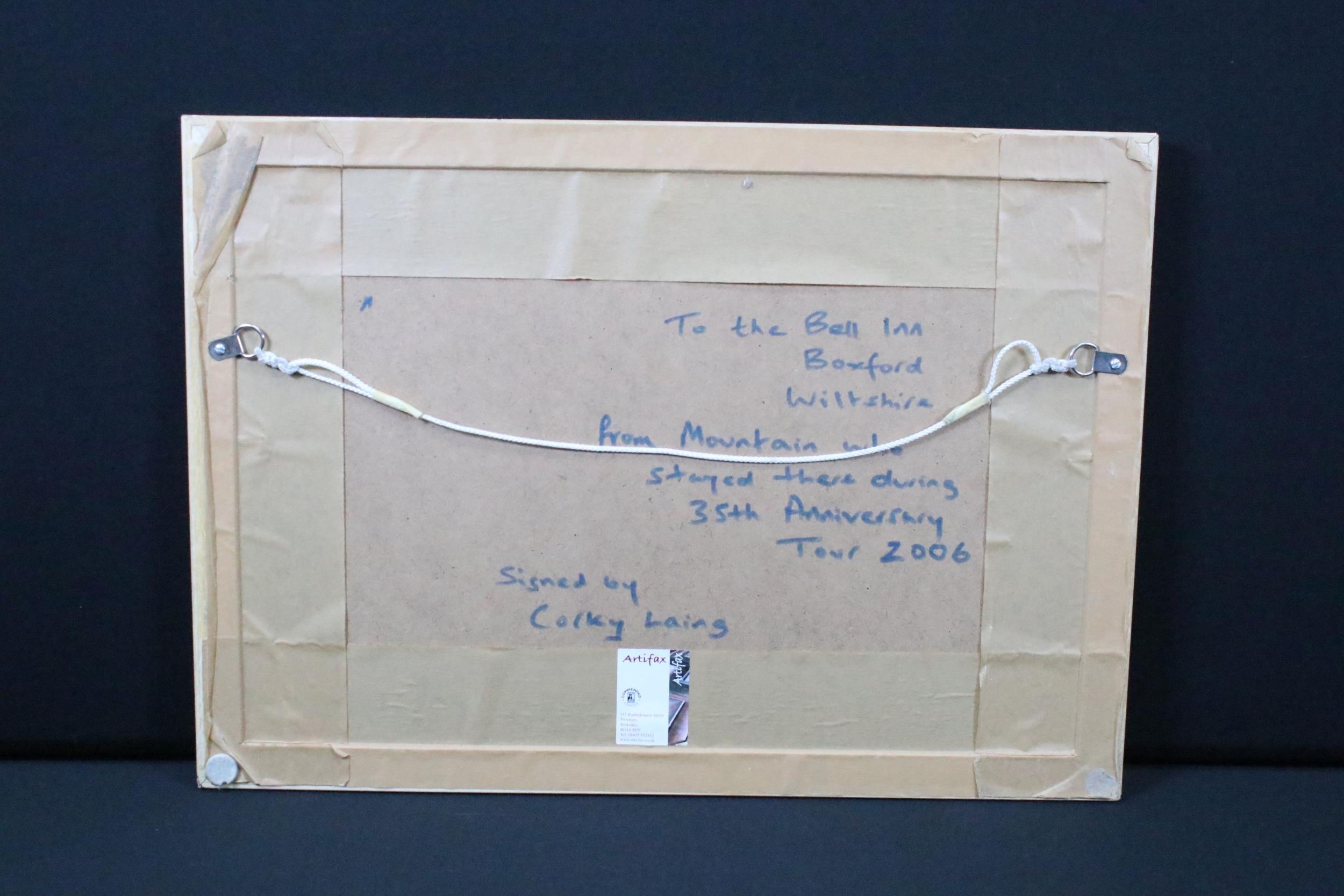 Memorabilia - Framed and glazed picture of Mountain signed by Corky Laing and dedicated to The Bell Inn, Wiltshire.
