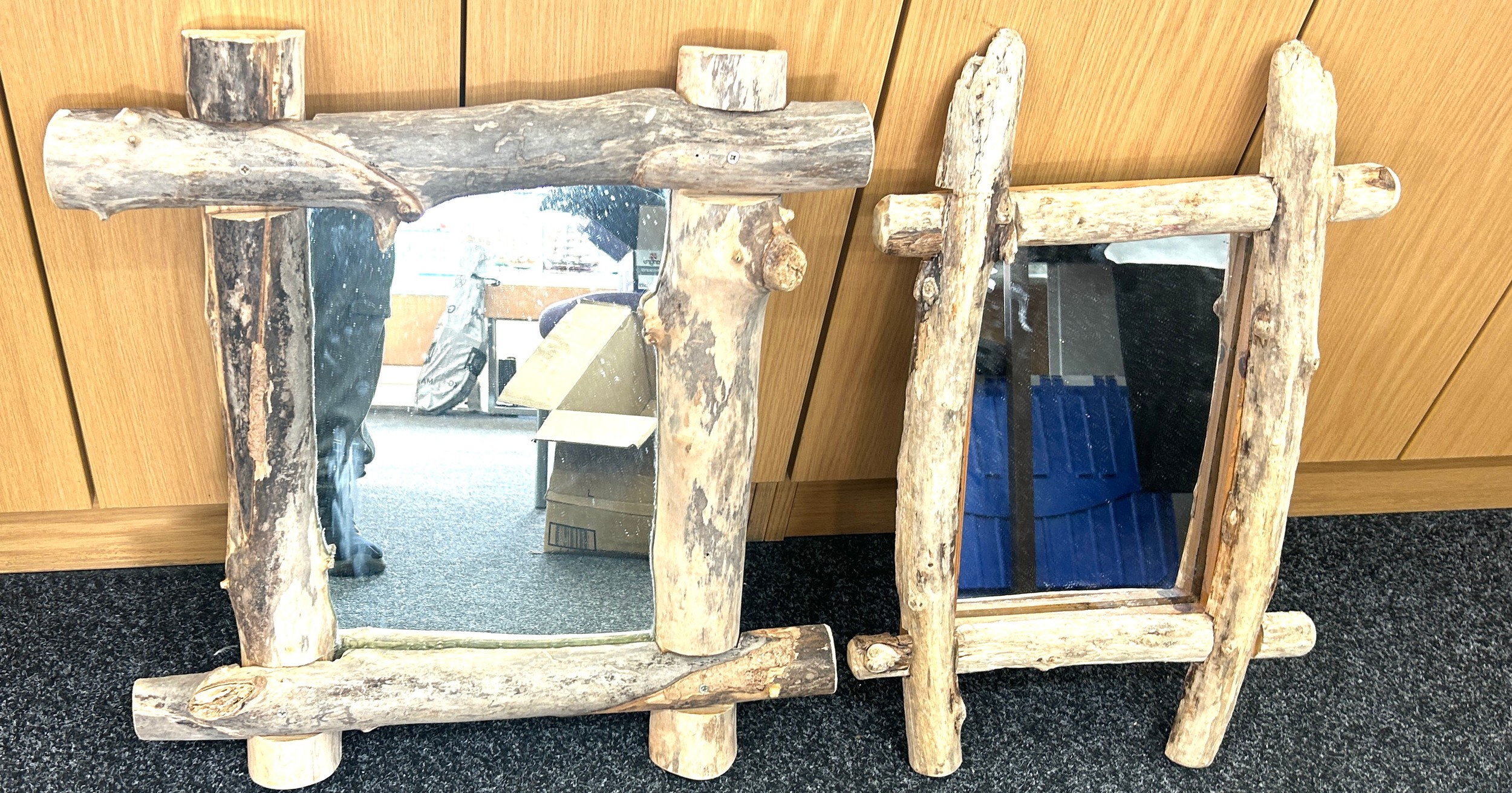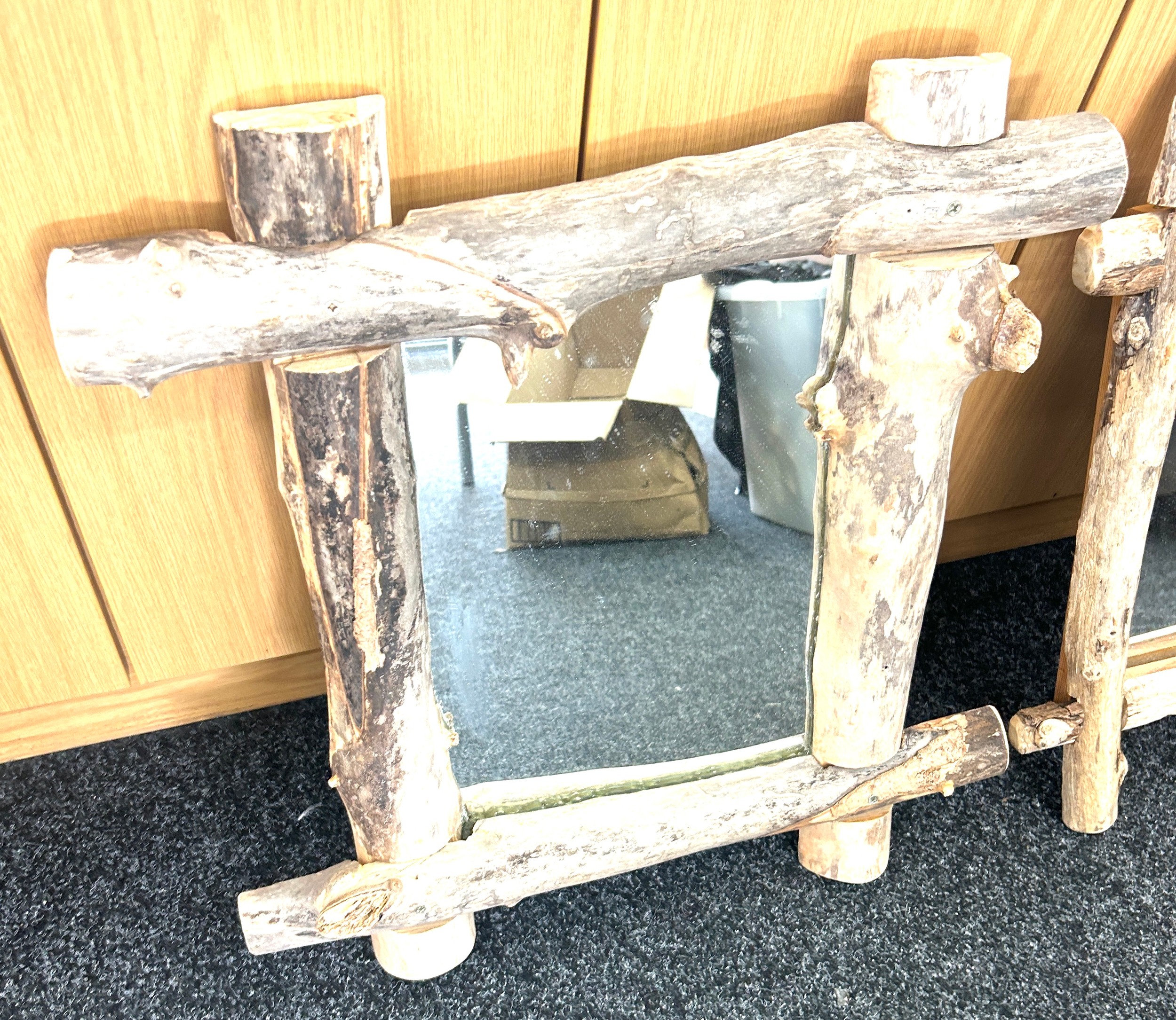 Two driftwood mirrors largest measures approximately 24 inches tall 22 inches wide