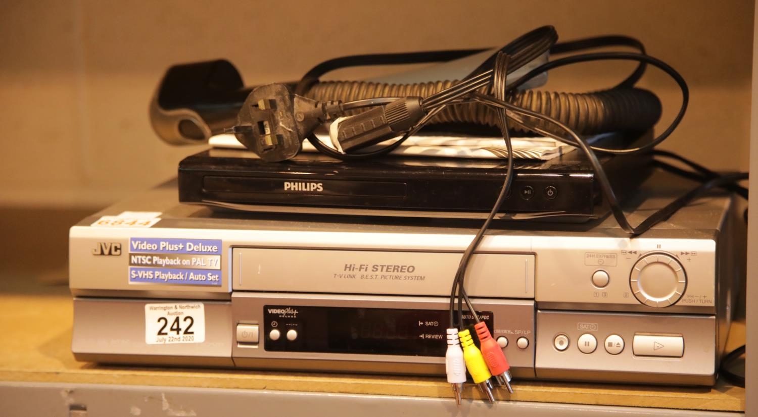 JVC video recorder plus Philips DVD player and remotes. This lot is not available for in-house P&P.
