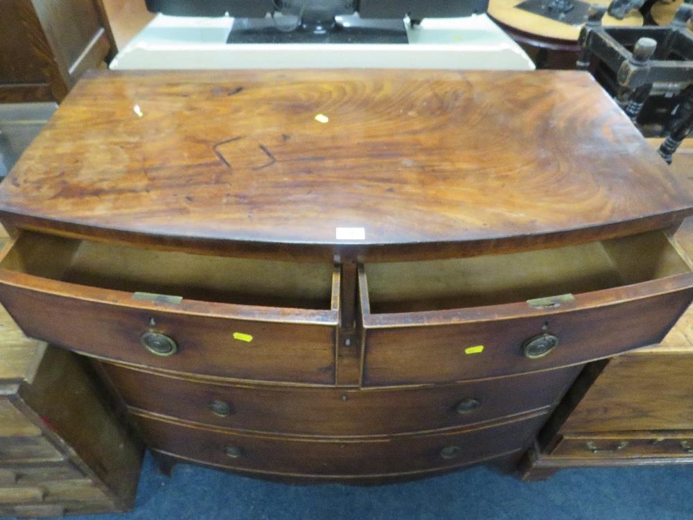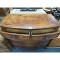 AN ANTIQUE MAHOGANY BOW FRONT CHEST OF FIVE DRAWERS W-108 CM