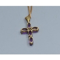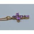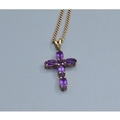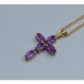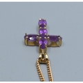 9ct gold Amethyst cross measuring 2.3x1.3cm including the bale on a 9ct gold neck chain of 52cm long 3.6grams