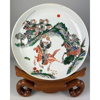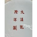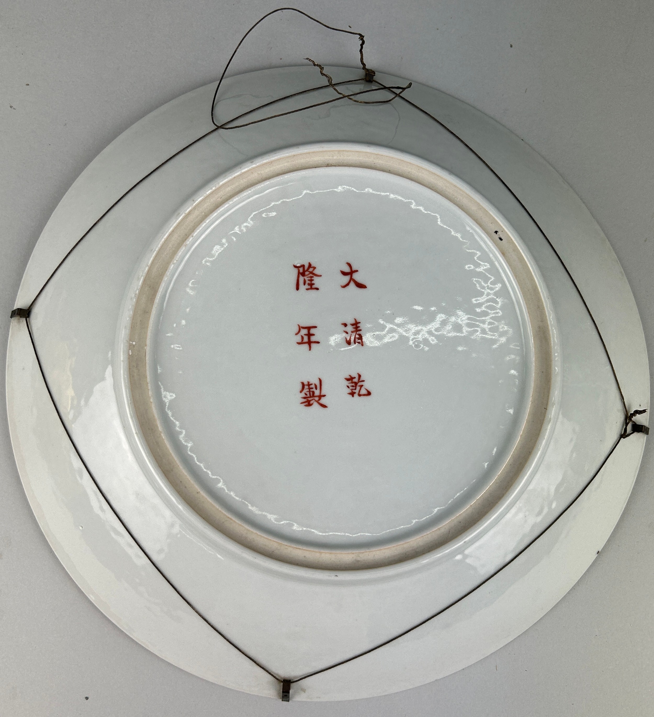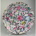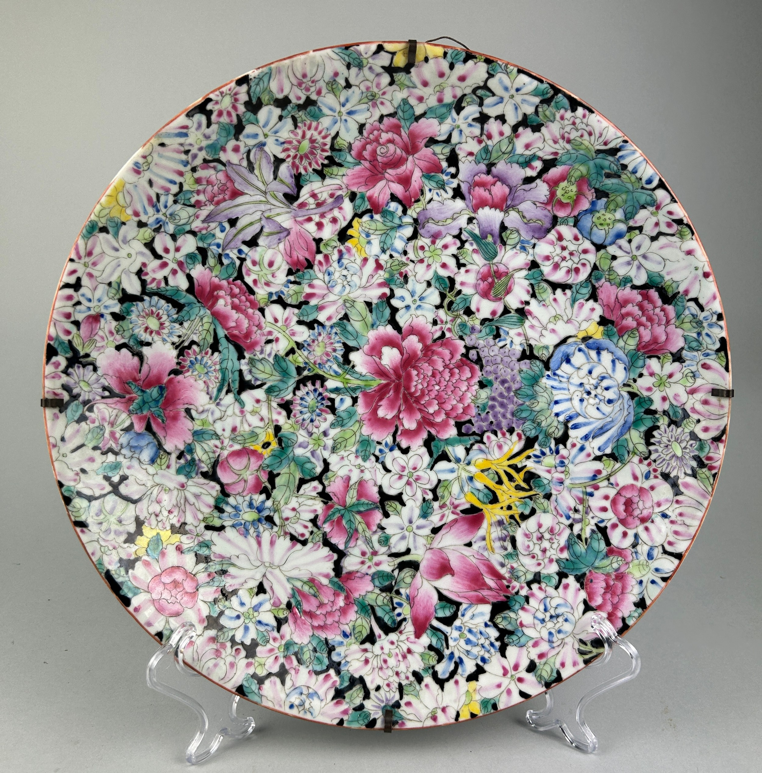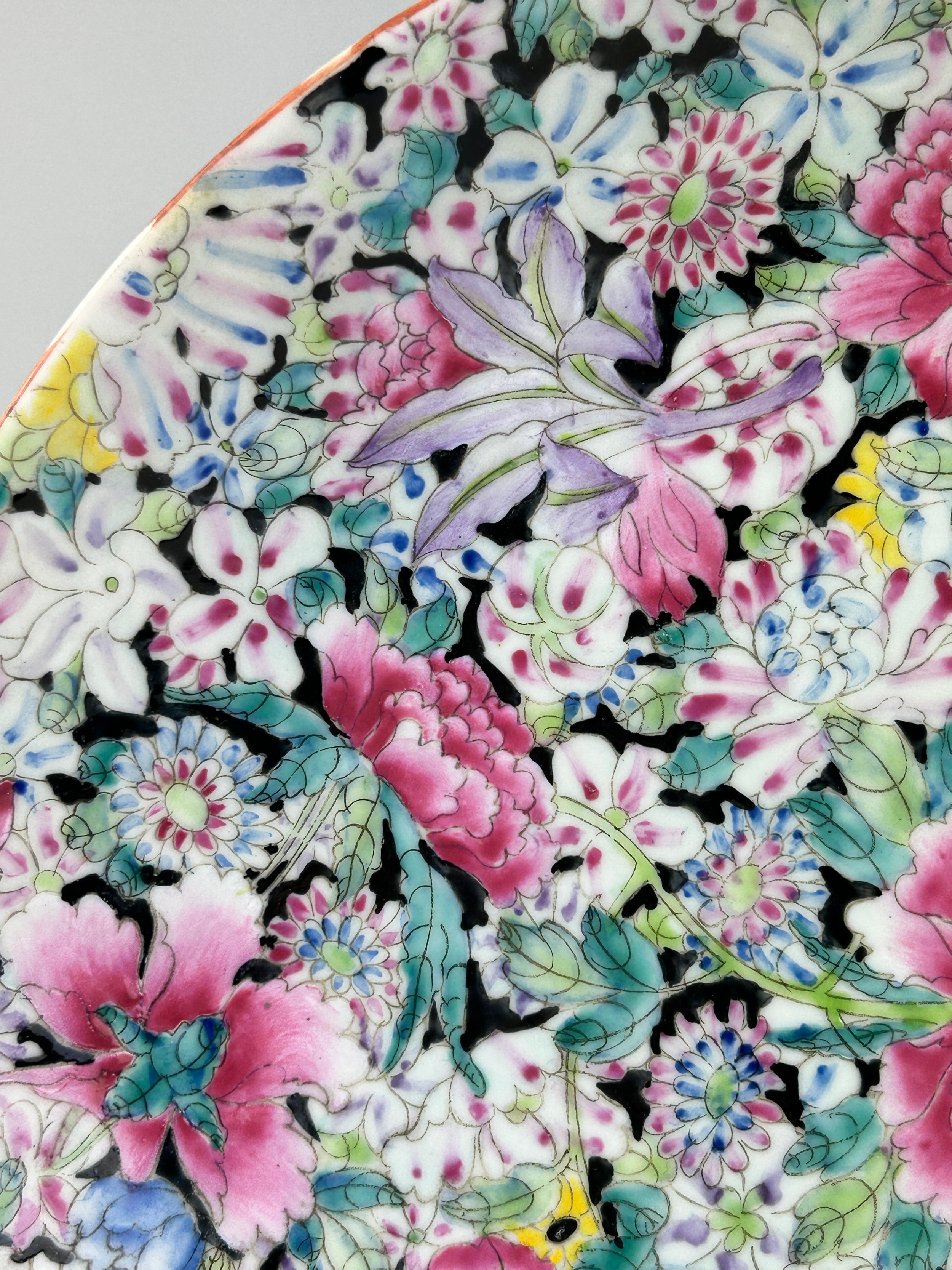 A CHINESE 'MILLEFLEUR' PLATE, with six-character apocryphal marks for the Qianlong emperor but late 19th or early 20th century, 34cm diameter