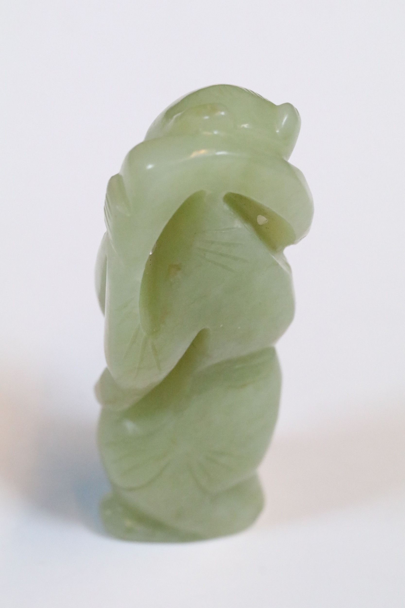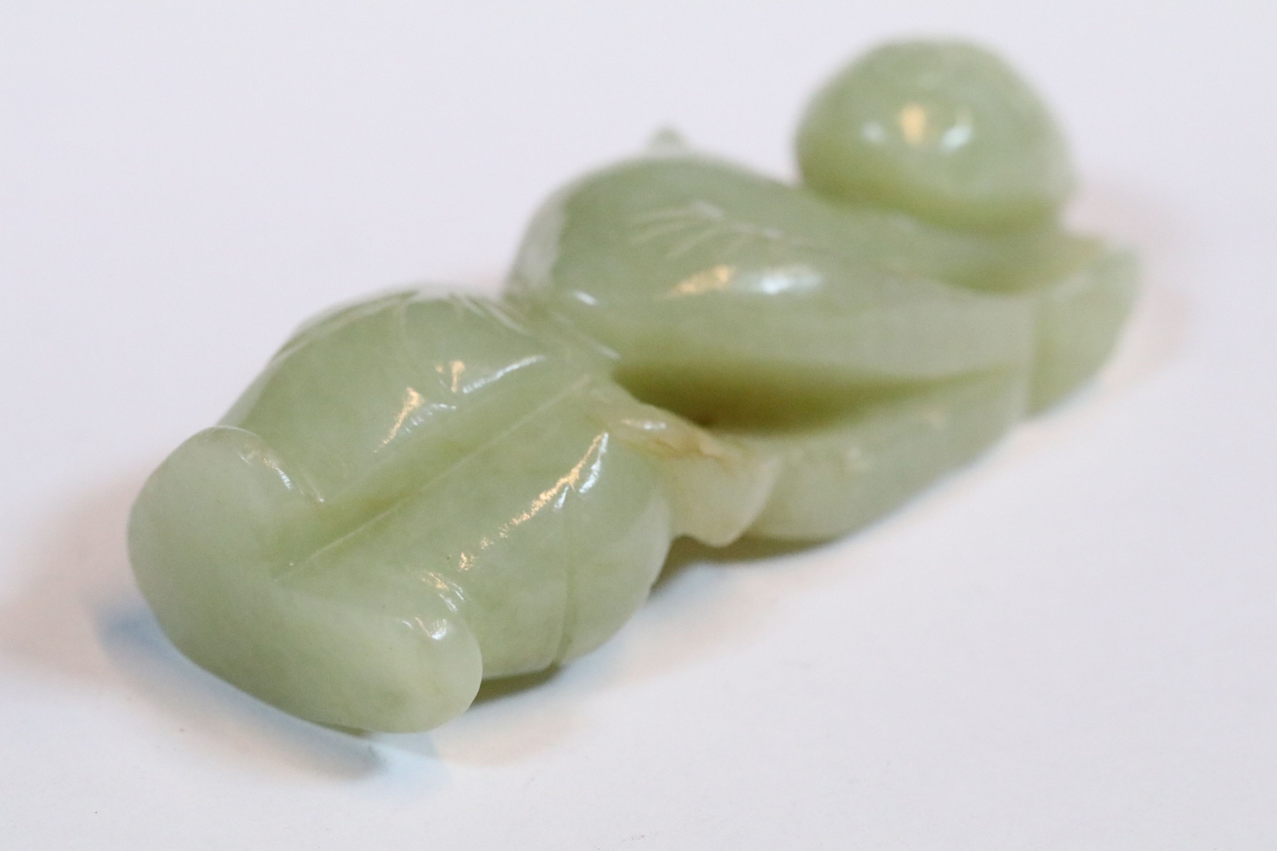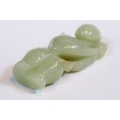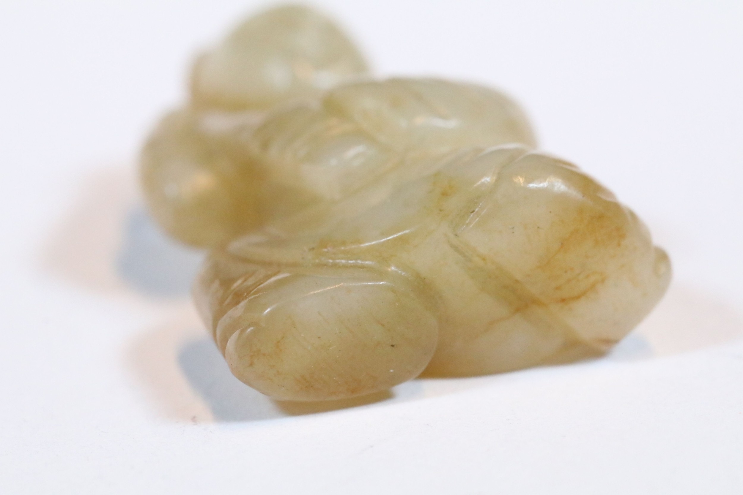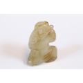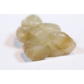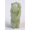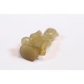 Three carved jade figurines one of larger size, H 7.5cm together with two miniature examples of workers H 3.5cm