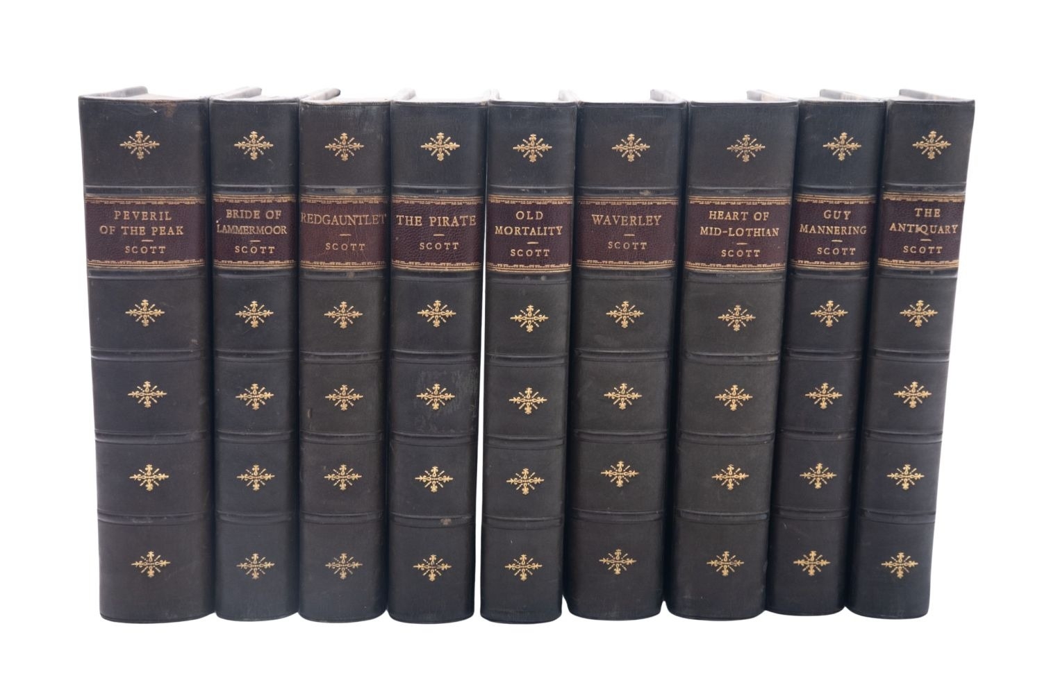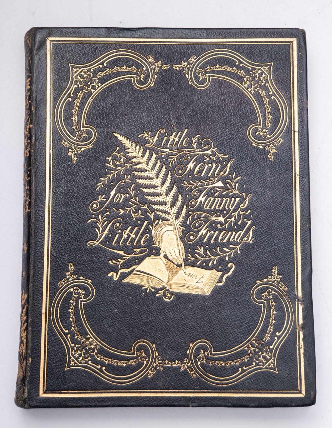 BINDINGS, LITERATURE, MISC. A collection of works, C18th-C20th, incl: FOSTER, Birket (illust.). Little Ferns for Fanny's Little Friends, London: Nathaniel Cooke, 1854, engr. frontis., additional title & plates, bookplate, orig. decorative black morocco gilt, 8vo; GREGORY, John. A Comparative View of the State and Faculties of Man with those of the Animal World, 6th edition, 2 vols., London: Printed for J. Dodsley, 1774, bookplates, contemp calf scuffed, cracking to joints, 12mo; YORICK. A Sentimental Journey through France and Italy, a new edition, adorned with plates, London: for West and Hughes et al., 1801, engr. plates, contemp. calf crazed, board detached, t.e.g., 8vo; SCOTT, Walter. Waverley Novels, 'The Border Edition', 9 vols. (only), London: Macmillan and Co., 1901, attractive green half-calf over marbled boards, marbled edges and endpapers, 8vo; and a quantity of others incl. part sets, some w. engr. plates, incl. bindings, mixed condition, 18mo to 4to. (c.90) *Sold as a miscellaneous collection with all faults and not subject to return.