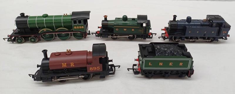 HORNBY OO GAUGE (DCC FITTED) 4-6-0 LNER 8556 LOCOMOTIVE TOGETHER WITH 0-4-0 SDJR 24 (DCC FITTED), 0-4-0 GWR 104 AND 0-4-0 MR 895 LOCOMOTIVE.