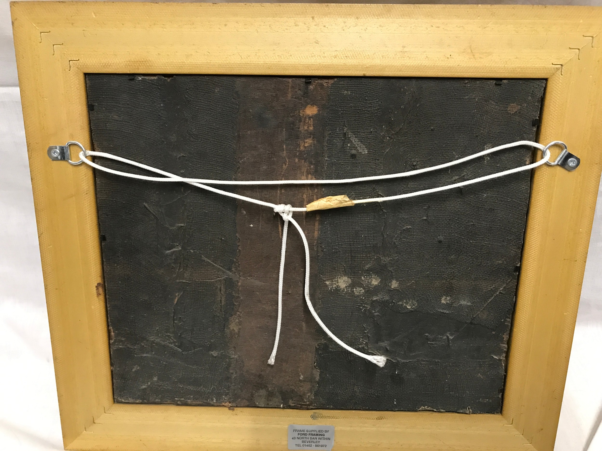Old repair to right hand corner and recent modern frame.