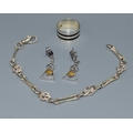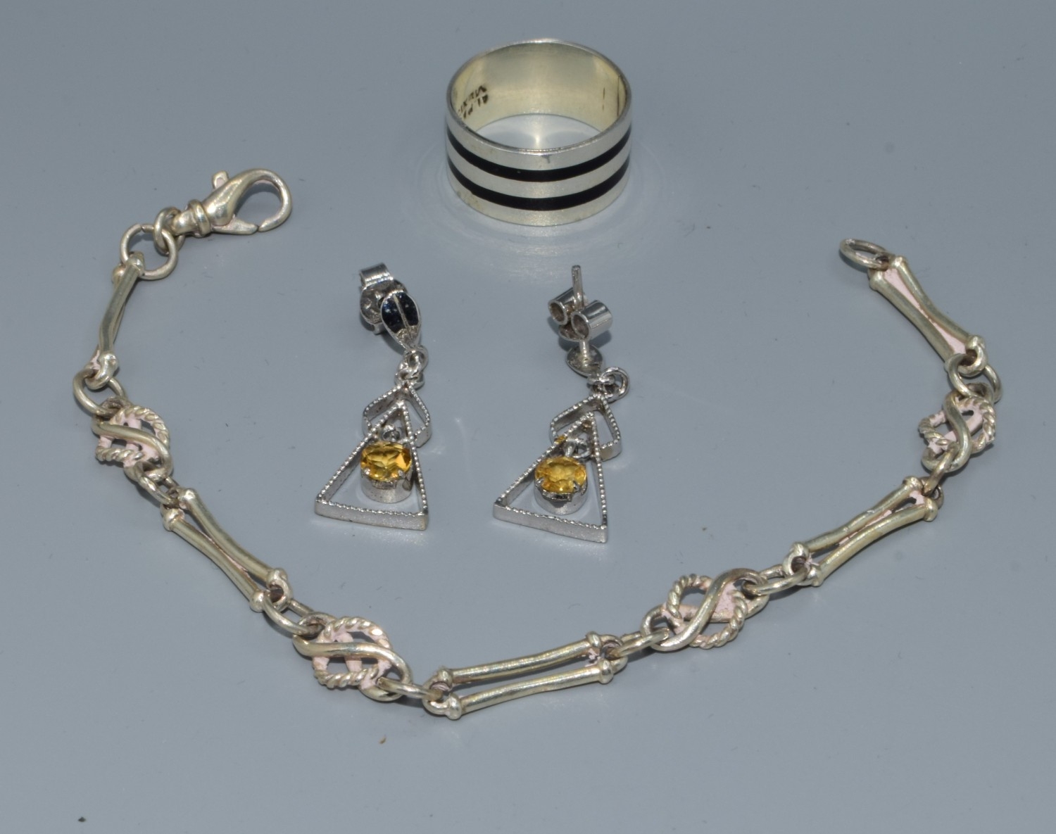 925 silver fancy link bracelet 19cm long together a pair of drop earrings and a ring