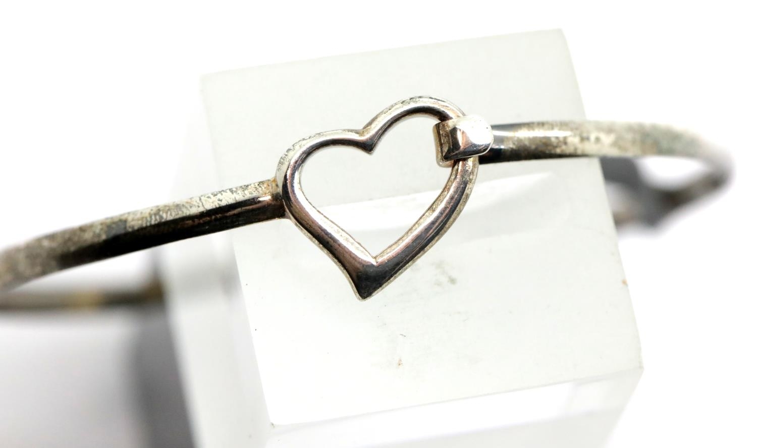 Ladies silver vintage heart bangle. P&P Group 1 (£14+VAT for the first lot and £1+VAT for subsequent lots)