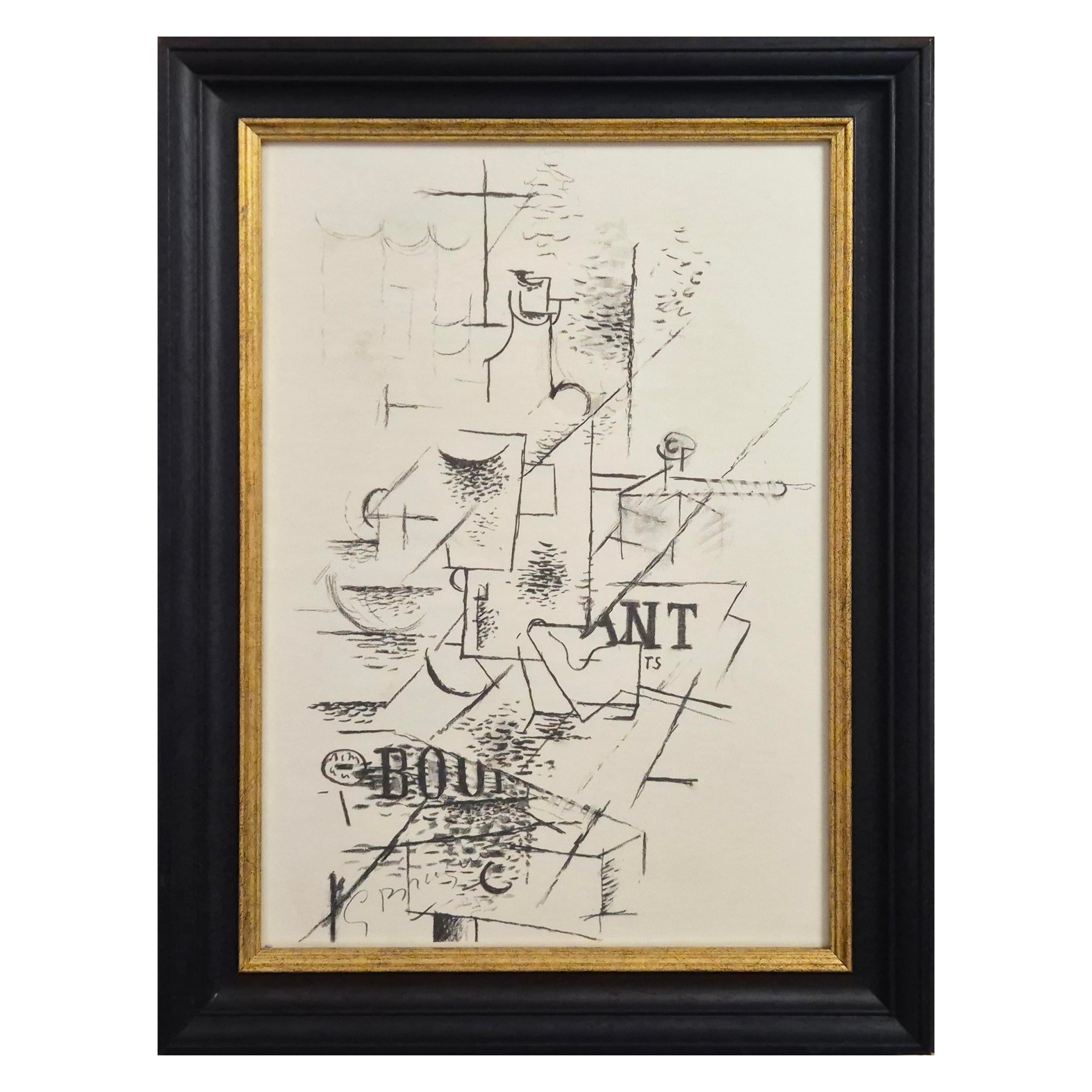 GEORGE BRAQUE. LE BOUTEILLE. Lithograph, 36.5cm x 25cms, signed in the plate, framed ( Published 1963 Derriere Mirroir by Atelier Mourlot Paris).
