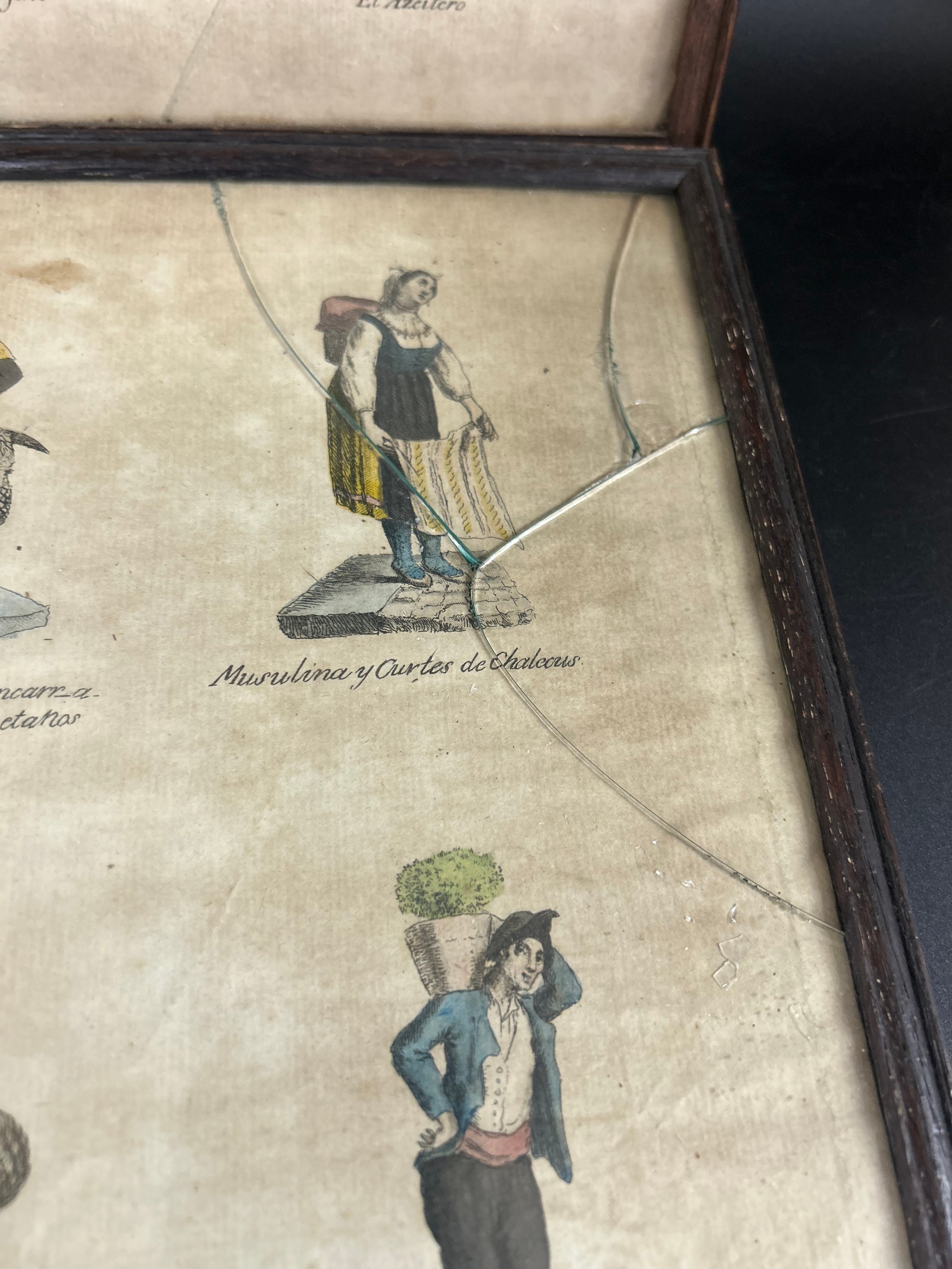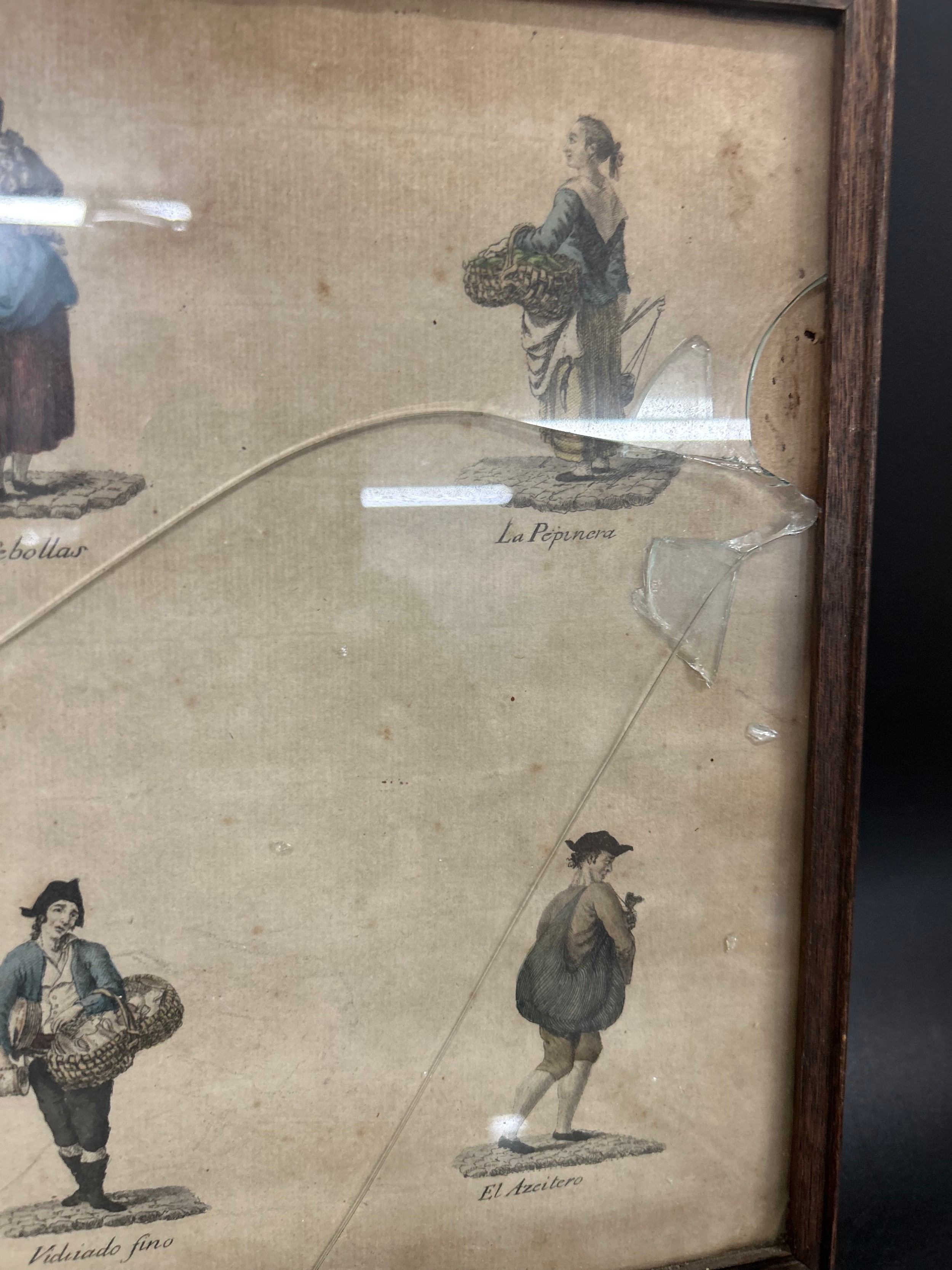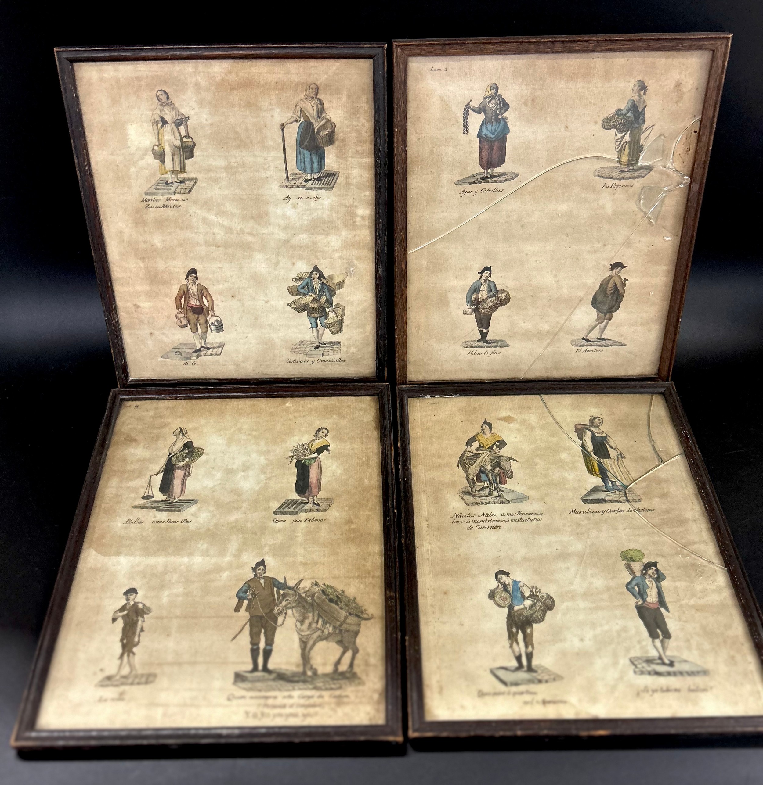 Four 19th Century framed sketches depicting street traders / sellers, two frames a/f *Not available for packing and posting*